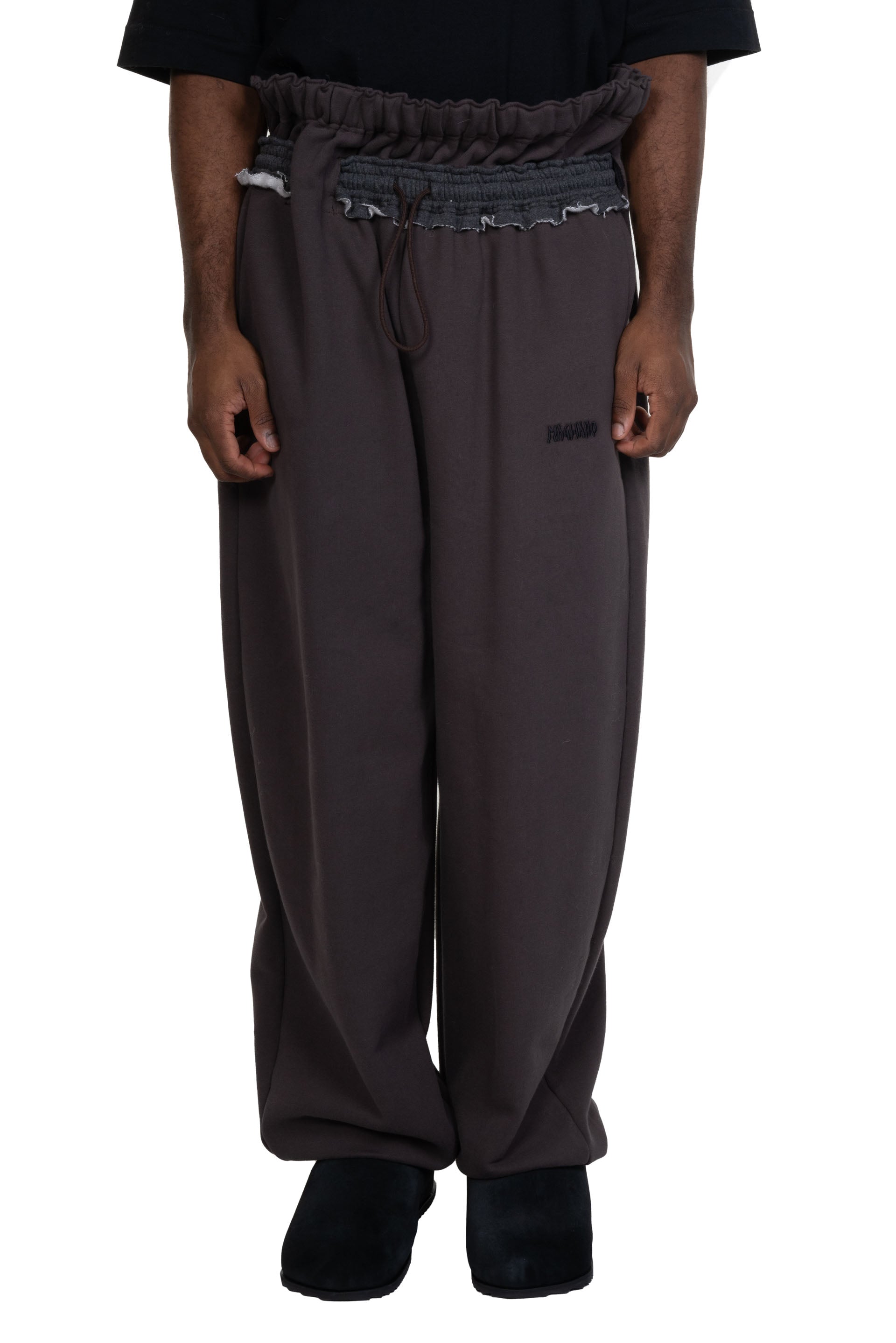 Elastic waist. Bungee tightening cord at front. Two tones details at waist. Magliano embroidery branding at leg. Two side pockets. Elastic cuffs at bottom.