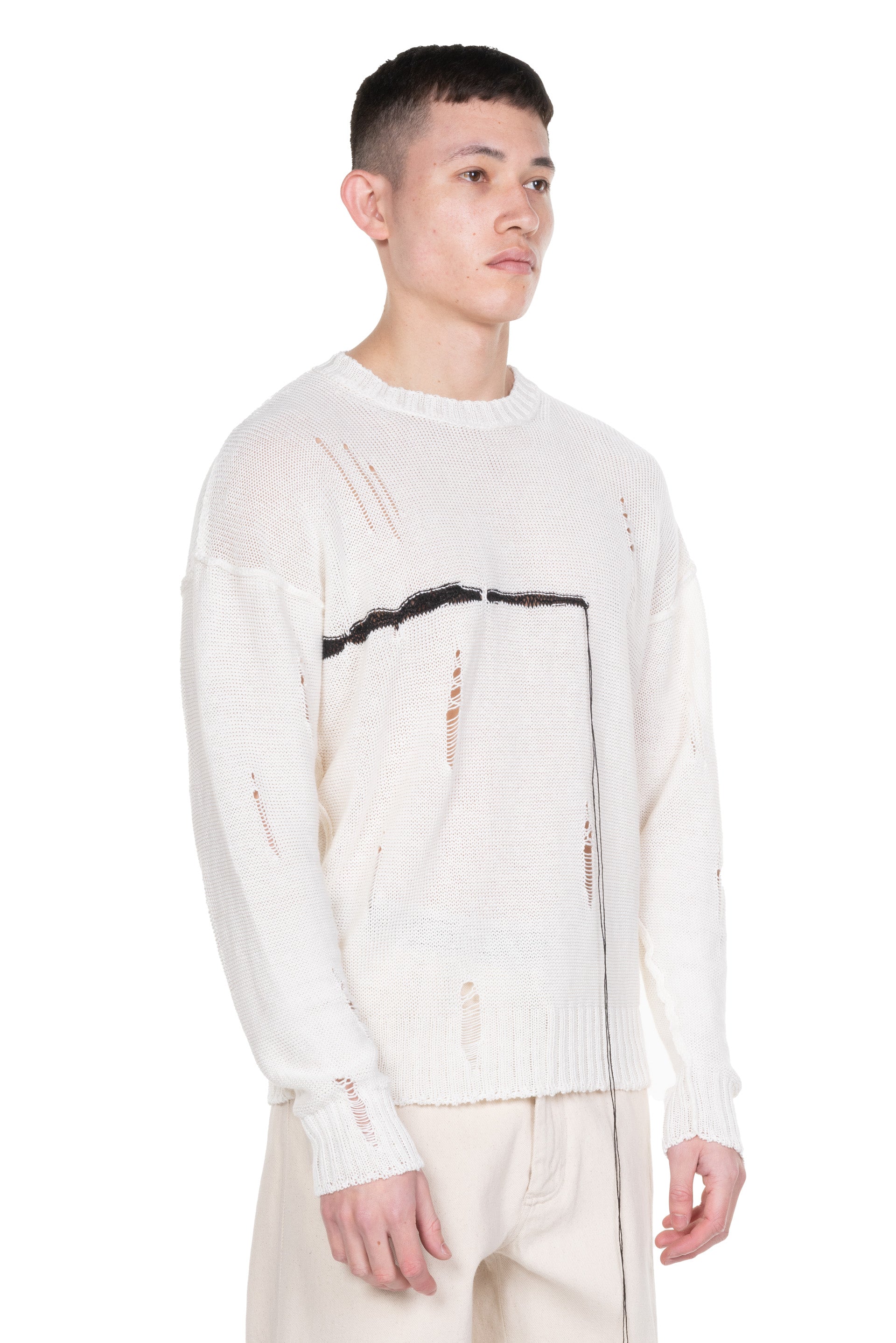 Isabel Benenato is committed to sustainability and makes every effort to minimise its environmental footprint. All of the collection are manufactured in Italy with the intention to save and support her local community. Her design is based on an imperfect perfection that encompasses the human being itself as seen with the Raw Cut Linen Sweater White.