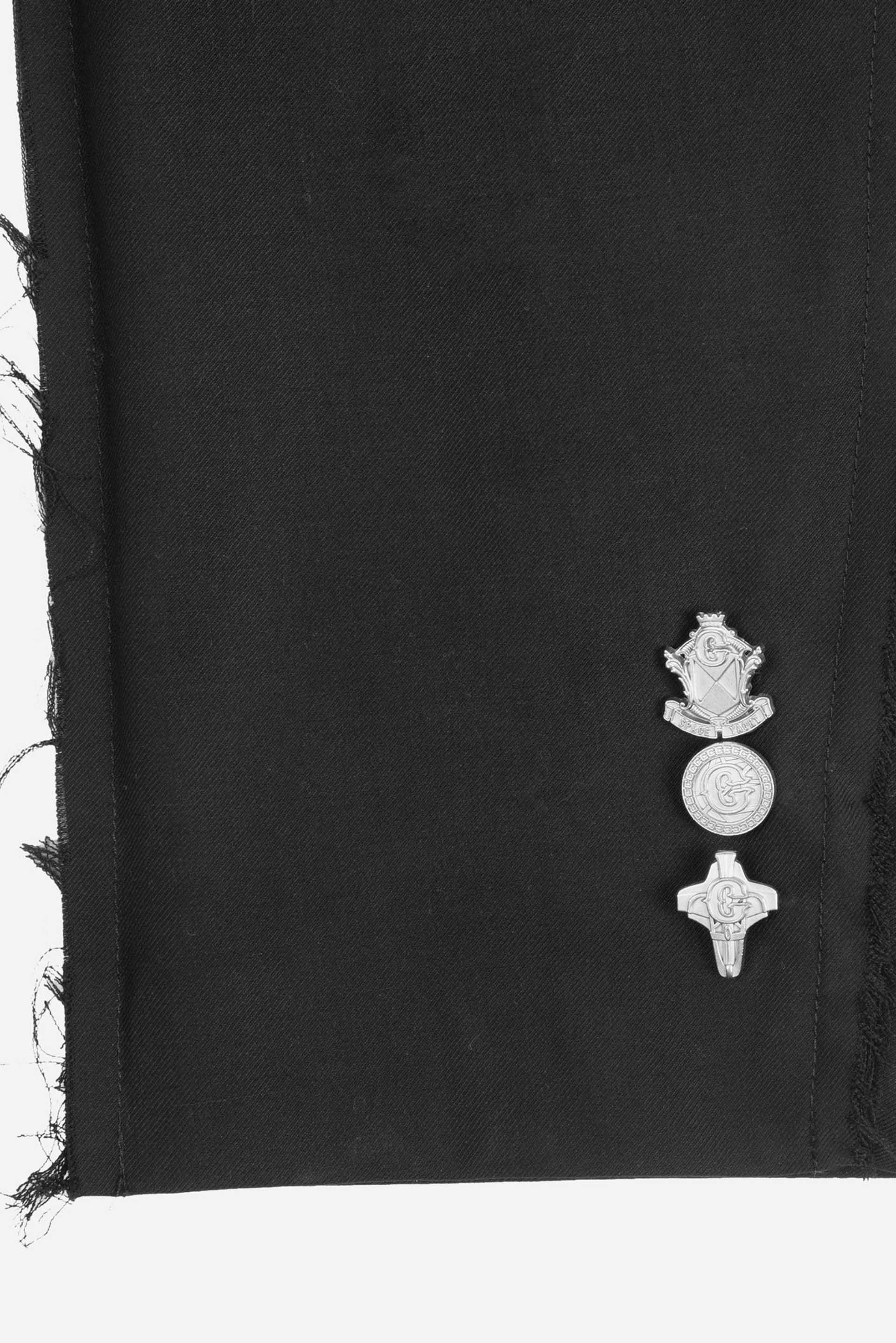 Rounded Neck. Hidden Button Closure At Front. Detailing Raw Edge Seam Line Finishing. Welt Pocket At Chest. Welt Pockets At Waist. Comes With White Gold Coated Brass Safety Pin Set. Collection Button Set At Surgeon’s Cuffs. Central Vent At Back Hem. Comes With Garment Bag Set.