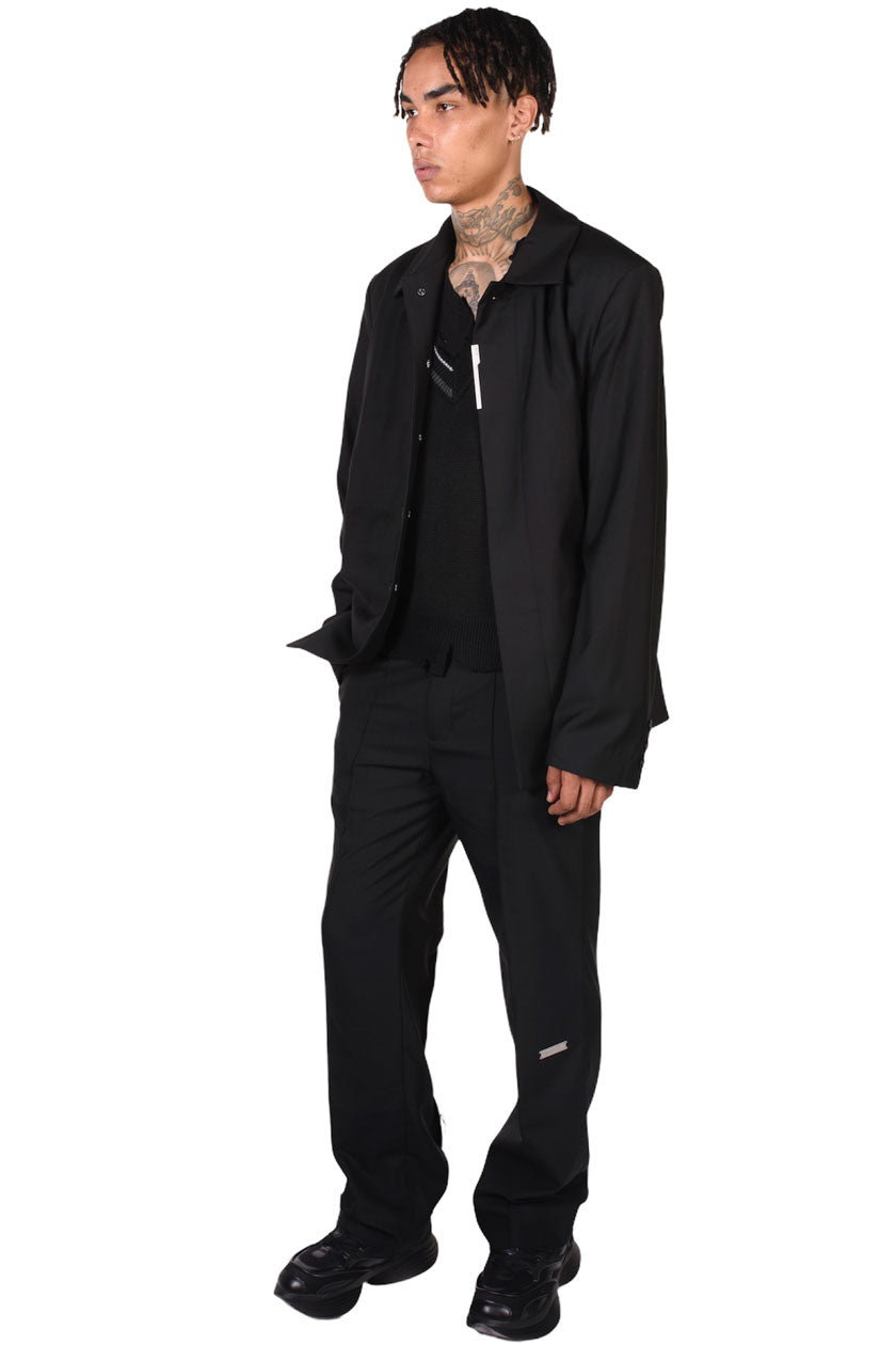 C2H4 concept ranges from hypothetical space scientists producing sport and streetwear-inspired designs creating an intergalactic underground culture. Using her studio as a laboratory, Chen’s meticulously elevates wardrobe cornerstones as seen with the Raw Edge Tailored Trousers