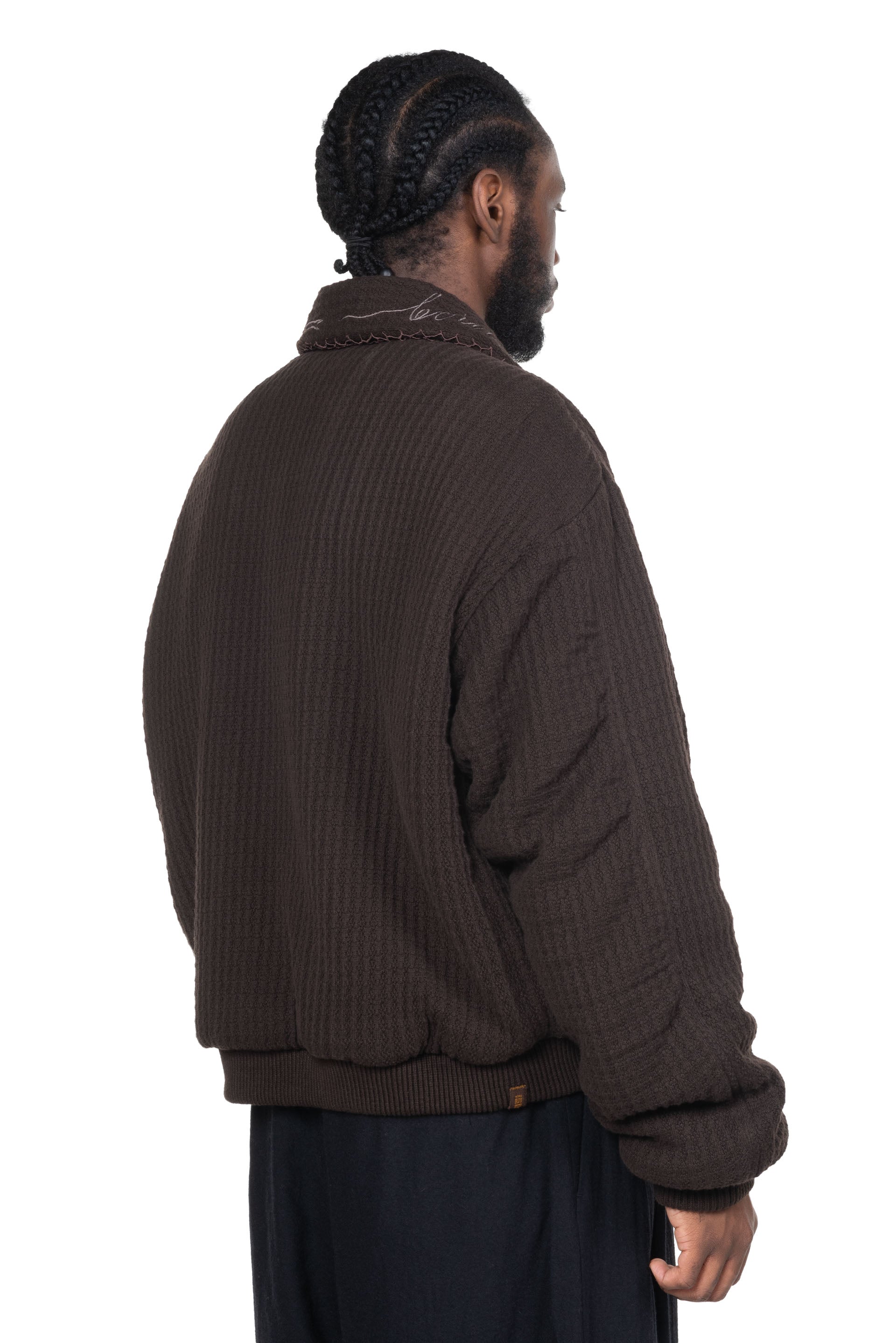 Isa Boulder redefines individuality with artisanal knitwear and ready-to-wear. Based in Bali, the brand working with local artisans and sustainable materials, fuses traditional craftsmanship with experimental design, creating bold pieces that subvert convention and celebrate individuality as seen with the Reversible Bomber Jacket.