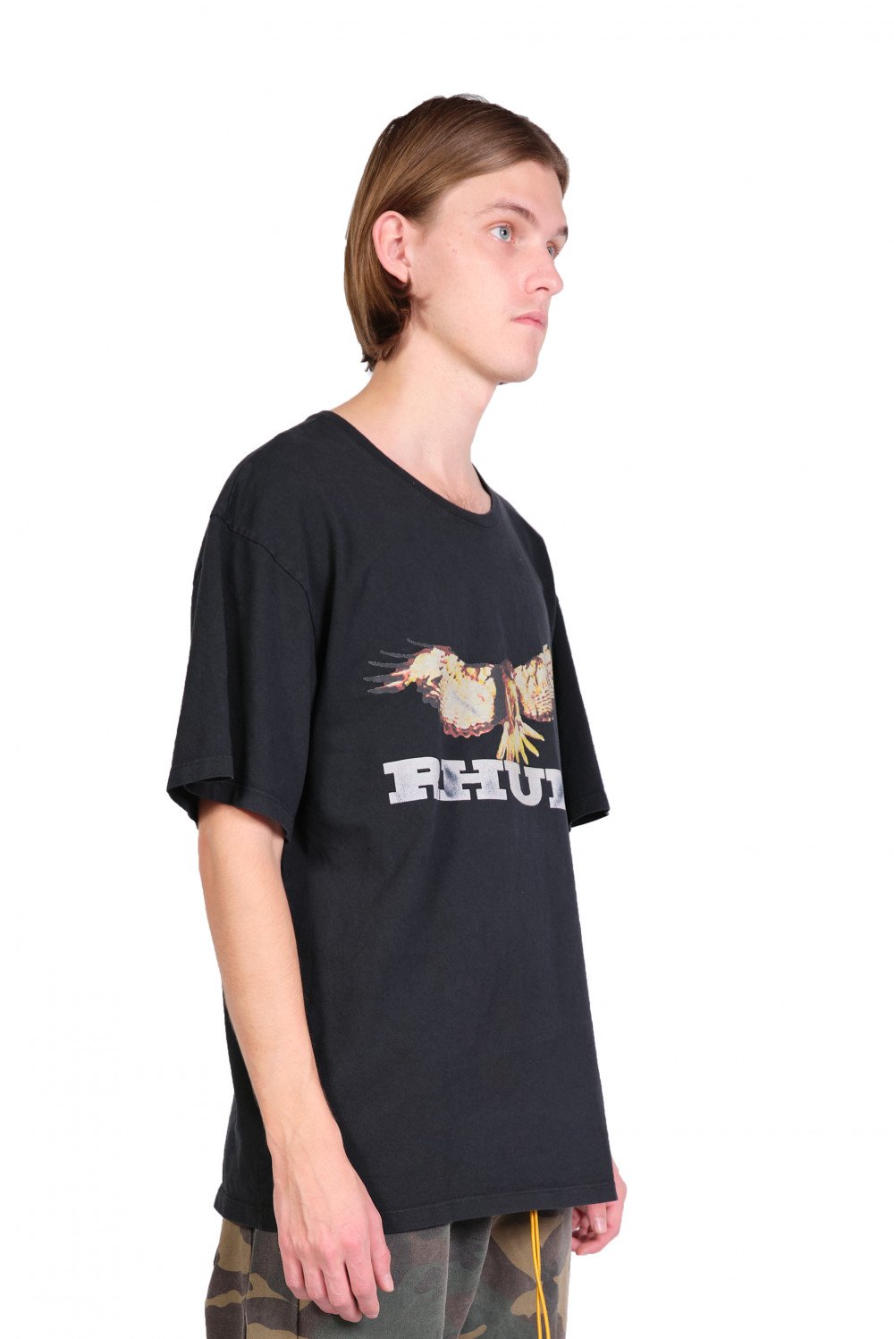 Rhude design merge disparate cultural influences, which combine streetwear style with British punk and high fashion sensibilities. With youthful energy, U.S. based production, and culture-clashed appeal, Rhude acts as a keen reflection of new inroads in men's fashion as seen in the Rhude Black Eagle T-shirt.