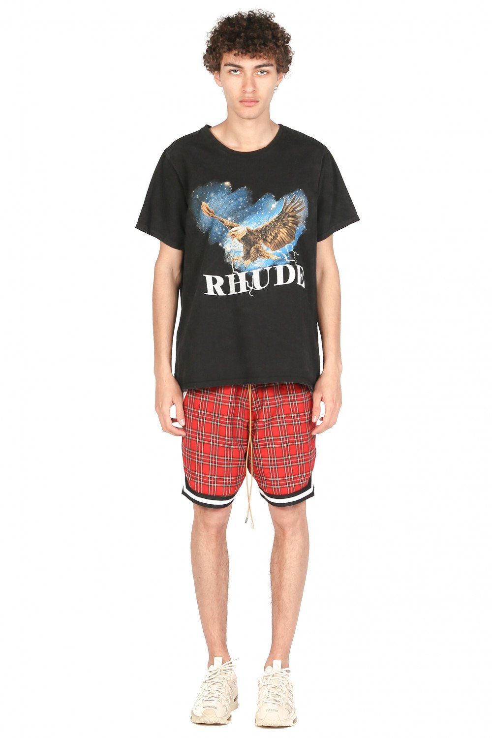 Rhude design merge disparate cultural influences, which combine streetwear style with British punk and high fashion sensibilities. With youthful energy, U.S. based production, and culture-clashed appeal, Rhude acts as a keen reflection of new inroads in men's fashion as seen in the Rhude Eagle Sky T-shirt.