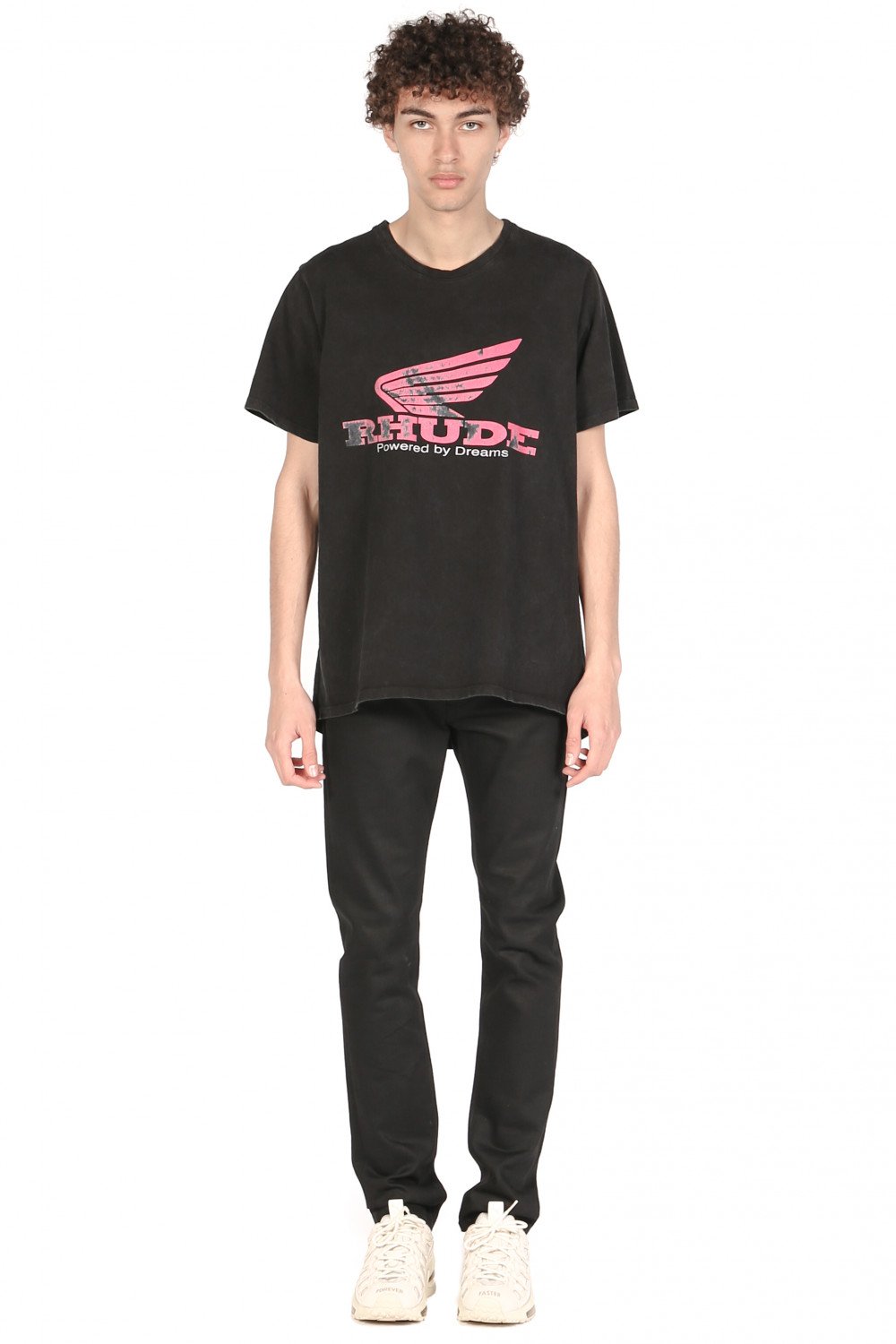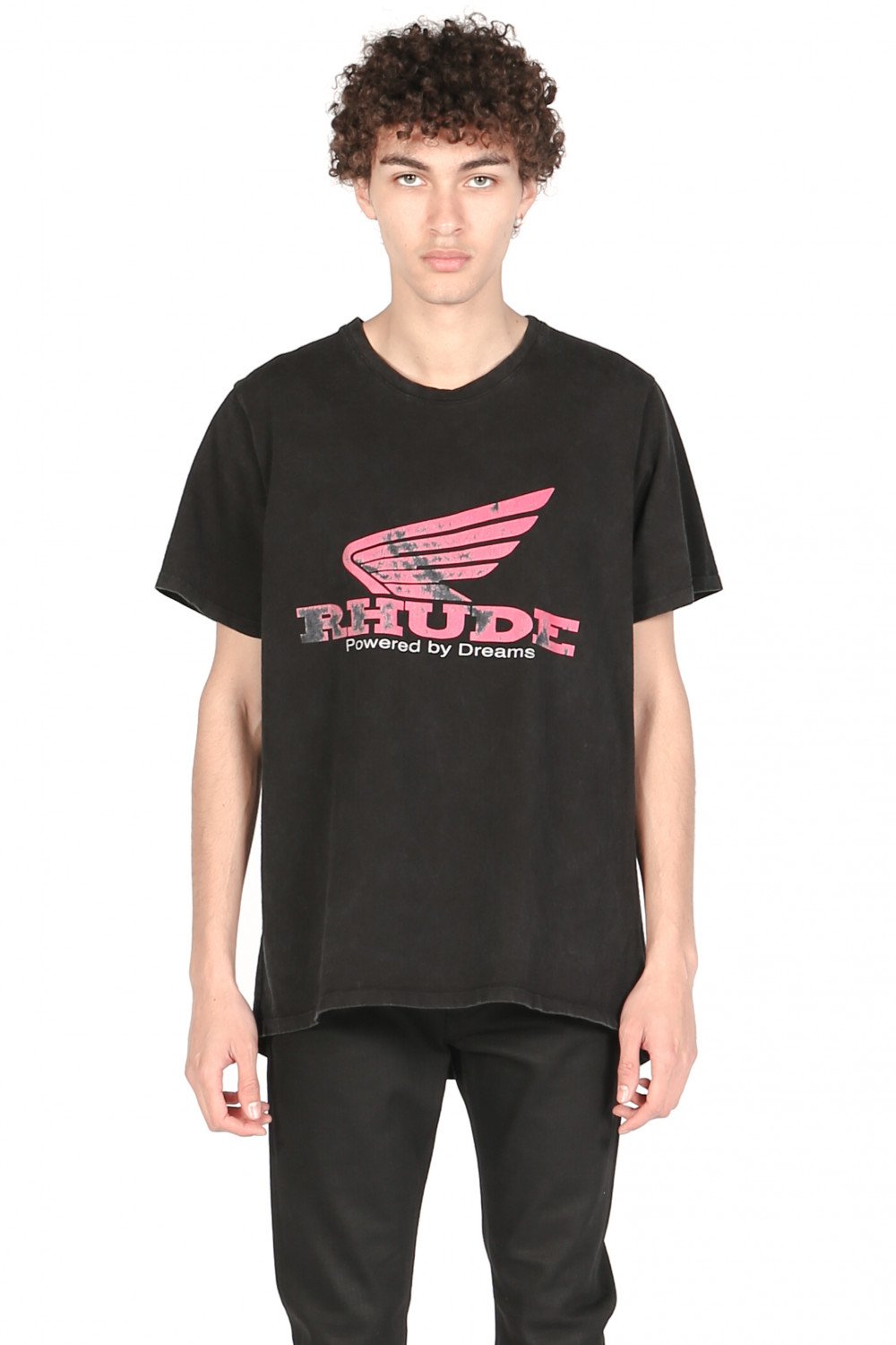Rhude design merge disparate cultural influences, which combine streetwear style with British punk and high fashion sensibilities. With youthful energy, U.S. based production, and culture-clashed appeal, Rhude acts as a keen reflection of new inroads in men's fashion as seen in the Rhude Rhonda T-shirt.