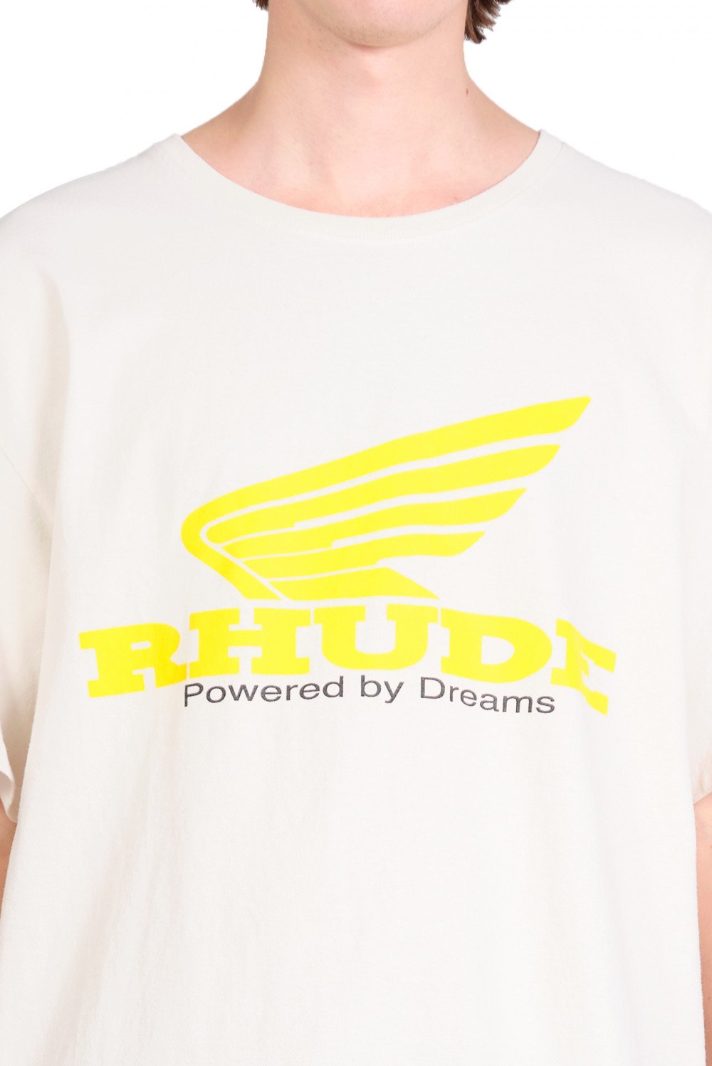 Rhude design merge disparate cultural influences, which combine streetwear style with British punk and high fashion sensibilities. With youthful energy, U.S. based production, and culture-clashed appeal, Rhude acts as a keen reflection of new inroads in men's fashion as seen in the Rhude White Rhonda T-Shirt.