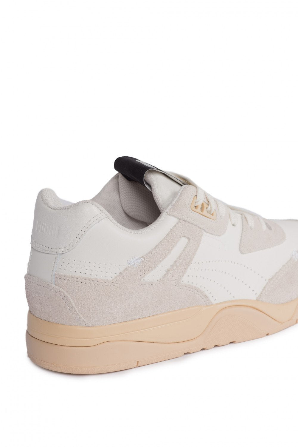 Veteran sportswear brand meets LA streetstyle up-and-comer in the PUMA x Rhude collaboration. Taking an archival basketball sneaker – the Palace Guard – and giving it a deconstructed aesthetic accompanied by luxe materials, the duo offer a slick, latte-tone take on an old classic. Contrasting textures combine to form the uppers – luxe suede, matte leather and high tech nylon mesh – while the sole is cut from coffee coloured rubber which repeats at the eyelets. A perforated Formstrip punctuates the sidewall and the sneaker is finished with high impact dual branded tongue pulls and intermittent hits of haphazardly placed white stitching for a subtle handmade look.