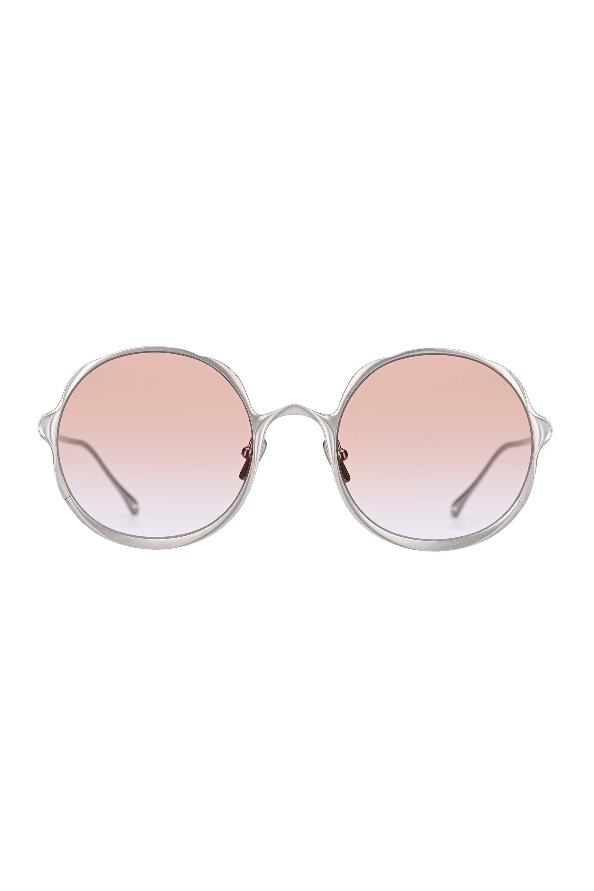 Handcrafted round titanium-frame sunglasses. Like all Rigards models, the glasses have no gender preference and are suitable for both men and women. UV-protective lenses. Nose pads. These glasses come with a protective case. Adjustable metal nose pads. Fluid Design with textural details. Includes pouch.