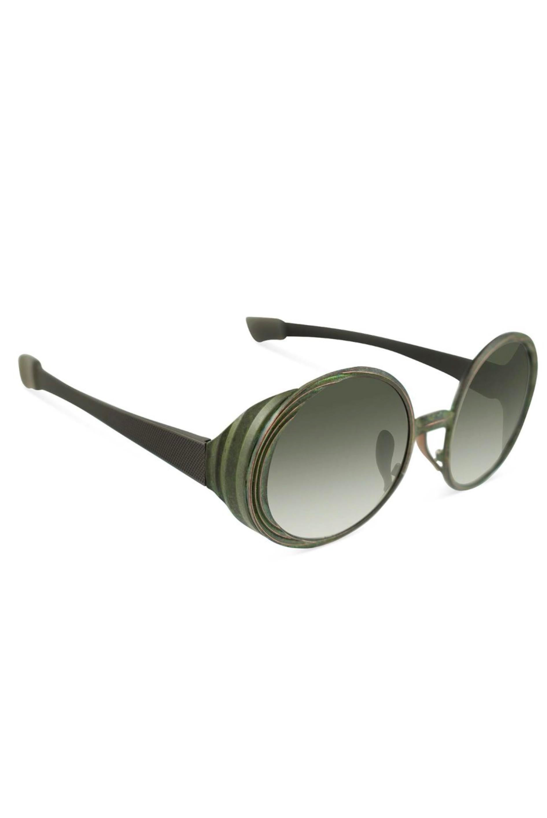 Rigards glasses are influenced by the incredible textures and patterns formed by nature. Every pair of frames is handcrafted with tremendous attention using traditional methods of production and hand-finished with signature surface treatments, combining virtues of the past with modern sensibility pushing the boundaries of eyewear design as seen with the Rigards RG1941ZC "Z-GOGGLE" Jade.