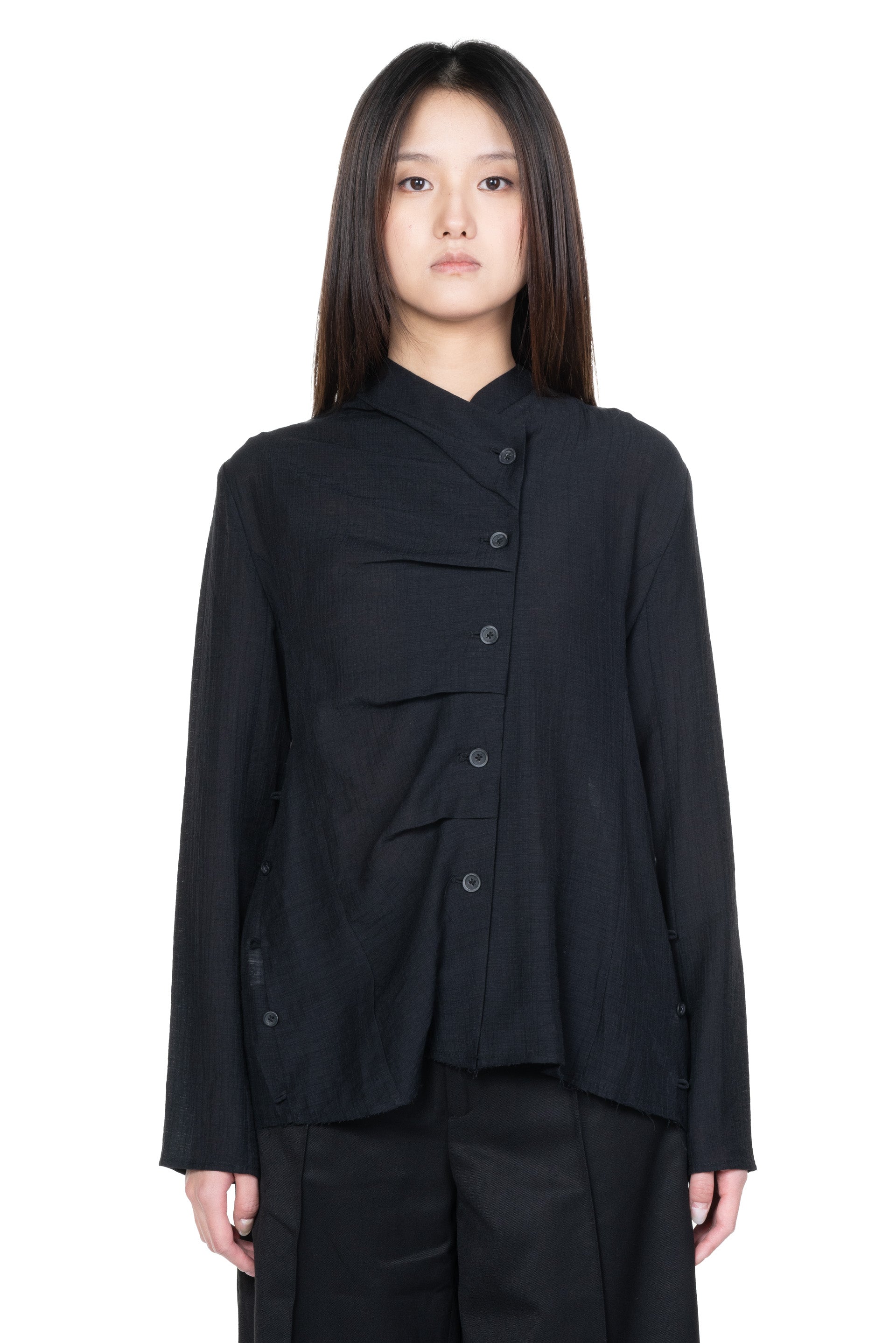 Professor. E understands the time of aesthetics from the use of cotton, hemp and wool. Fabric stitching, patching, designs without edge trimming, deconstruction, and reproduction are all Professor. E's signature elements creating classic immortal designs that can be viewed with the Ruffled Shirt Black.