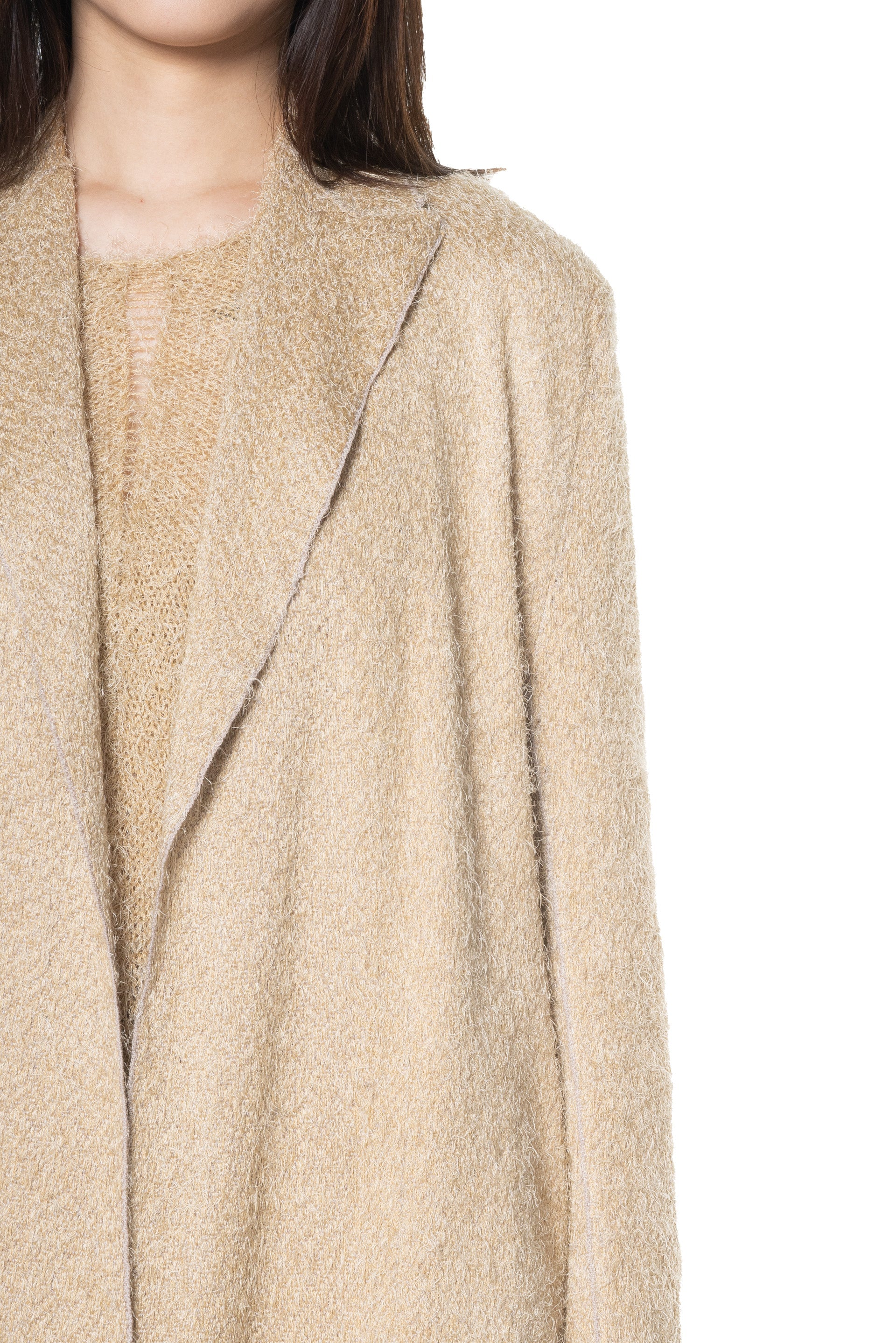 Boboutic consider knits an ideal medium, since its versatility allows conceiving unique surfaces and unexpected shapes. The approach to knitwear is unpredictable, aiming at creating a product where materials and structures compensate each other as seen with the Sand Coat.
