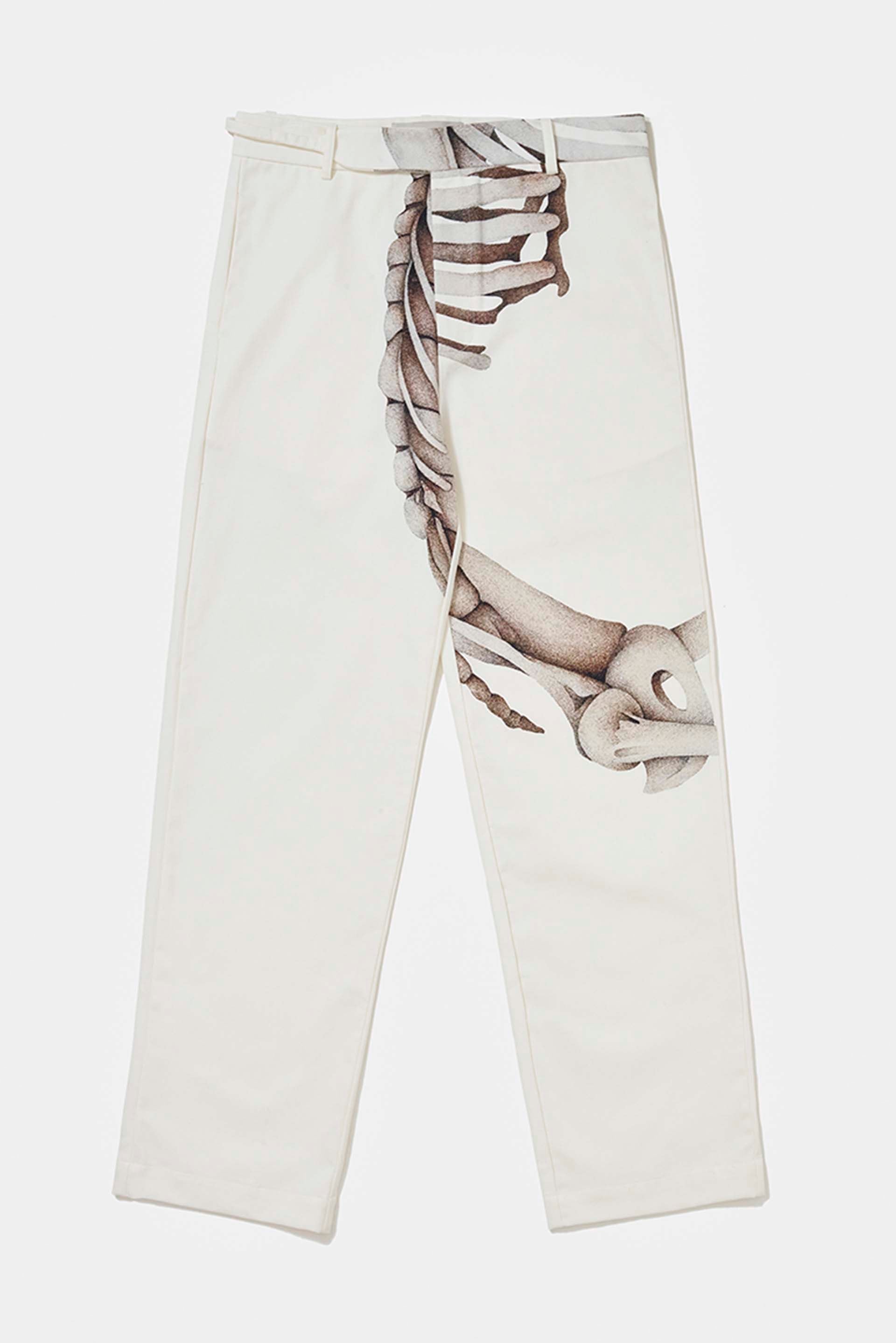 P. Andrade Schnabelafe Cotton Twill Trousers. Two side pocket. Zip closure at front. Belt detail at waist. Walmor Correa print at front.
