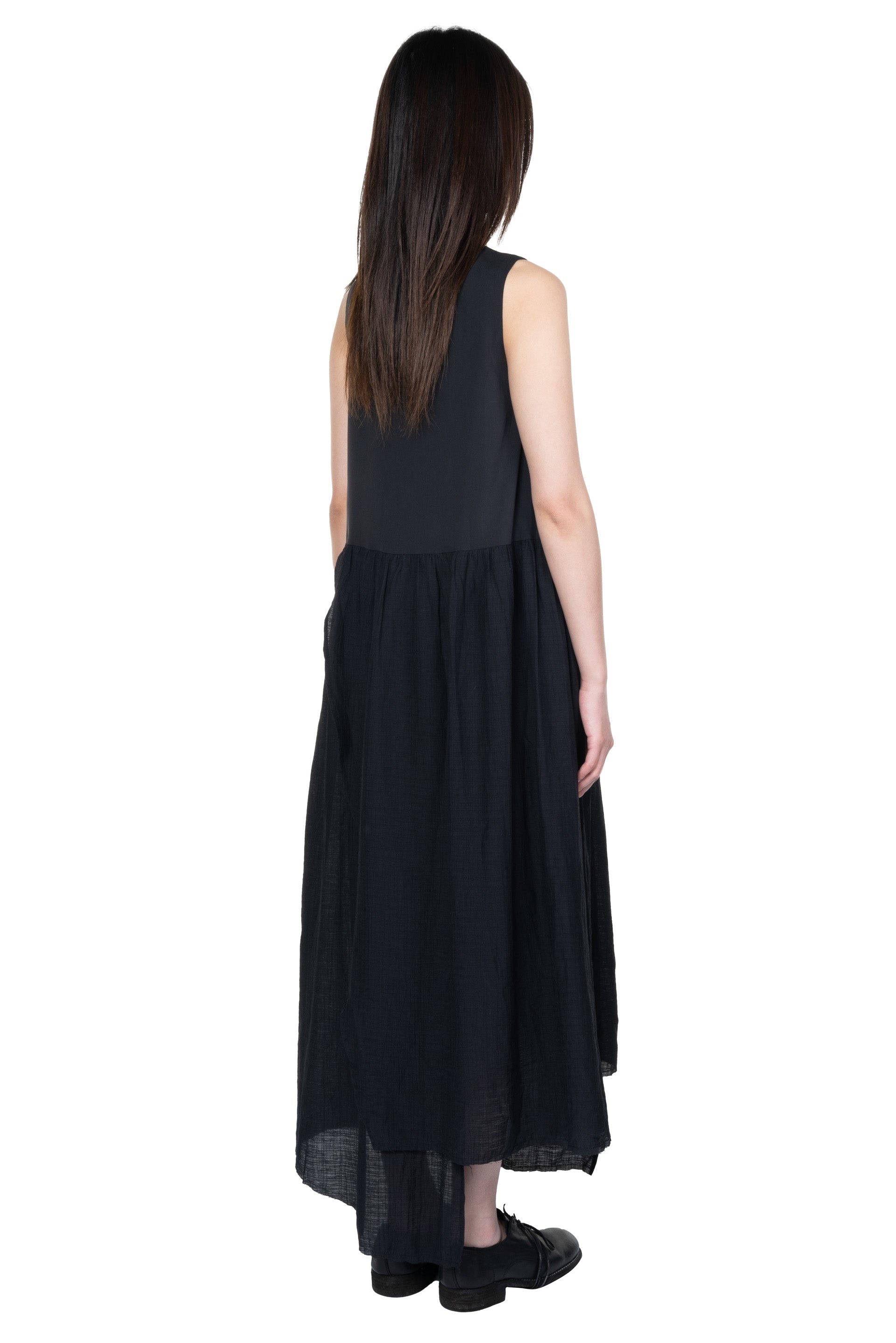 Professor. E Sculptural Maxi Dress Black. Sleeveless. Multi layered. Deconstructed details throughout.