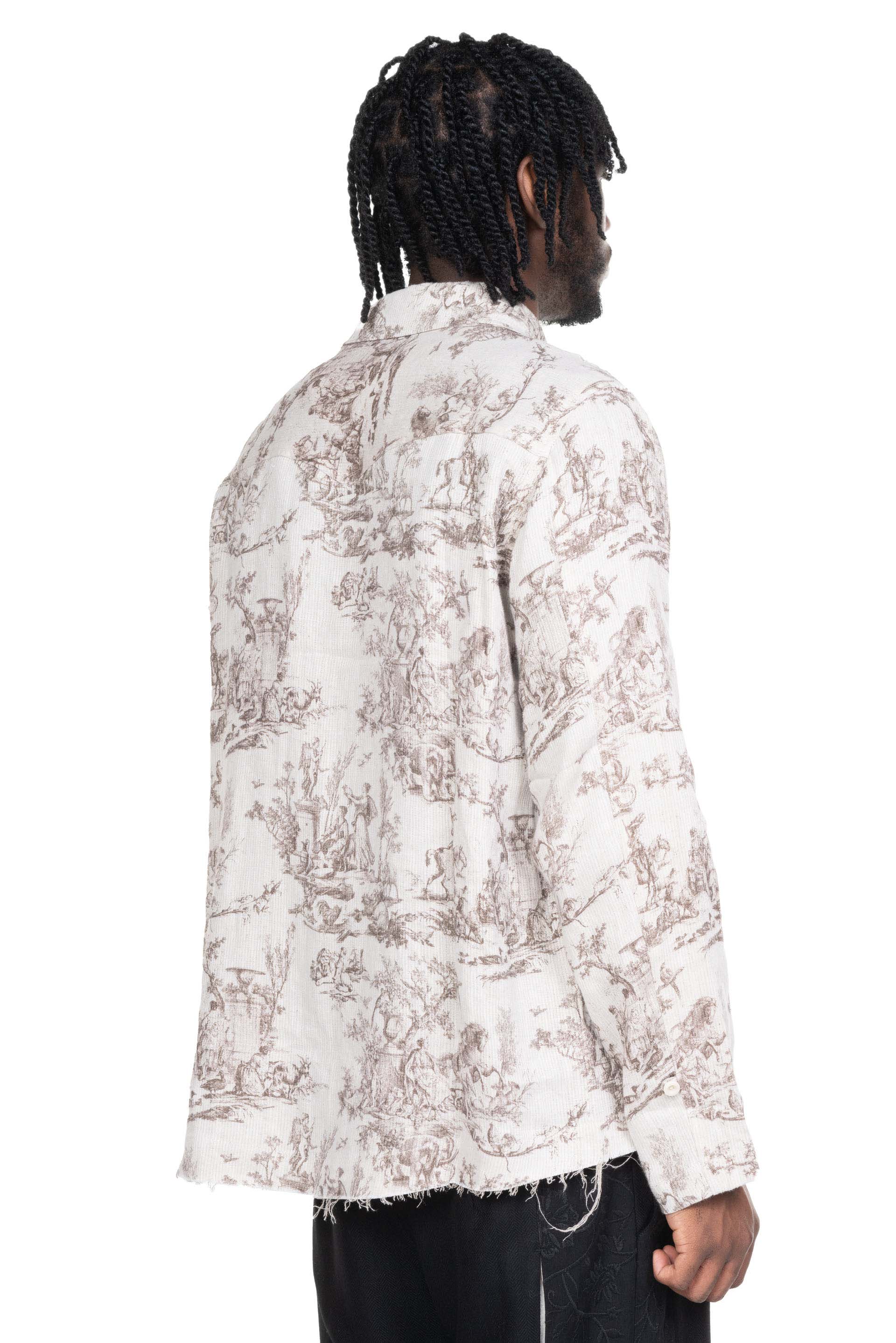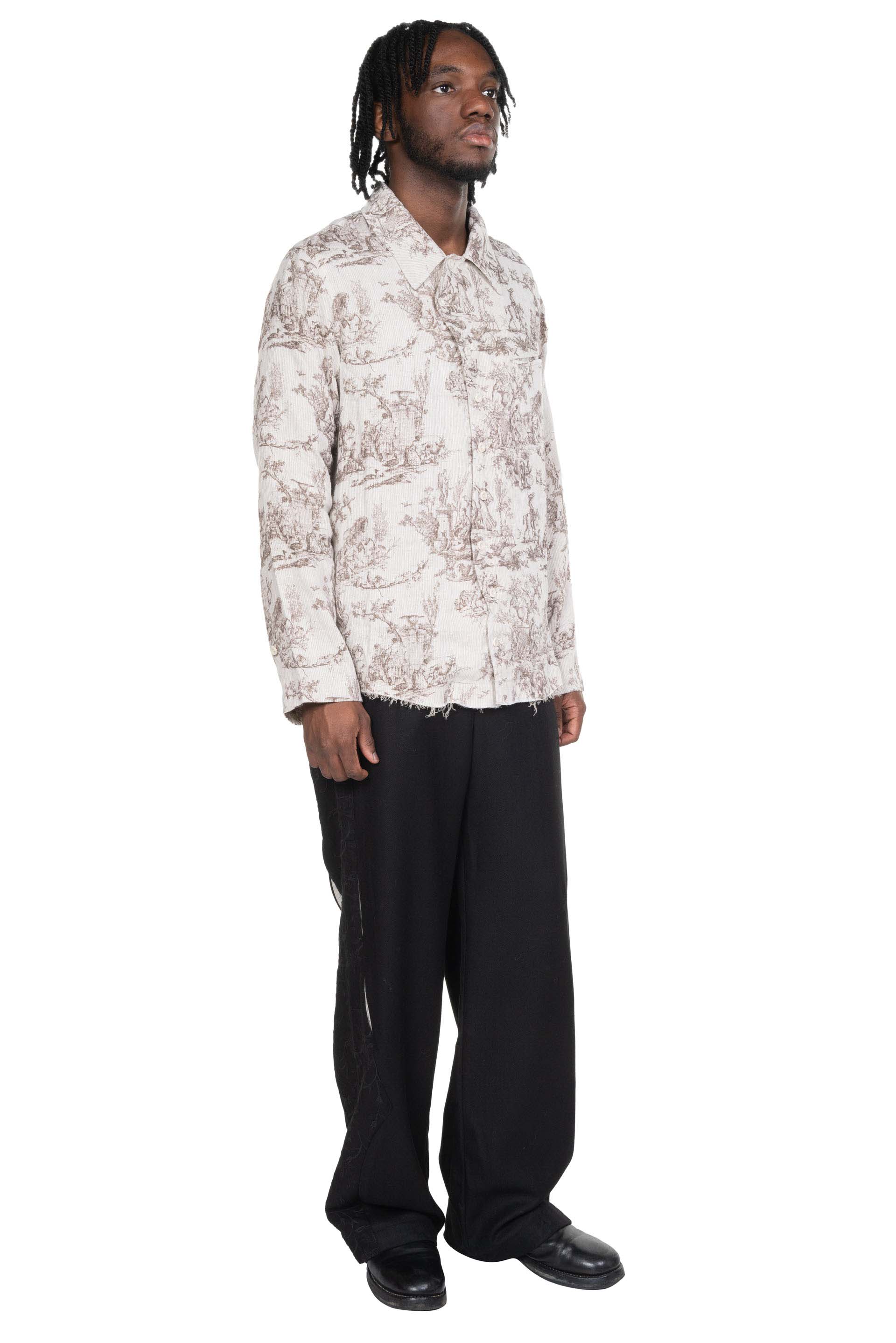 Professor. E understands the time of aesthetics from the use of cotton, hemp and wool. Fabric stitching, patching, designs without edge trimming, deconstruction, and reproduction are all Professor. E's signature elements creating classic immortal designs that can be viewed with the Seasonal Print LS Beige.
