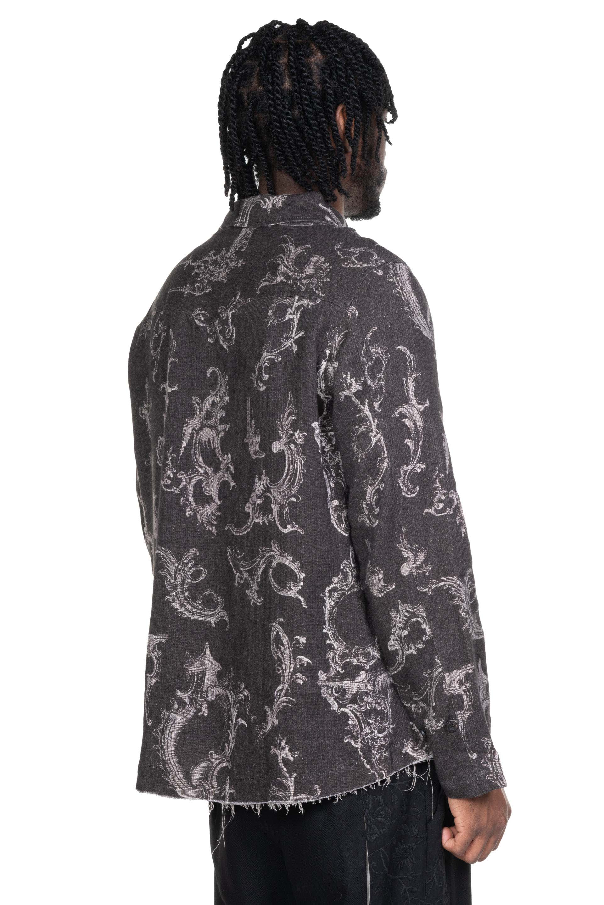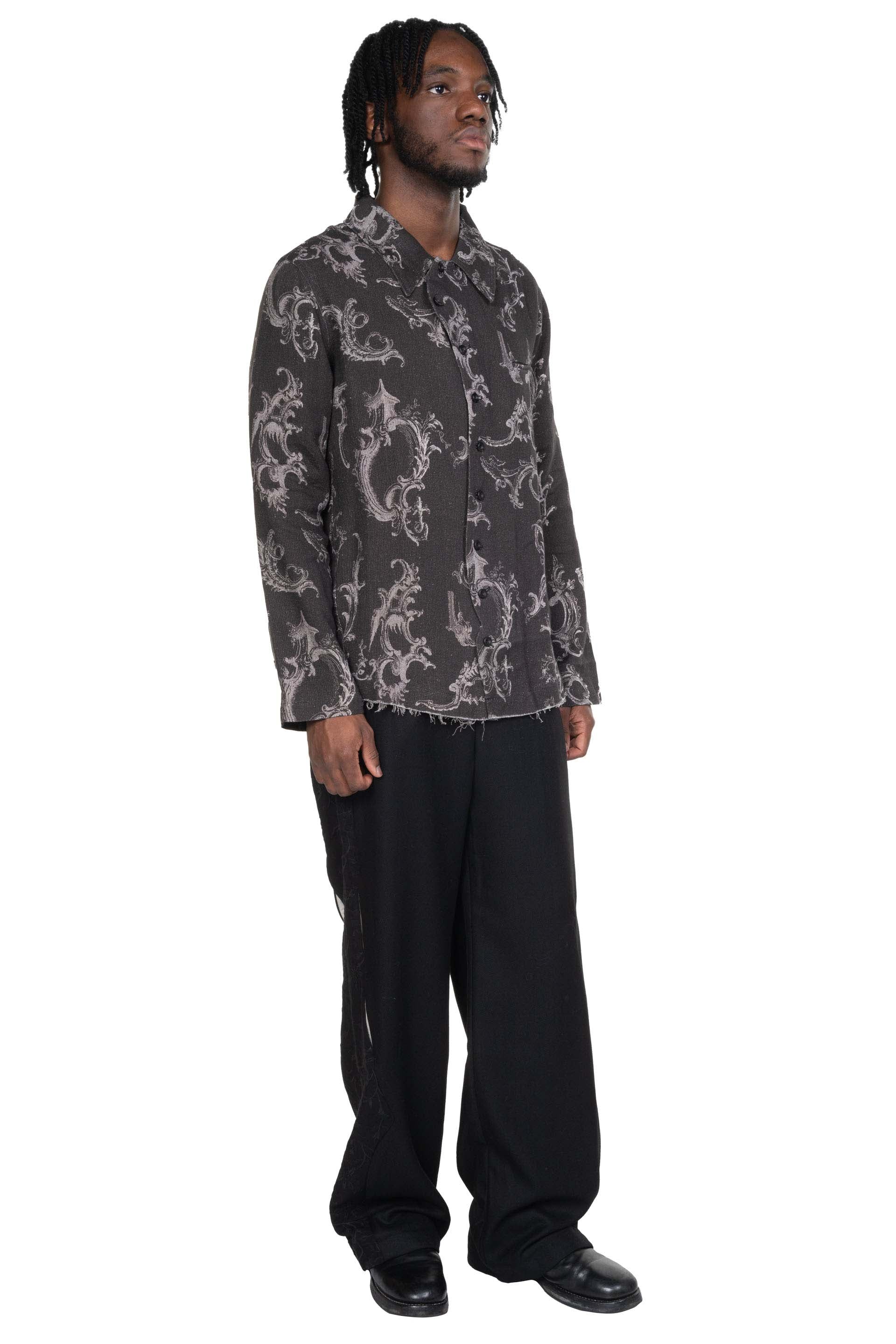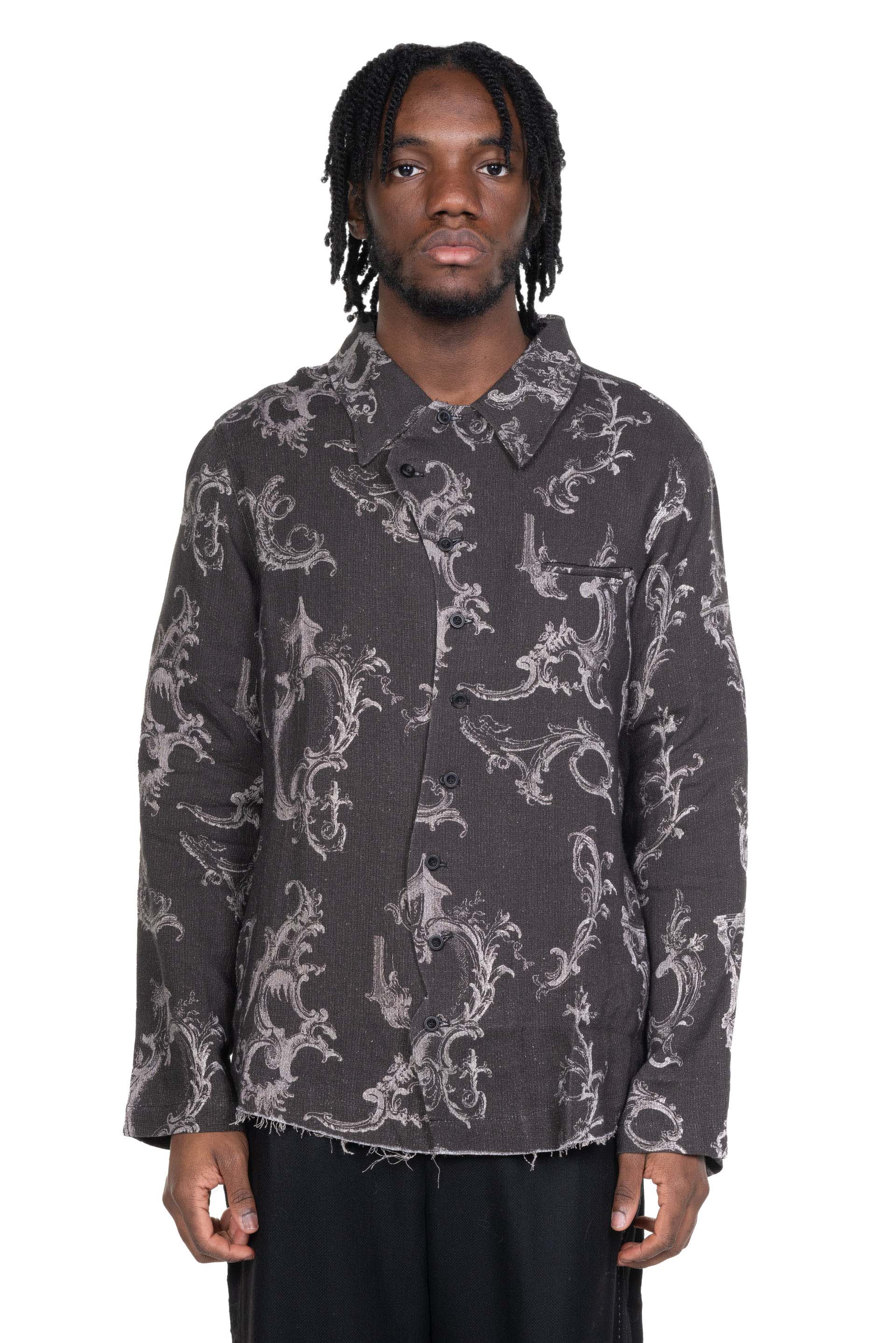 Professor. E understands the time of aesthetics from the use of cotton, hemp and wool. Fabric stitching, patching, designs without edge trimming, deconstruction, and reproduction are all Professor. E's signature elements creating classic immortal designs that can be viewed with the Seasonal Print LS Black.