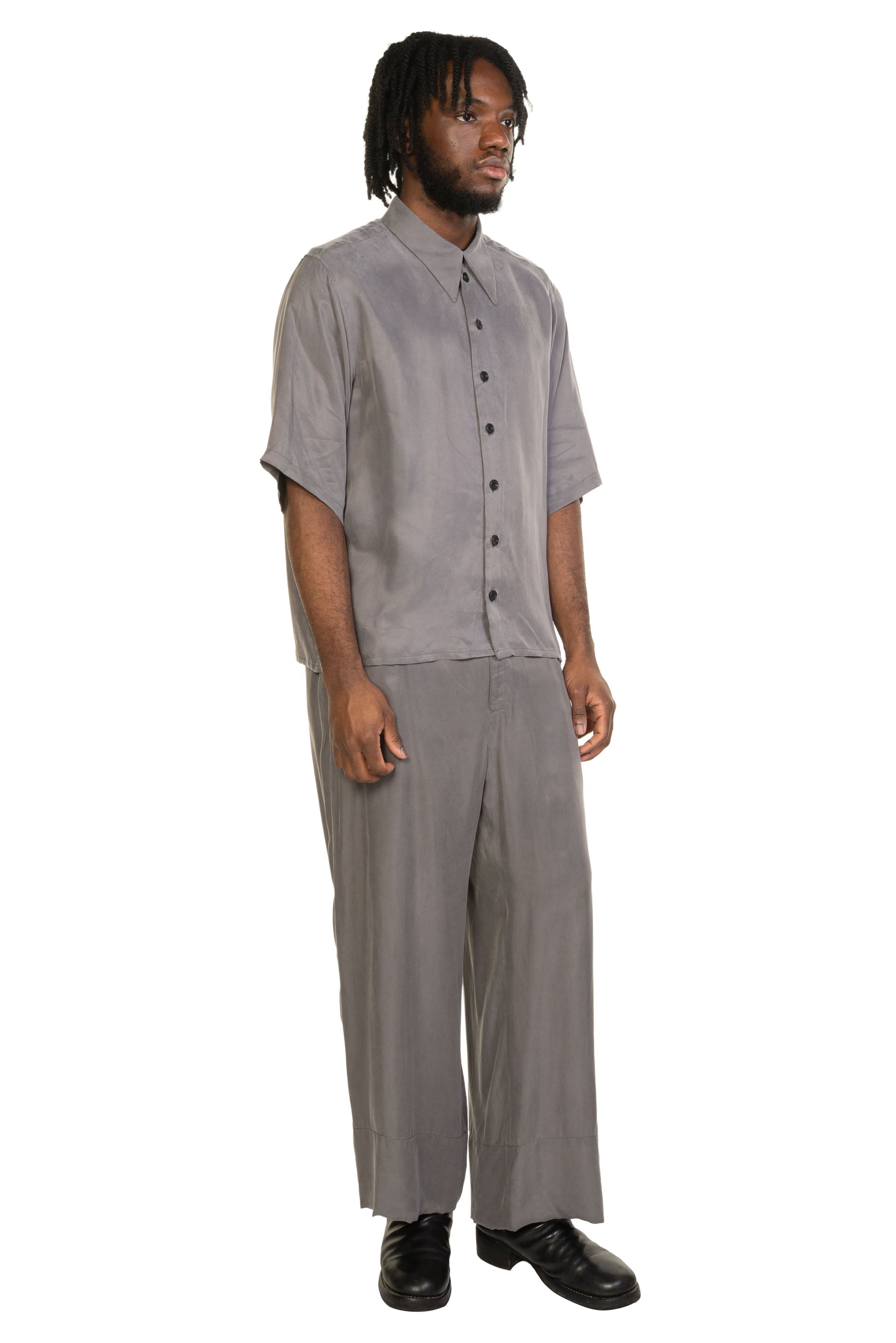 PENG approaches clothing as a quiet expression of the human experience, shaped by nature, time, and the body. Designed by Zhi-Chen Tai (formerly Peng Tai), each piece reflects a considered balance between conceptual design and everyday wearability. Natural elements such as leaves, soil, and organic textures inform the materials and silhouettes, resulting in garments that feel thoughtful, tactile, and timeless. Defined by refined craftsmanship and contemporary form, PENG offers modern menswear with a calm, organic sensibility, clothing designed to be worn, lived in, and appreciated over time as seen with the Short Sleeve Shirt Paloma.