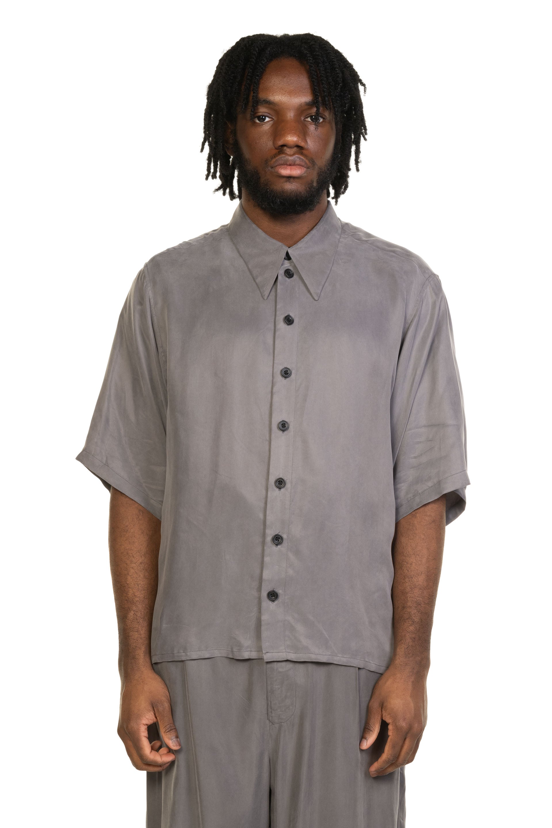 PENG Short Sleeve Shirt Paloma Grey is a modern take on everyday tailoring, crafted from lightweight, breathable fabric with a soft, fluid drape. The Random Colour tone enhances its clean, understated silhouette offering a minimalist aesthetic.