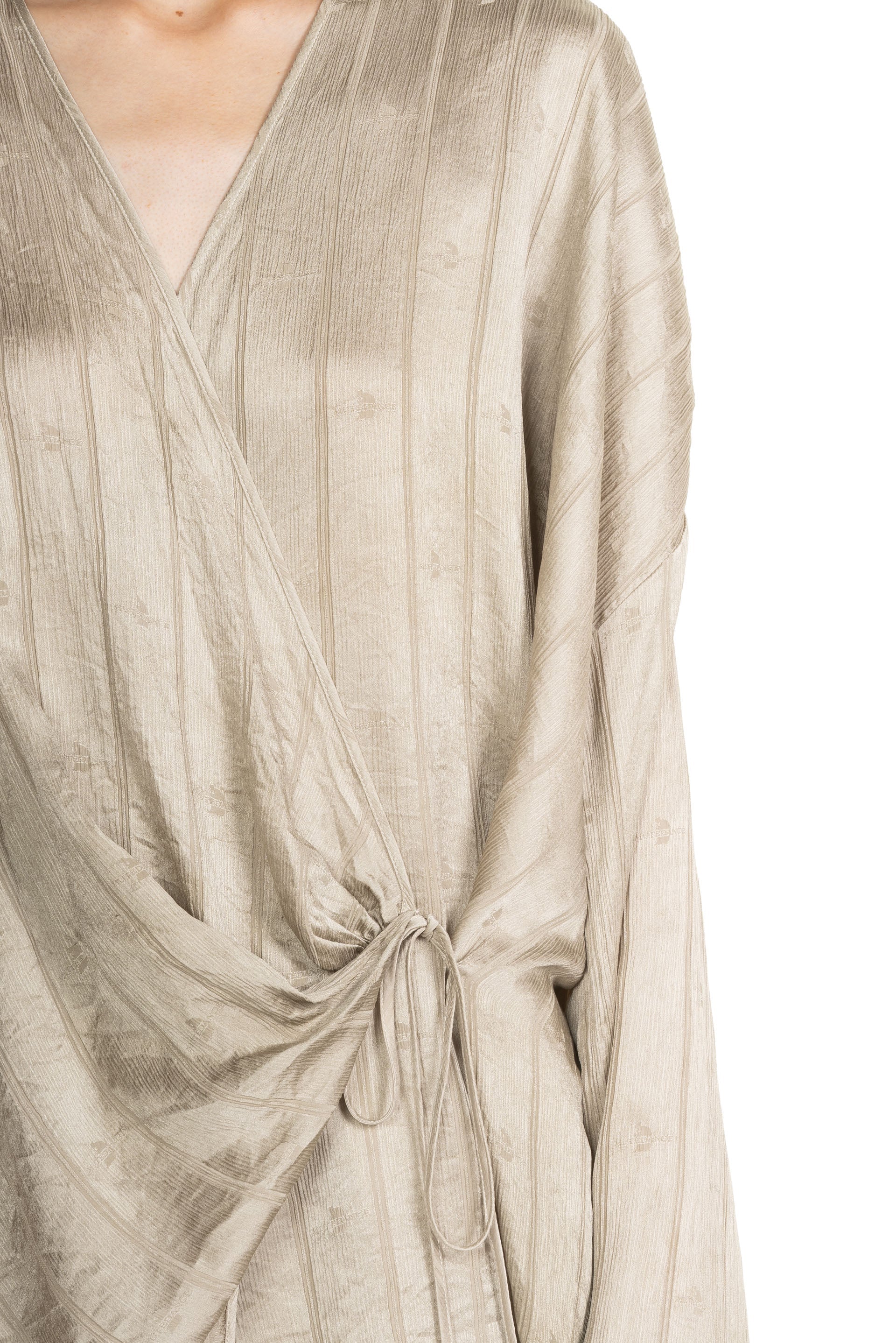 Mute Dance Silk Shirt in Beige. Drawstring closure at front. Two side pockets. Wide fit. Signature Metal dye. Hand dyed