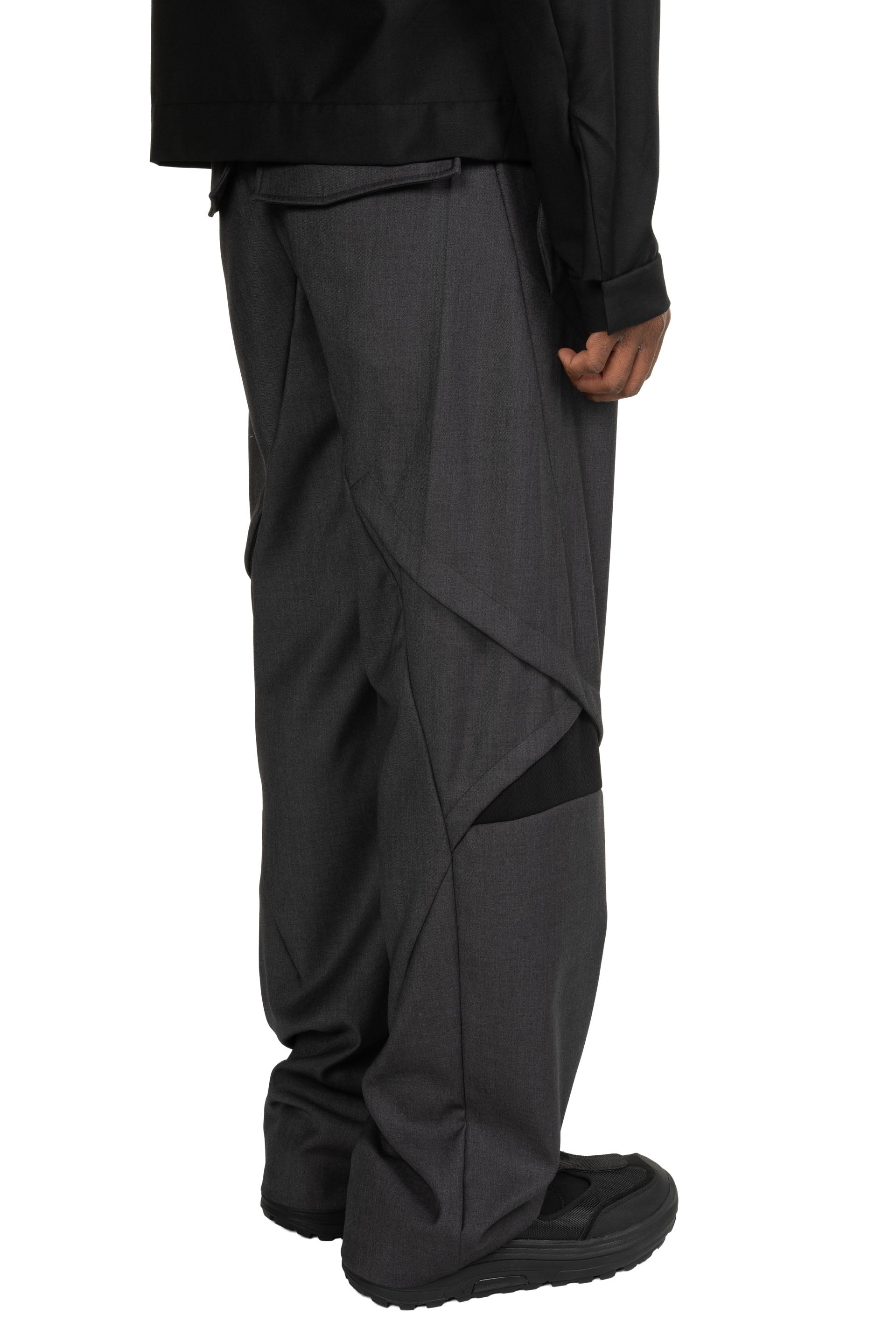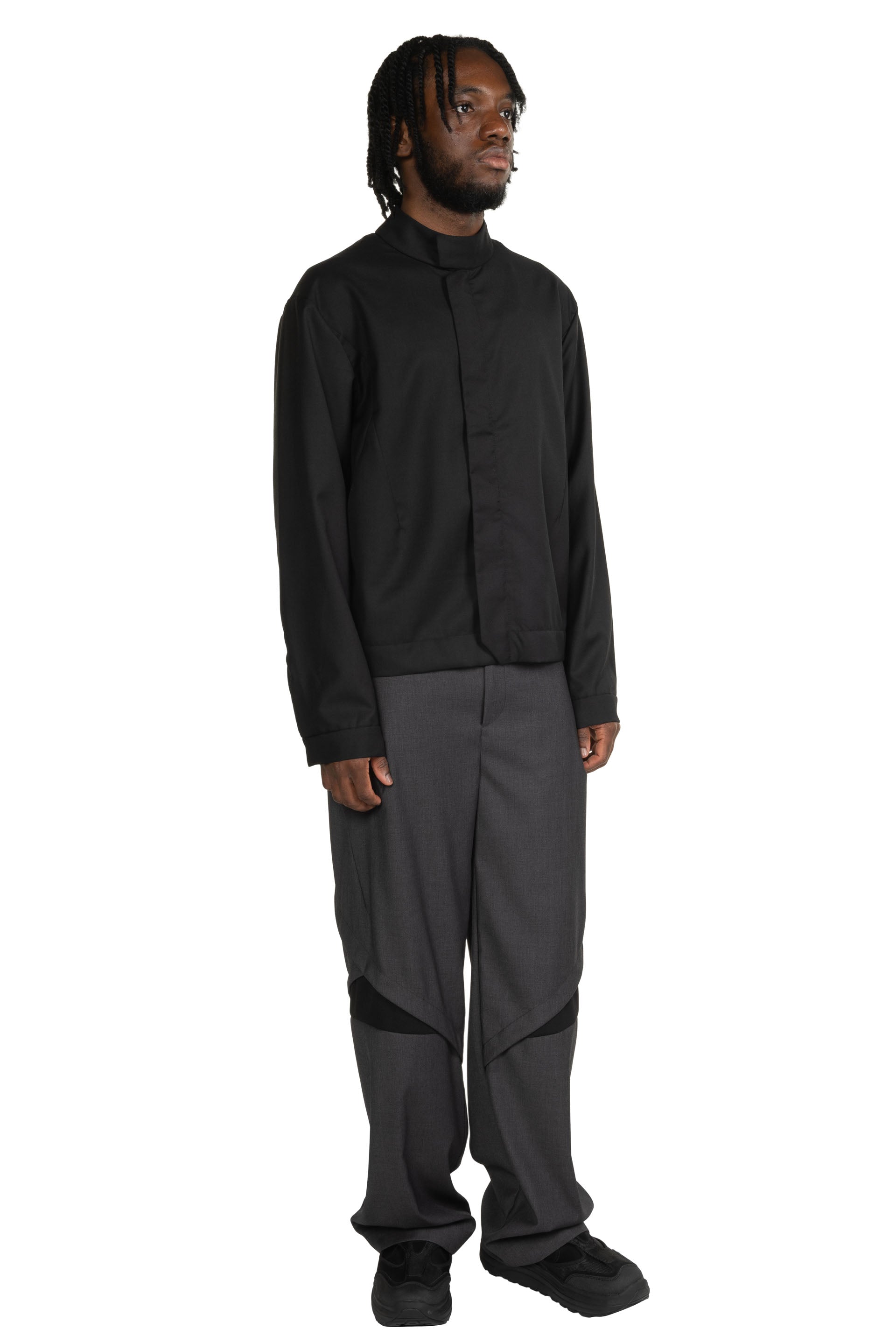 J EONGL I reinvents workwear for urban life through functional innovation. The Seoul-based brand merges technical precision (taped seams, multi-directional zippers) with nature-inspired design, creating durable garments that transition seamlessly from work to active lifestyles. Founder Jeong Li's instant success with his urban-nature aesthetic proves the demand for this new vision of practical sophistication as seen with the Slash Wool Trousers Light Grey.