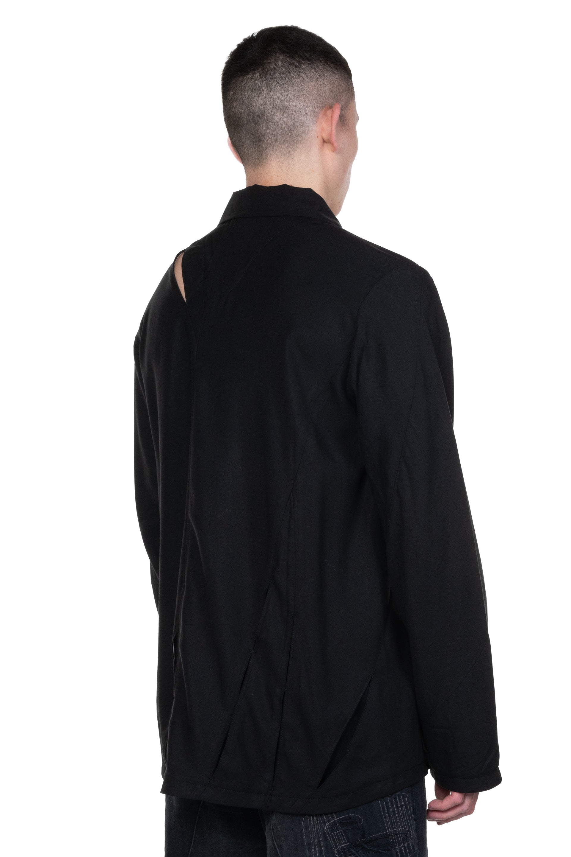 Professor. E understands the time of aesthetics from the use of cotton, hemp and wool. Fabric stitching, patching, designs without edge trimming, deconstruction, and reproduction are all Professor. E's signature elements creating classic immortal designs that can be viewed with the Slit Shirt Black.