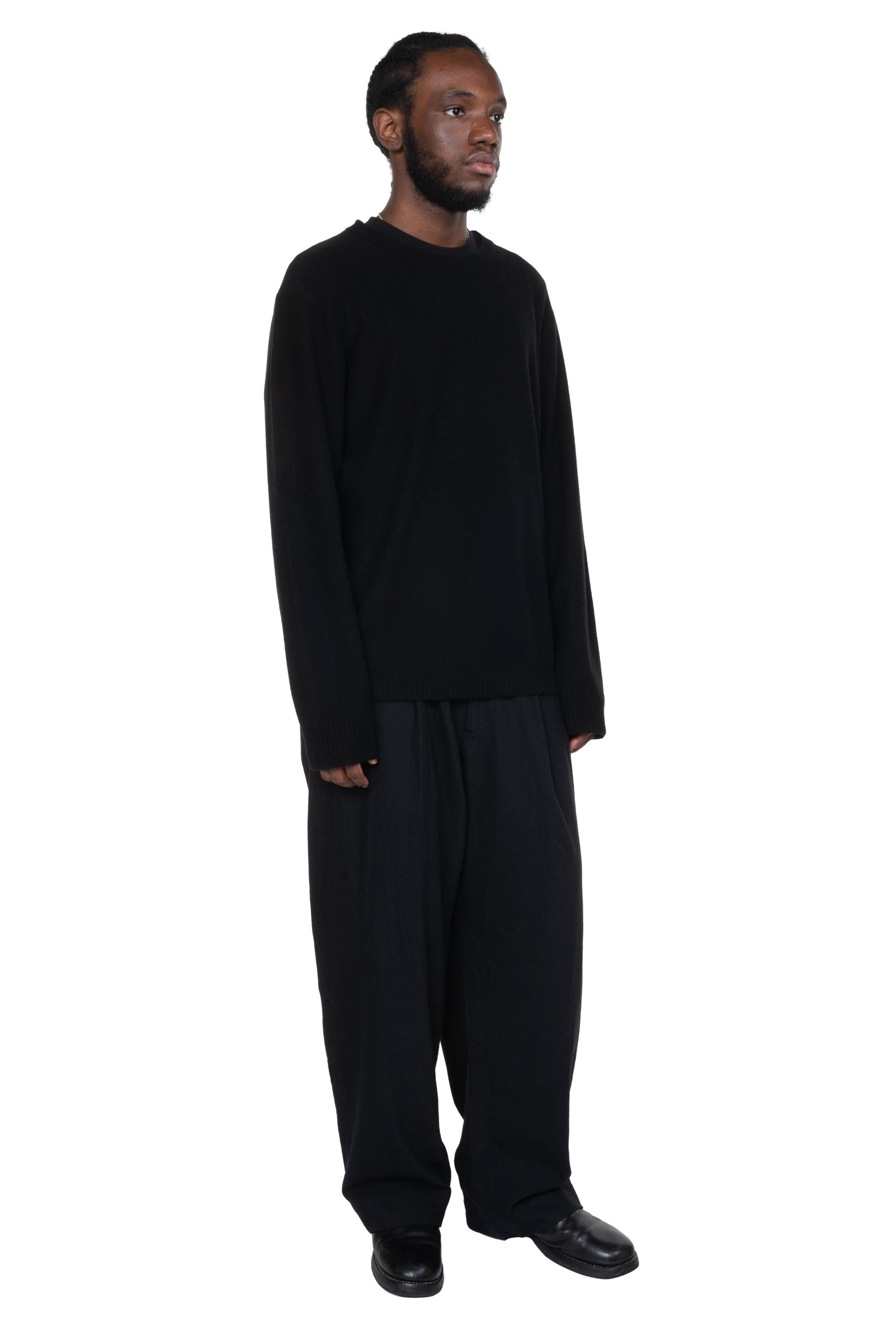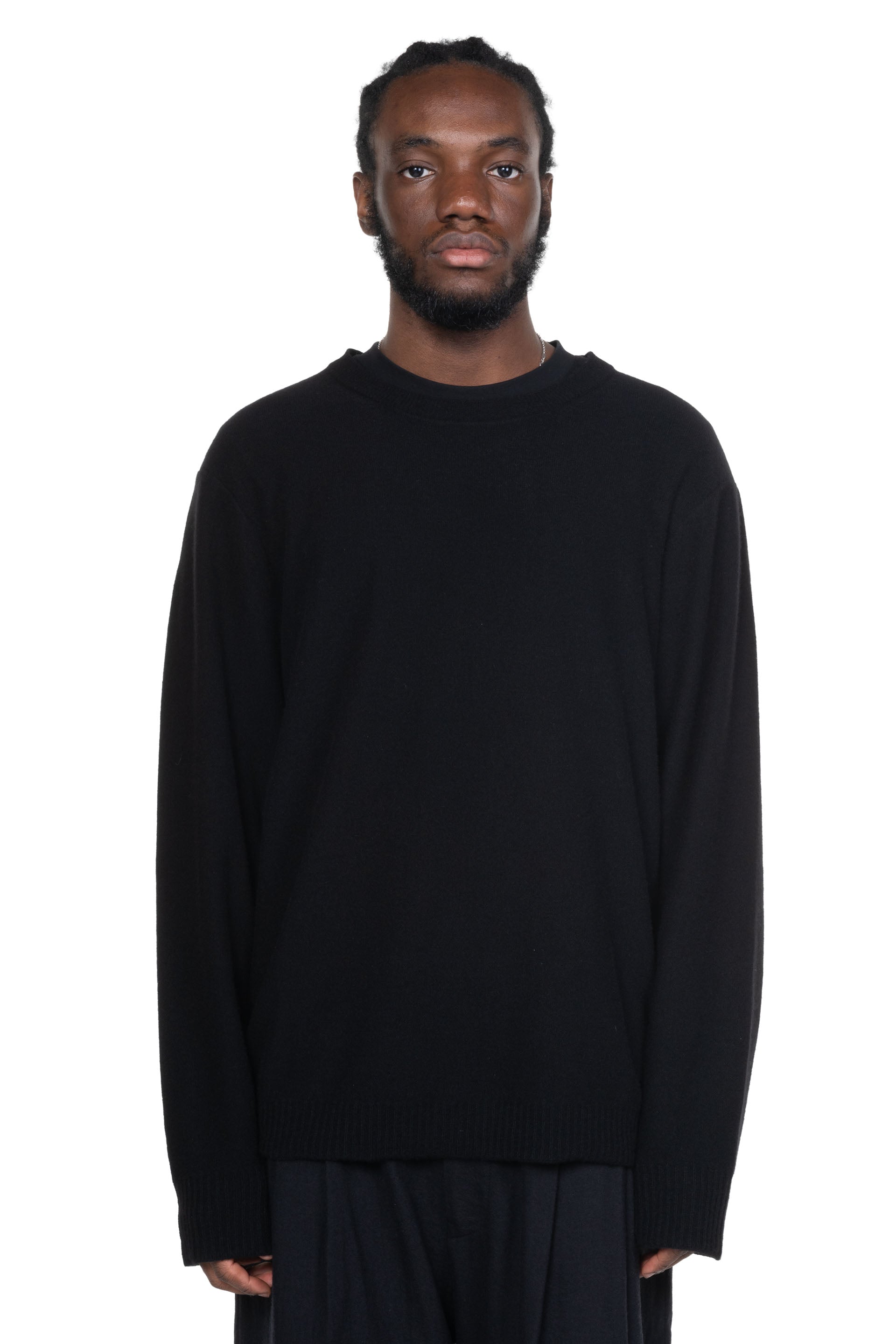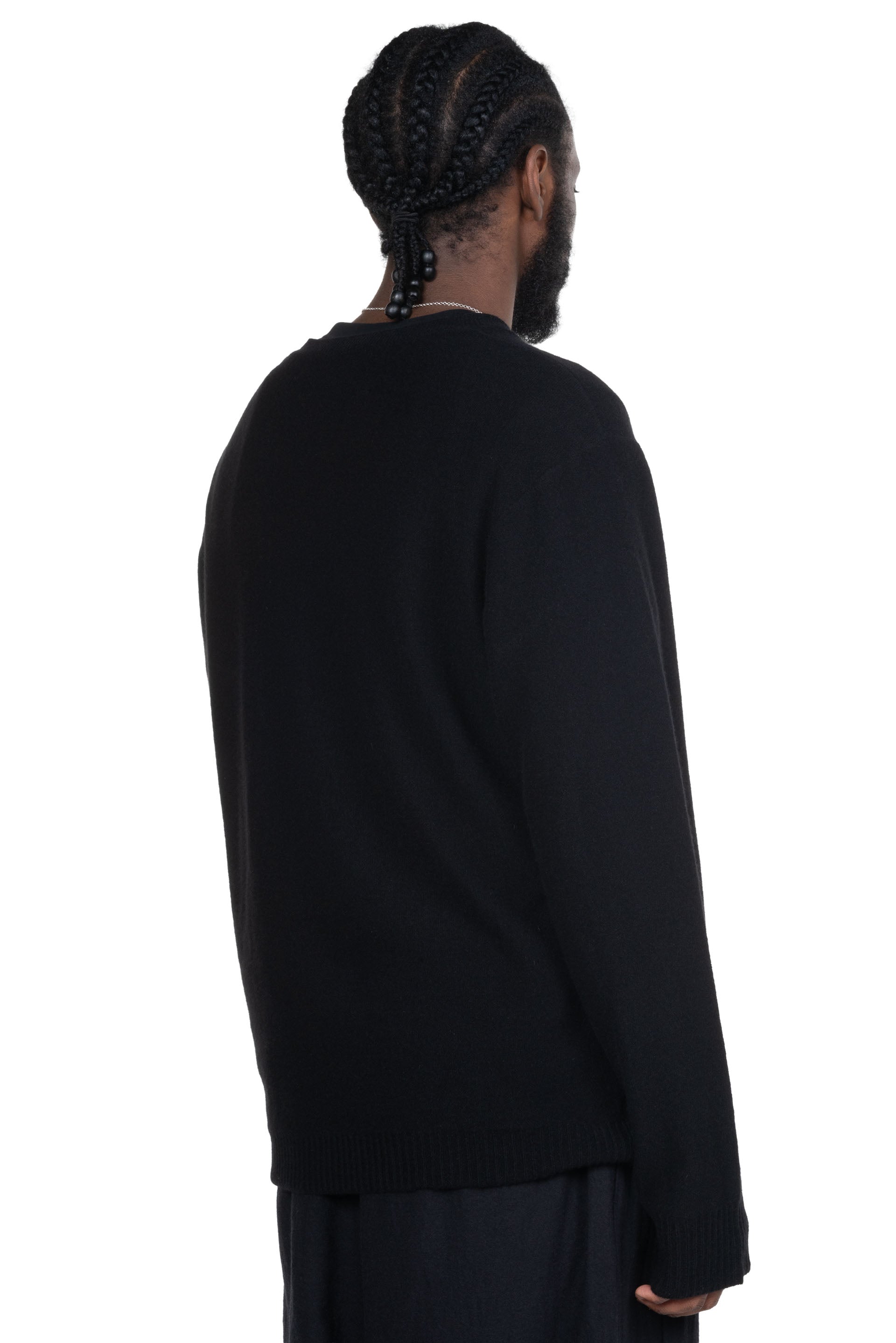 Ziggy Chen small statue intarsia sweater. Long sleeves. Loose fit. Below-hip-length. Crew-neck. Intartia of small statue on the left forearm.