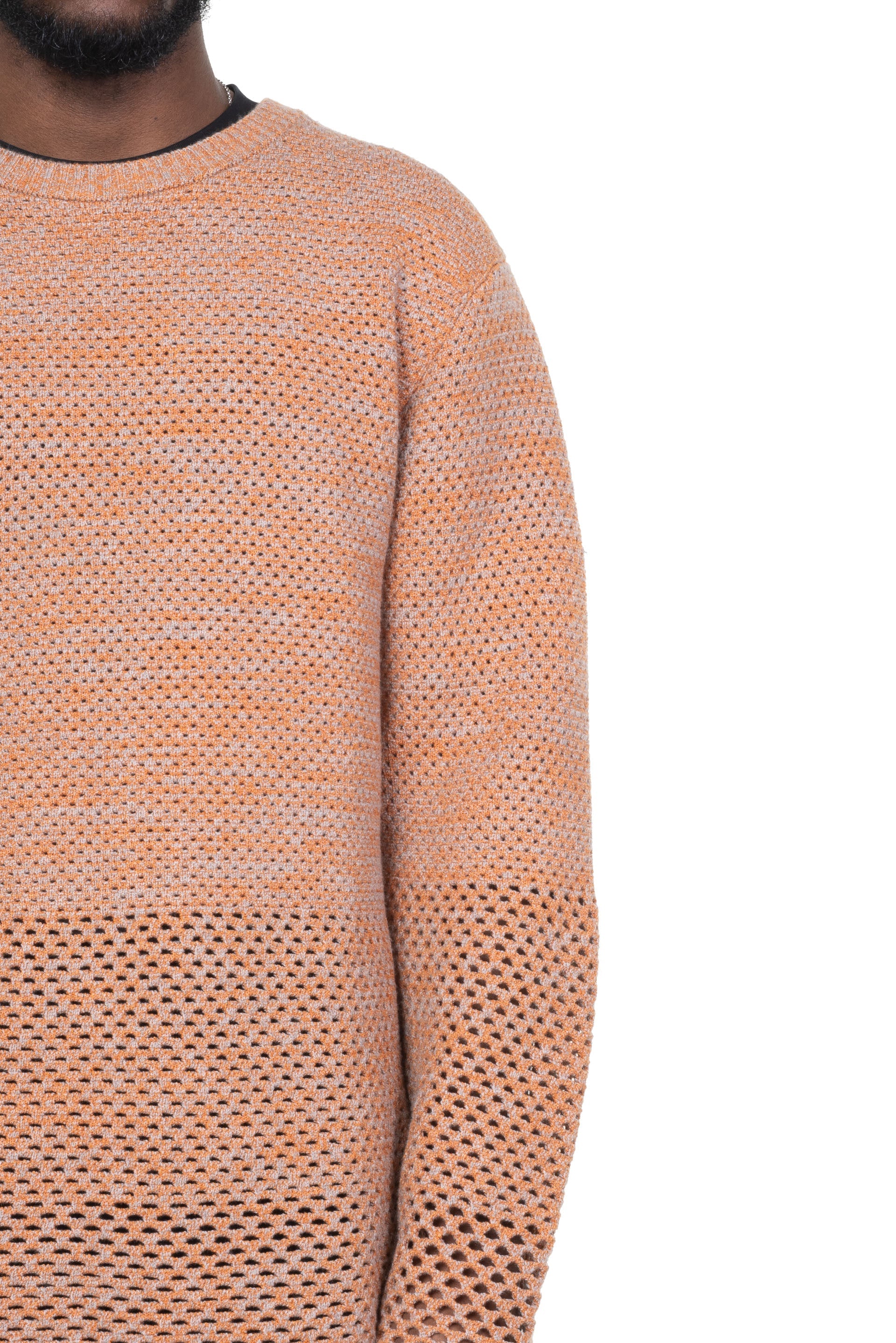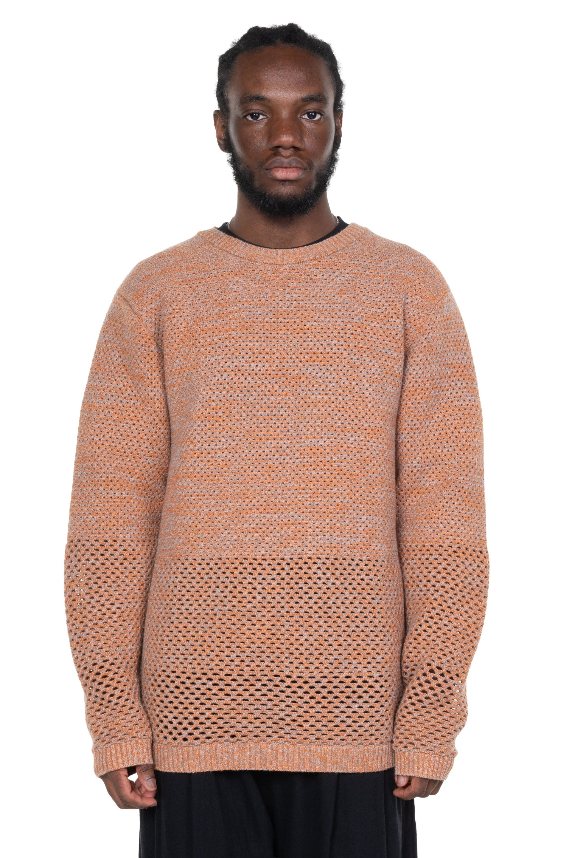 Isa Boulder Solid Crochet Crewneck Sweater Sunburnt. Long sleeves. Round neck. Made from sustainable materials. Ribbed cuffs.
