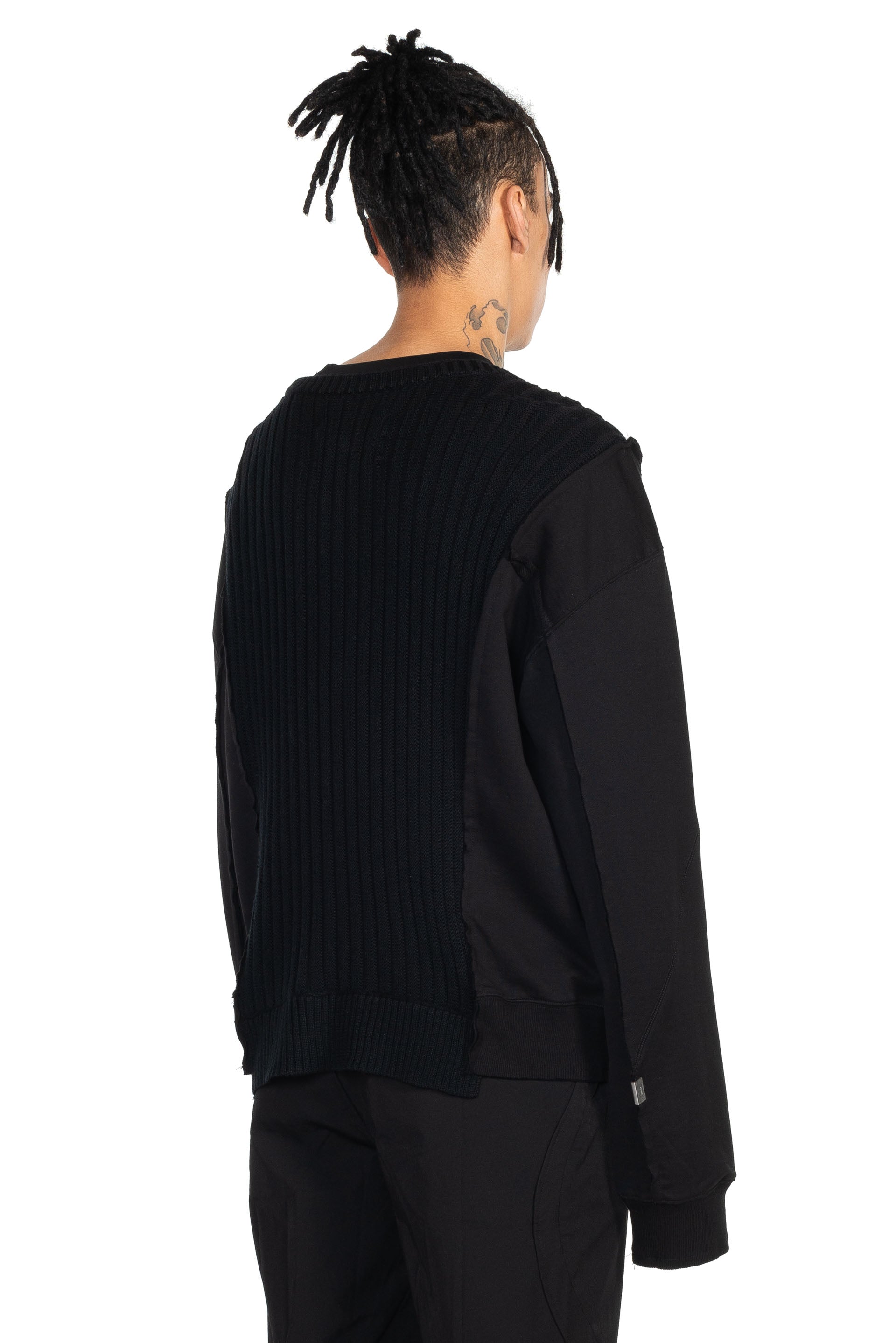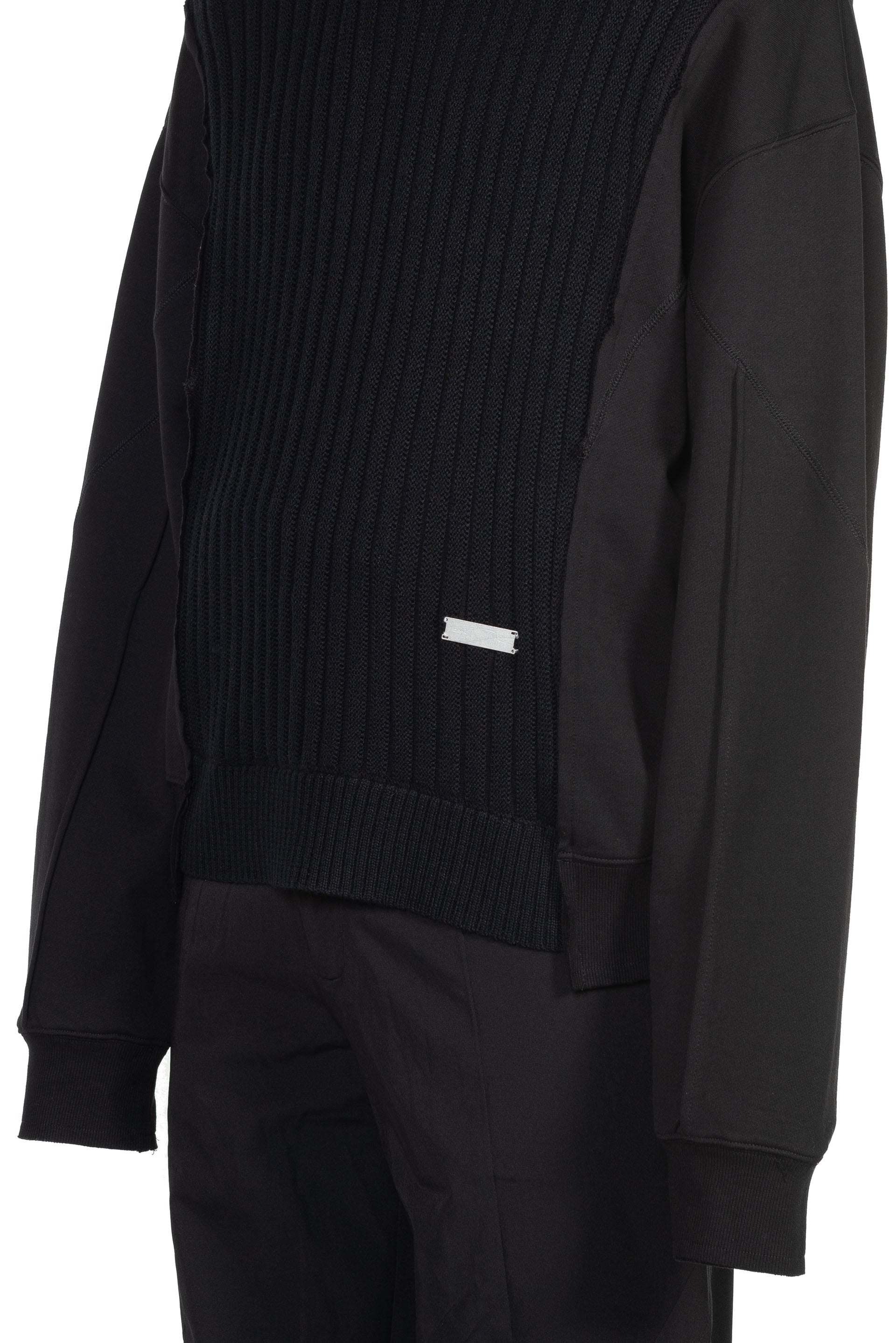 C2h4 Solid Knit Panelled Crewneck. Layered Raw Edge Throughout. Panelled fabric at front and back. Rib Knit Cuffs And Hem. Branded hardware at front.