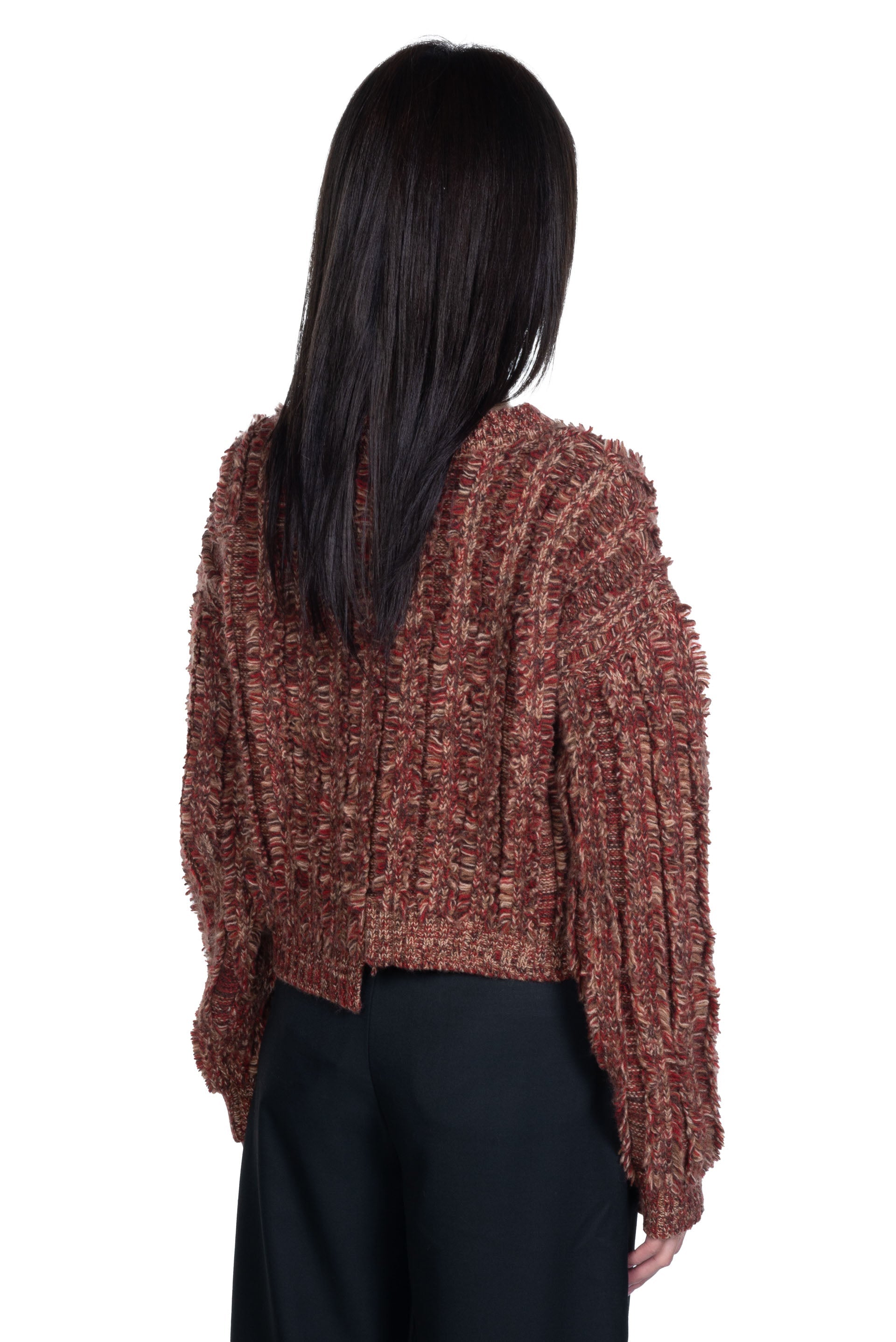 Long sleeves. Cropped fit. Fringe throughout.