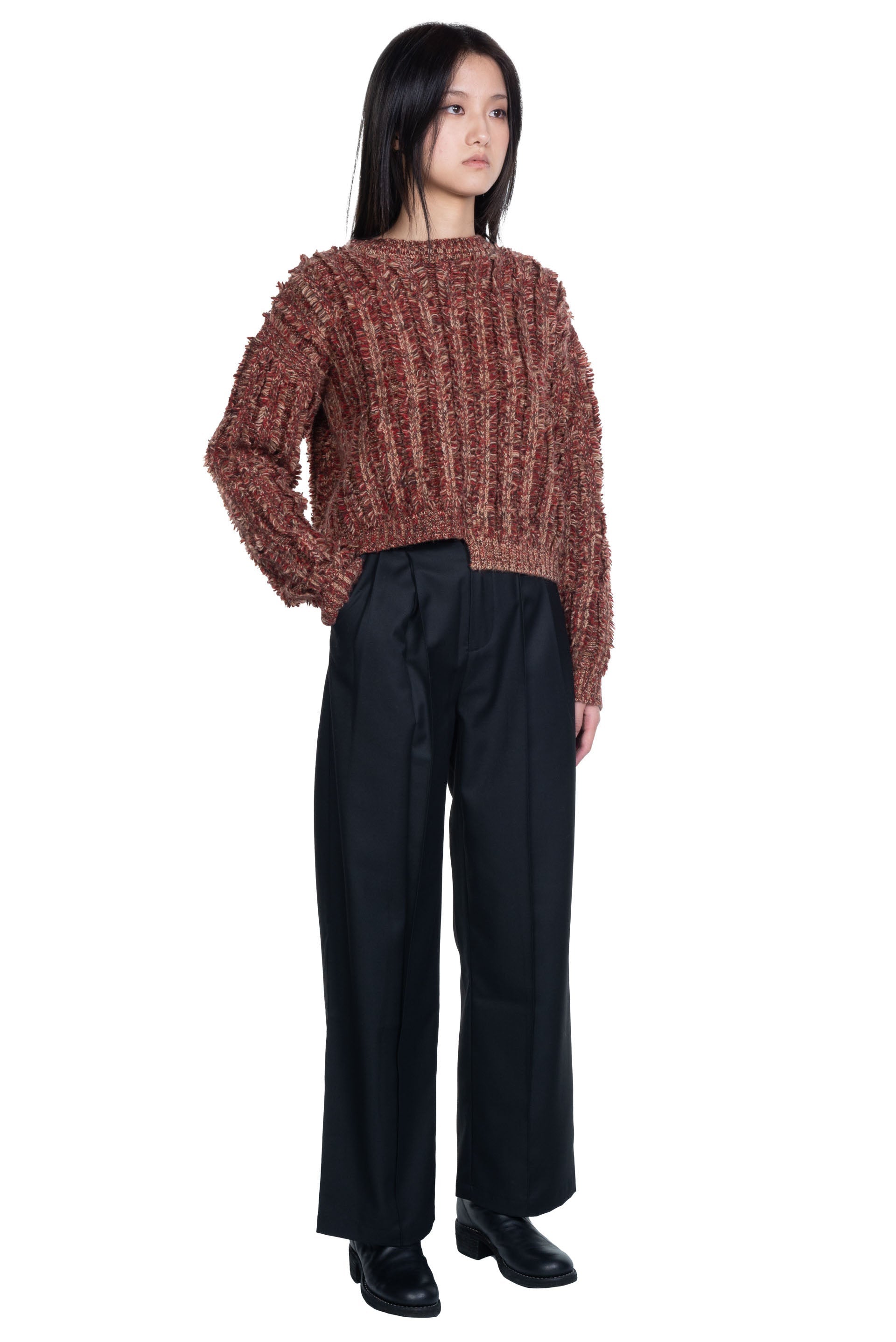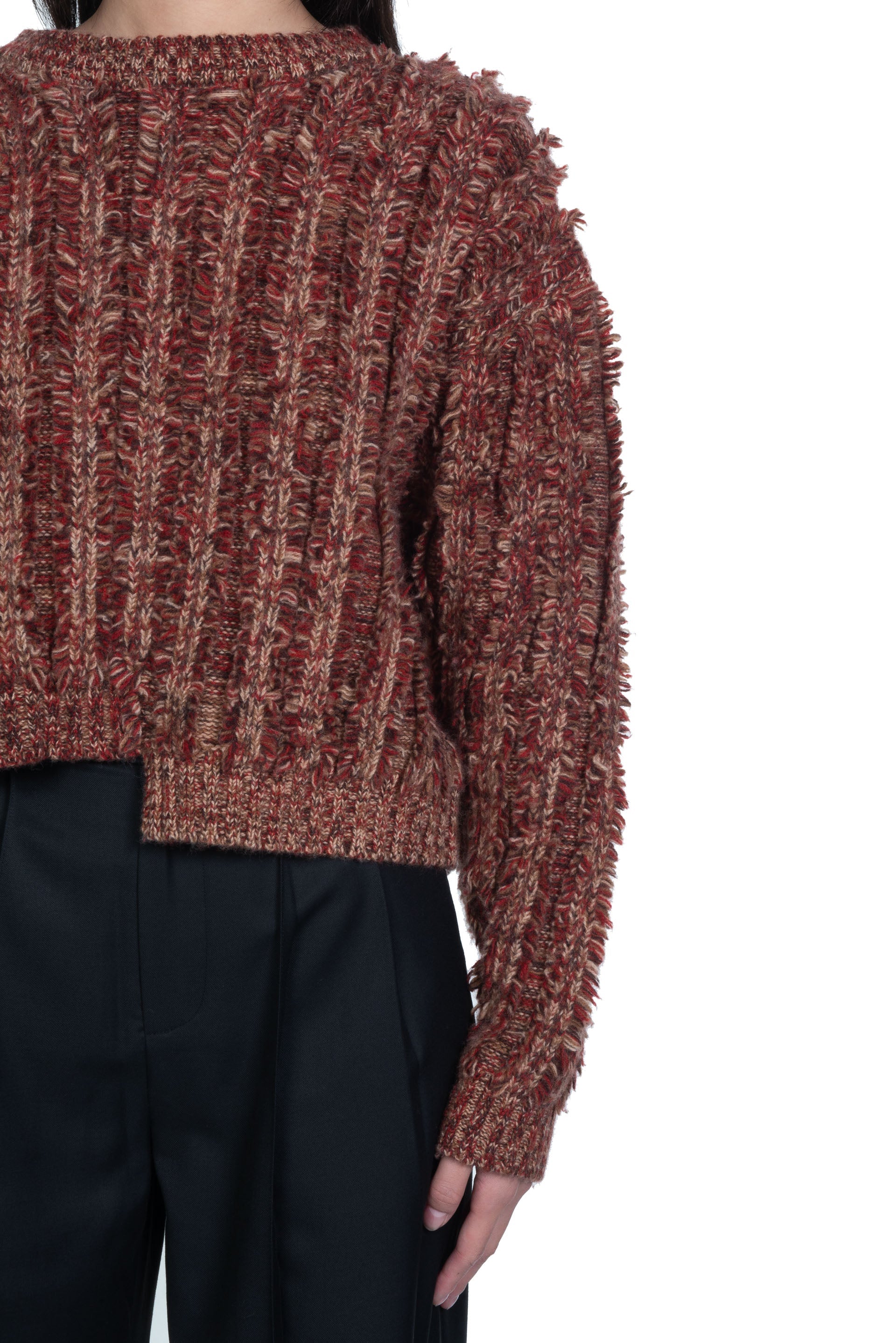 ii delivers a sense of originality, simplicity, spontaneity and a hint of childlike innocence pushing boundaries among ages to present qualitative collections with timeless touches designed for independent individuals as seen with the Sparkle Fringe Cut-Out Sweater.