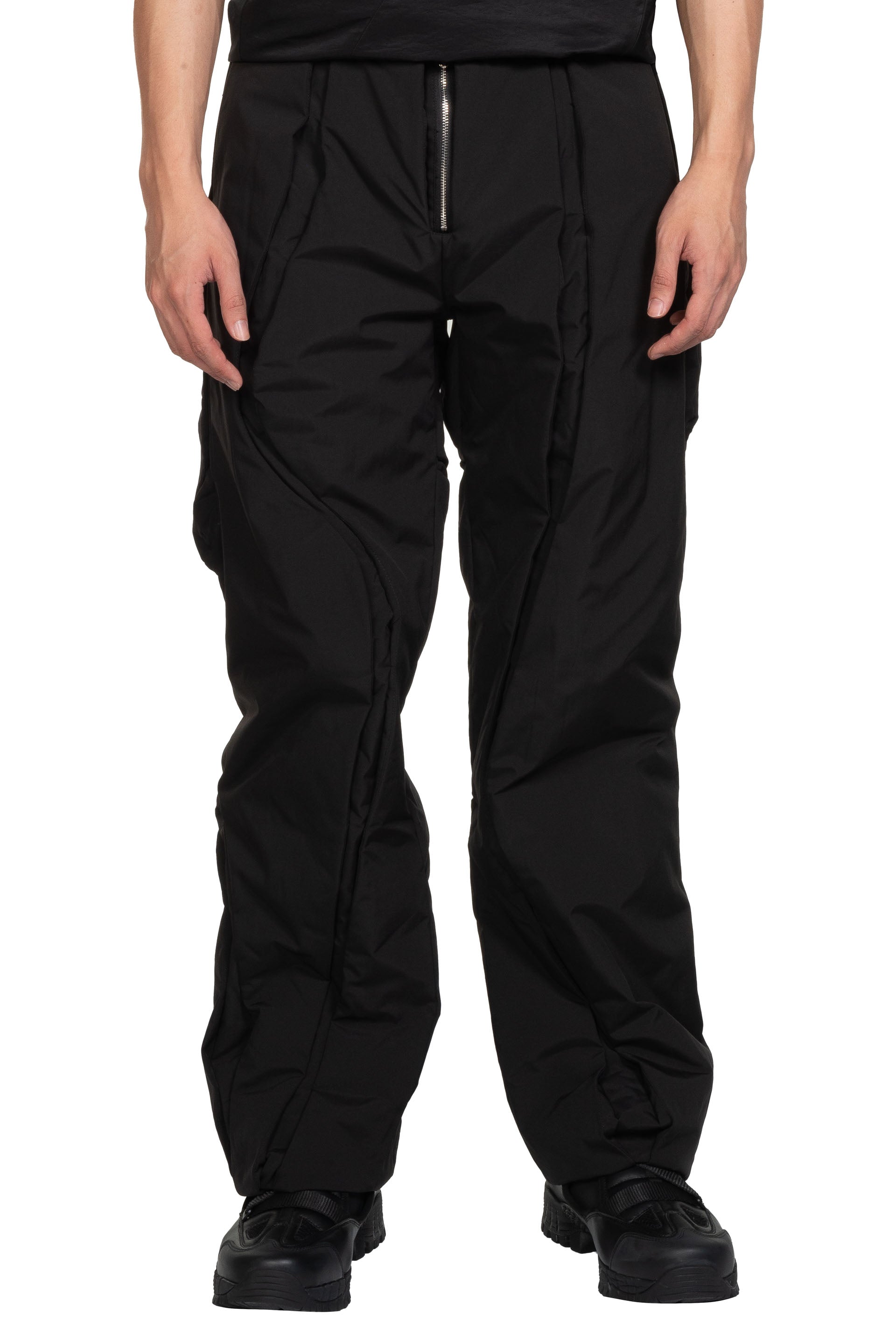Insulated nylon canvas trousers. Tucks throughout. Panelled construction. Belt loops. Two-pocket styling. Zip-fly. Press-stud fastening at adjustable cuffs