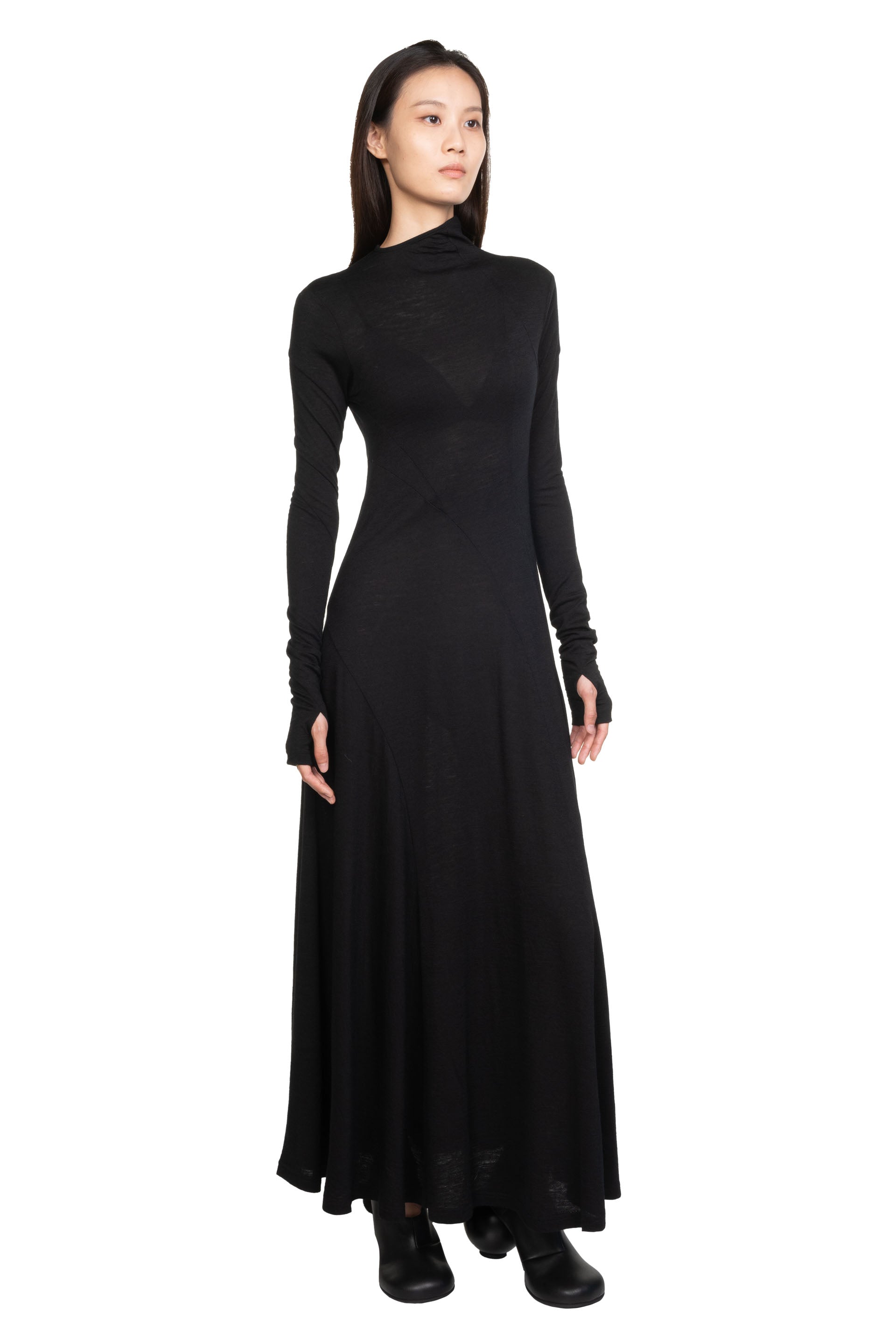 ATTEMPT reconstructs different styles and elements to create a new aesthetic system. By taking a more experimental approach to creation and production, which involves an understanding of the past and the current form of society, Attempt is creating an aesthetic form that is anchored in the present but different from it. It must ultimately be a product that cannot be defined as seen with the Spin Knit Dress Black.