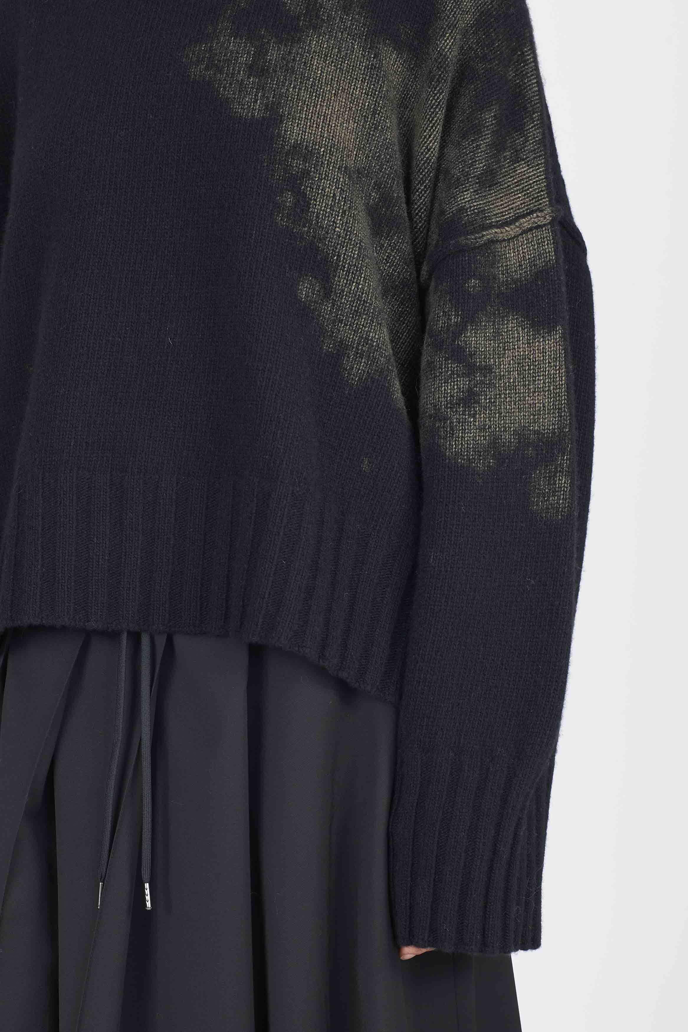 Eco cashmere boxy knit with laminated print detail on the side. Regular fitColour: Black. Composition: 50% Cashmere 50% wool.