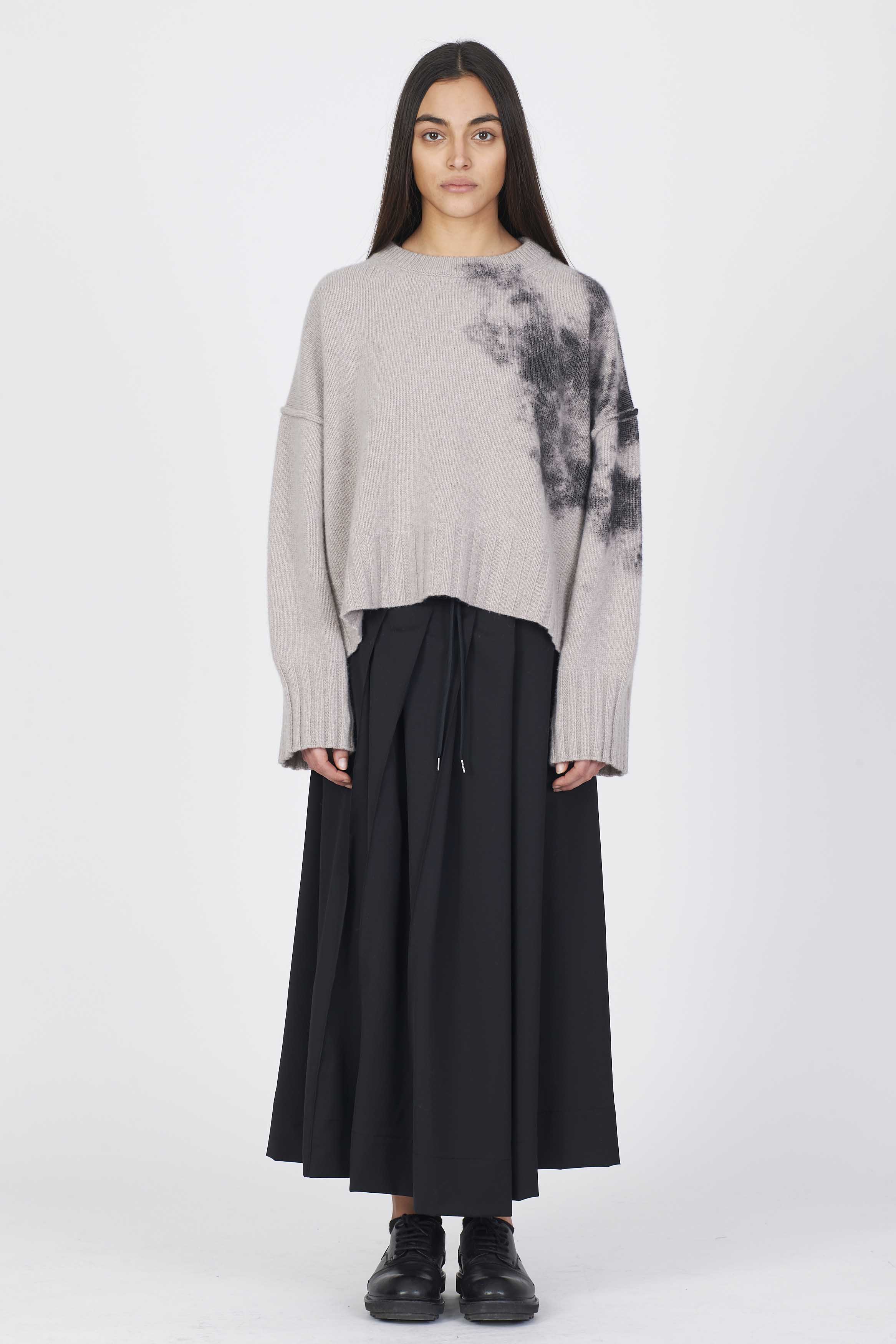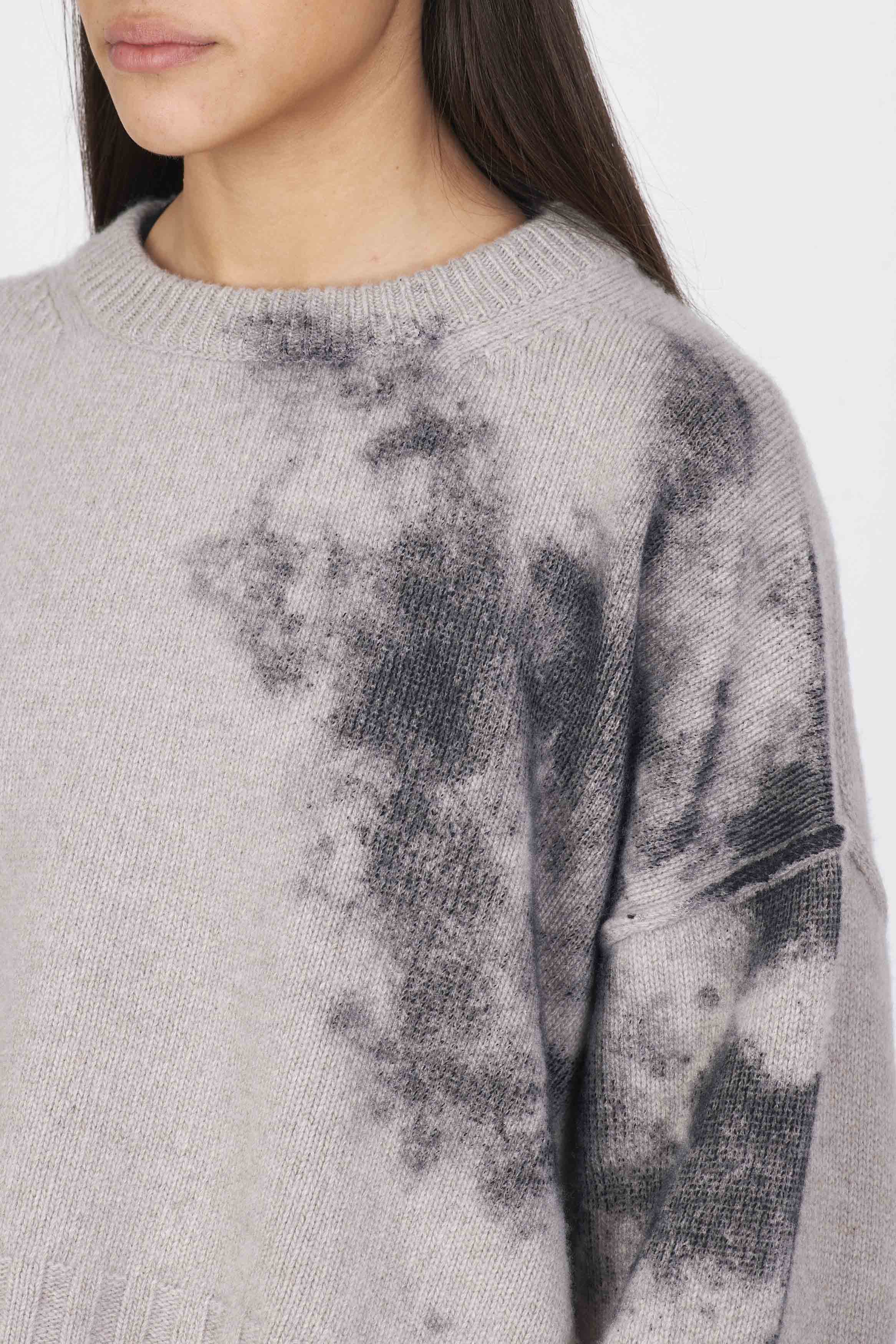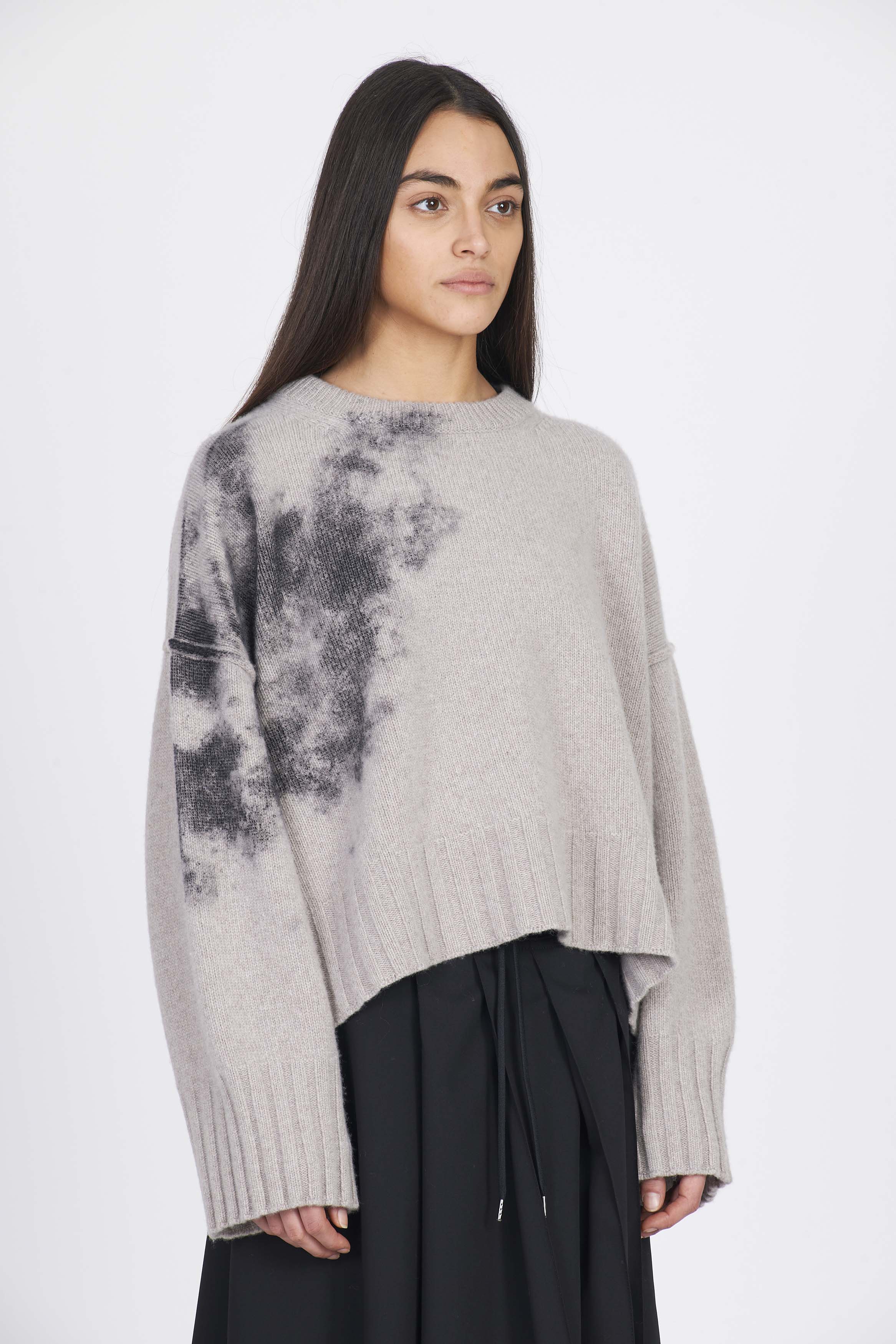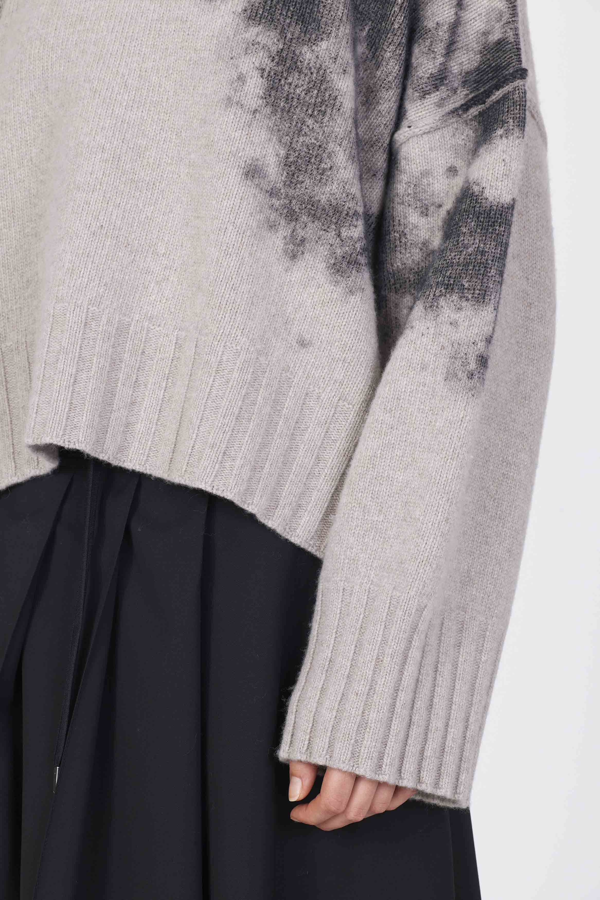 Eco cashmere boxy knit with laminated print detail on the side. Regular fit