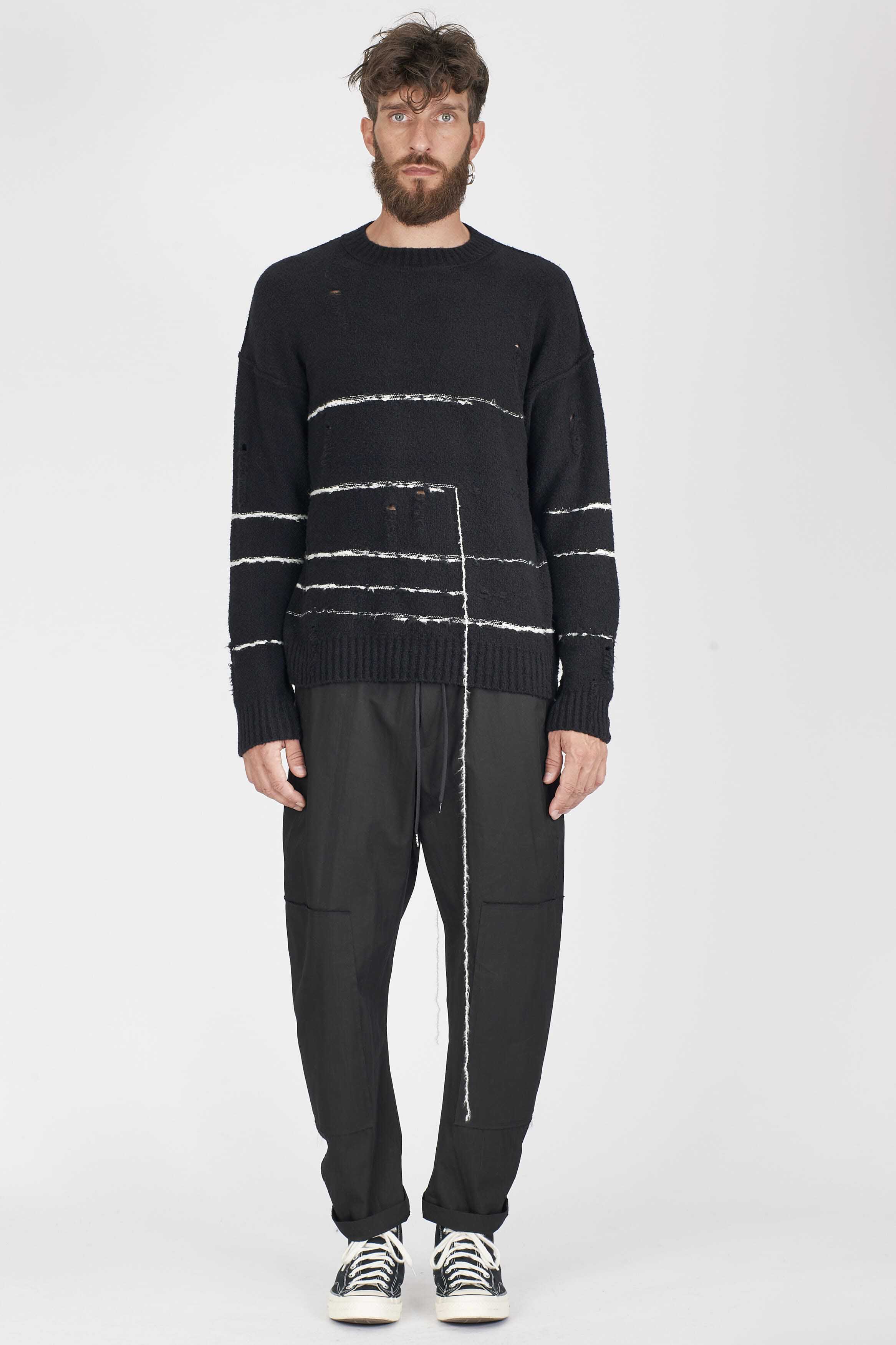 Crew neck. Striped organic cotton jumper with floating thread detail. Soft touch. Regular fit.