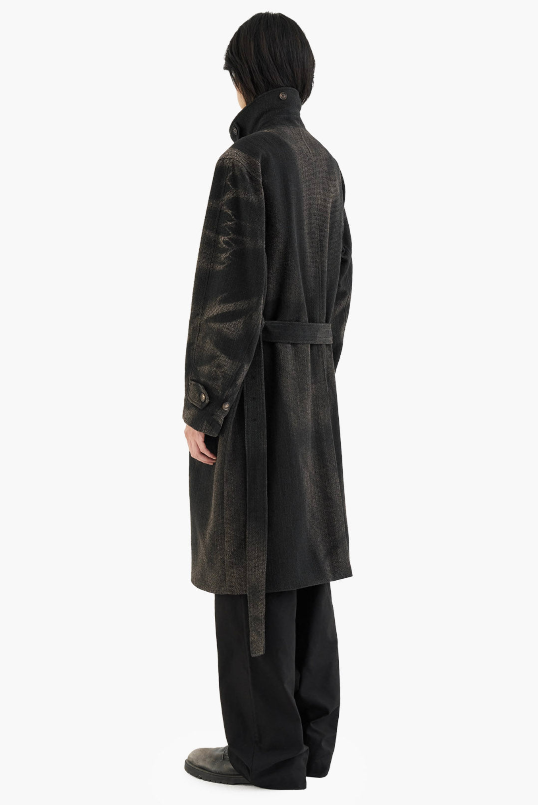 Long coat with a refined, structured silhouette, accentuated by Sun-Bleach details that blend
