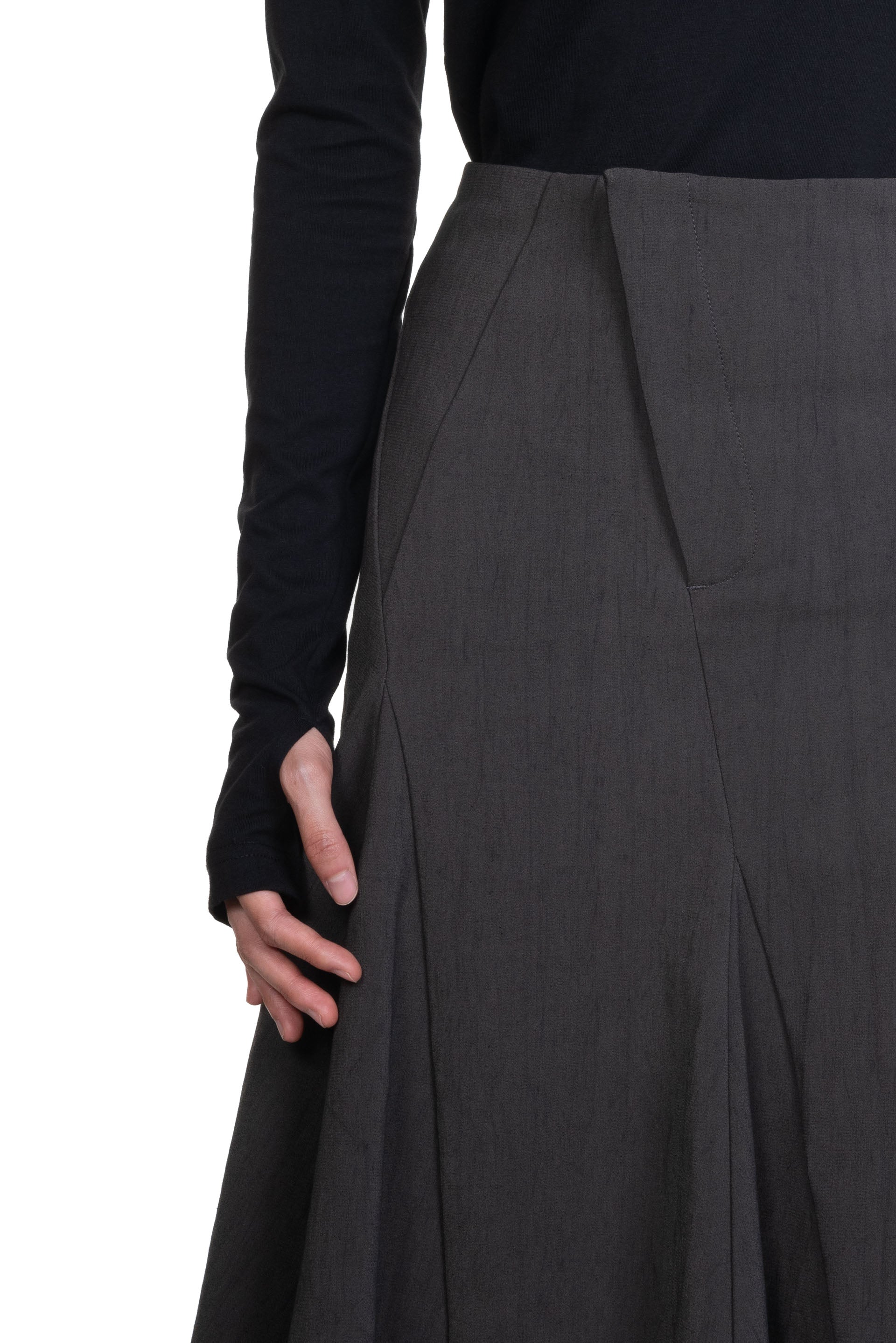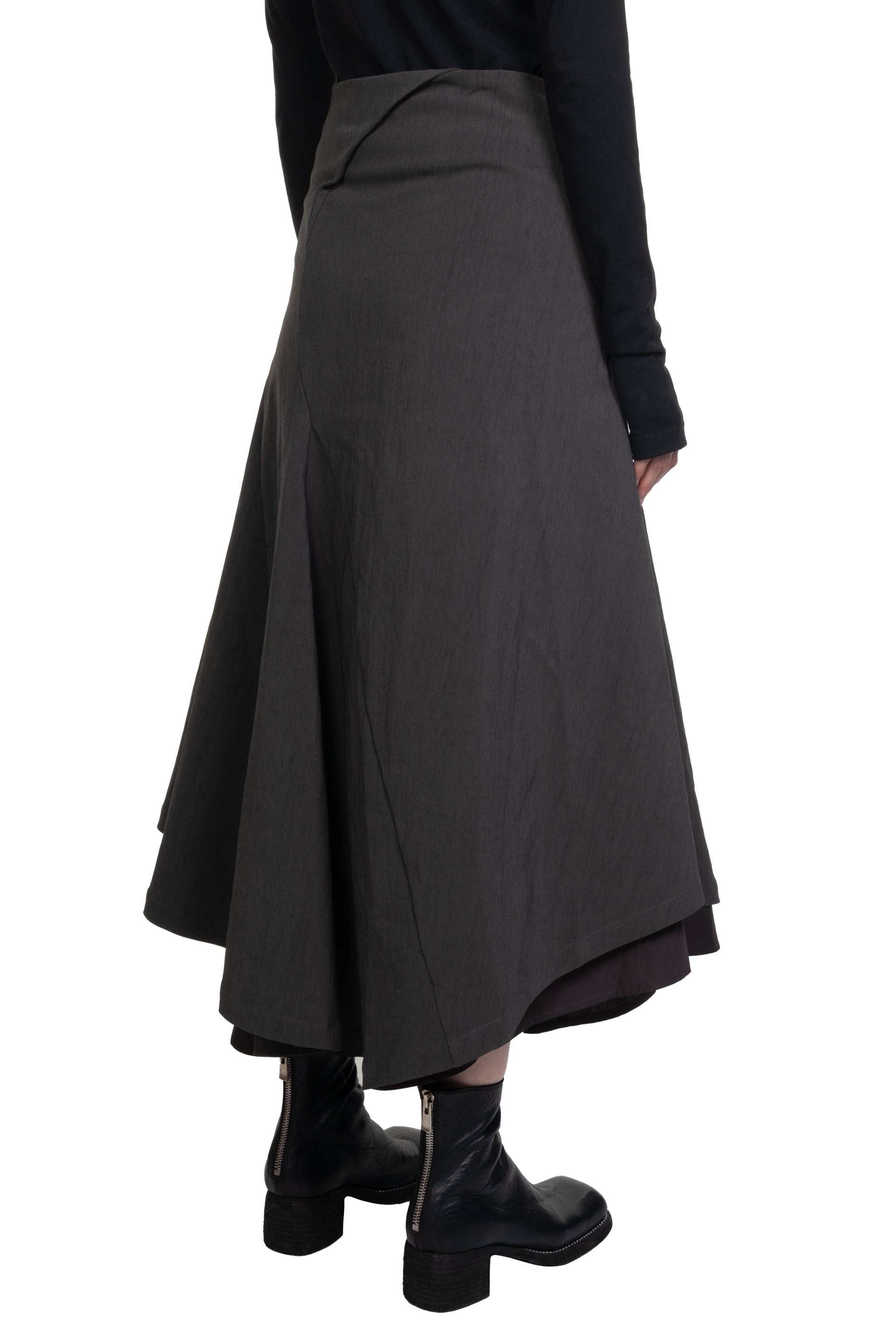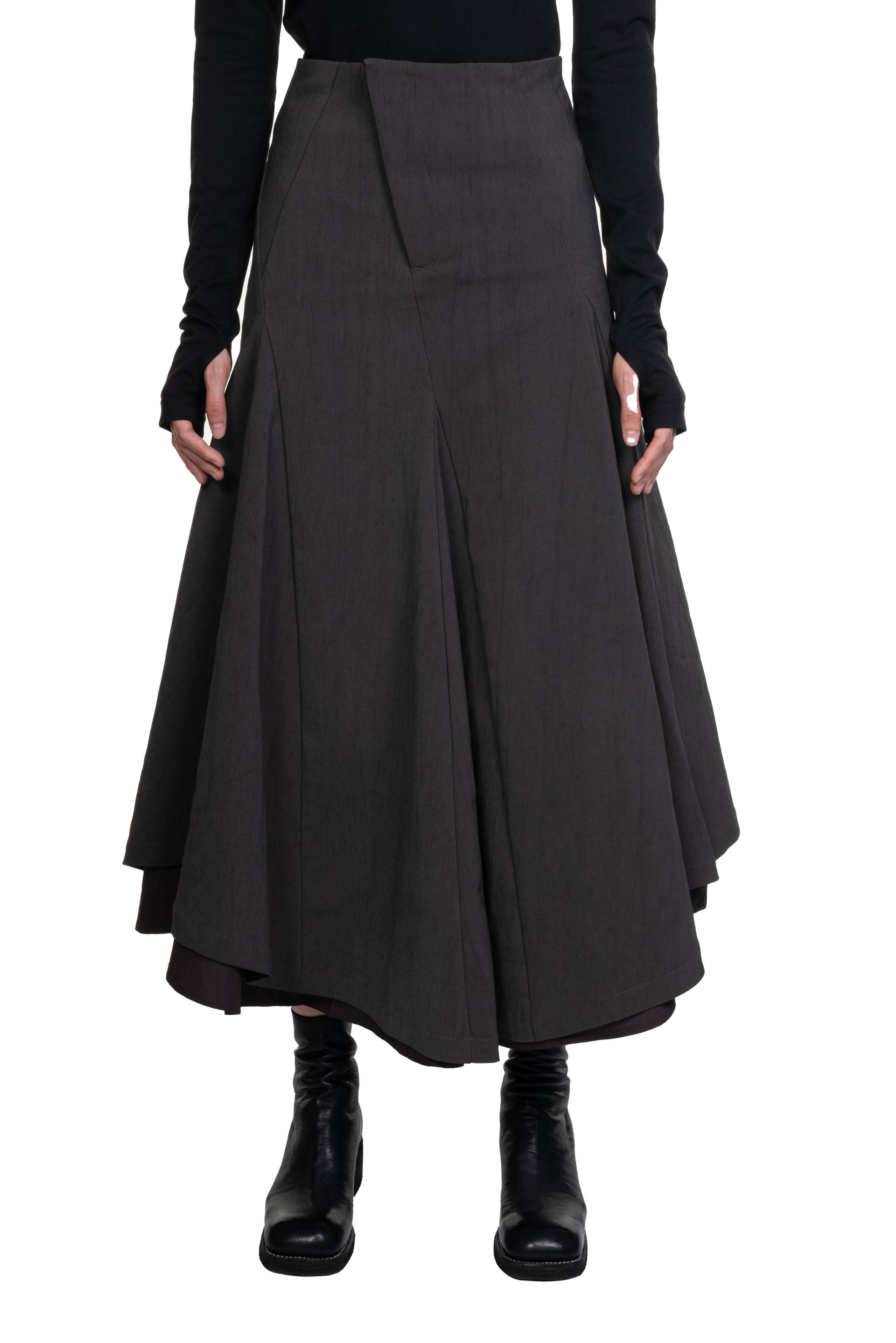 ATTEMPT reconstructs different styles and elements to create a new aesthetic system. By taking a more experimental approach to creation and production, which involves an understanding of the past and the current form of society, Attempt is creating an aesthetic form that is anchored in the present but different from it. It must ultimately be a product that cannot be defined as seen with the Swivel Double Skirt Dark Grey.