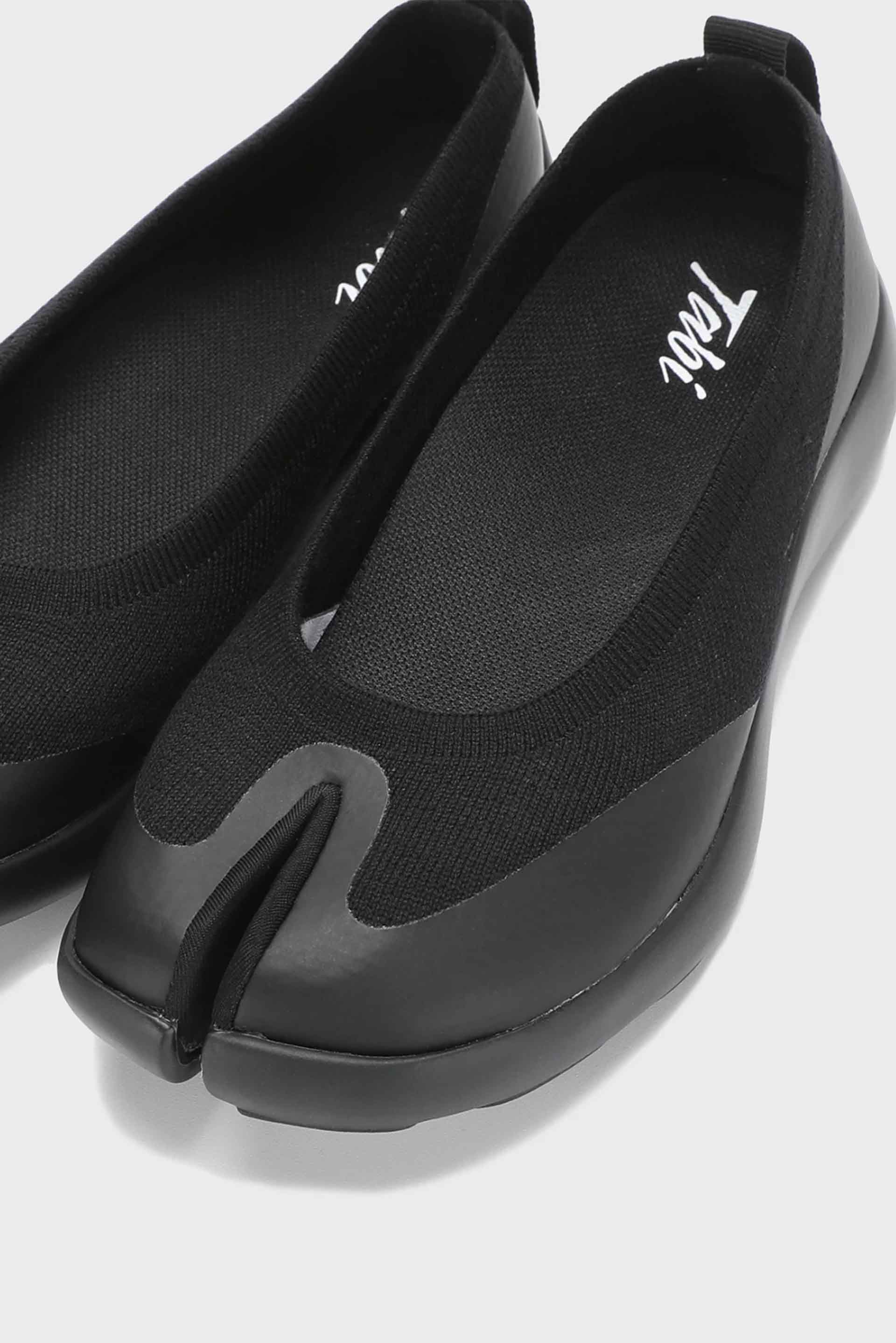 Tabi Ballerina Black feature a split between the big toe and the rest of the toes to promote balance and stability. Tabi Ballerina features comfortable textile upper with rubberised logo on the heel. Tabi uppers are made from Tencel Flyknit (tree fibres). Tabi injection EVA outsole are made of sugar cane. Tabi insoles are made from algae-based EVA foam.
