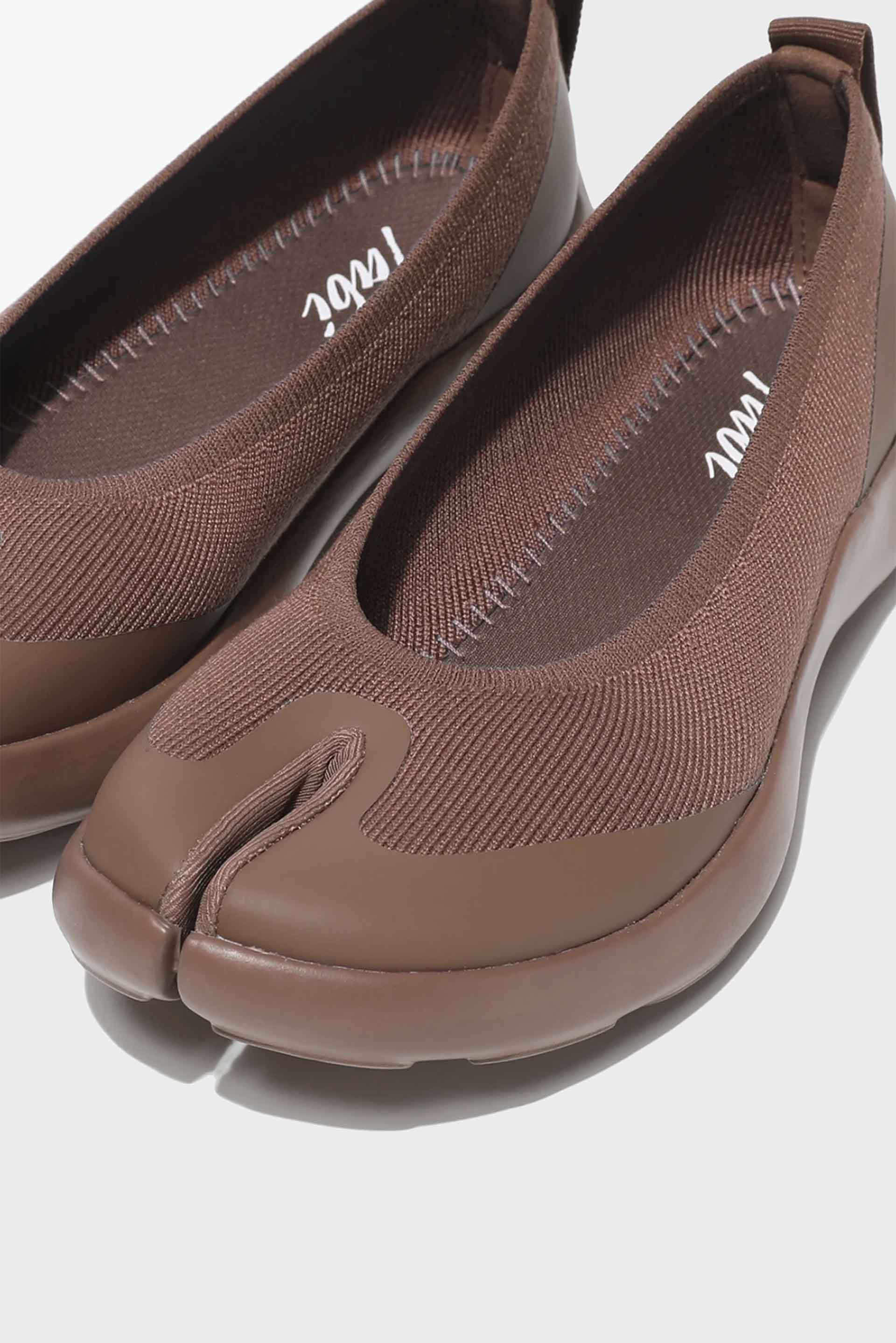 Tabi Footwear is a sustainable footwear brand finding new uses for materials that exist right in front of us. A concept of a split-toe shoe for natural movement of the feet. Tabi allows you to step more mindfully by sensing the ground you walk on as seen with the Tabi Ballerina Chocolate.