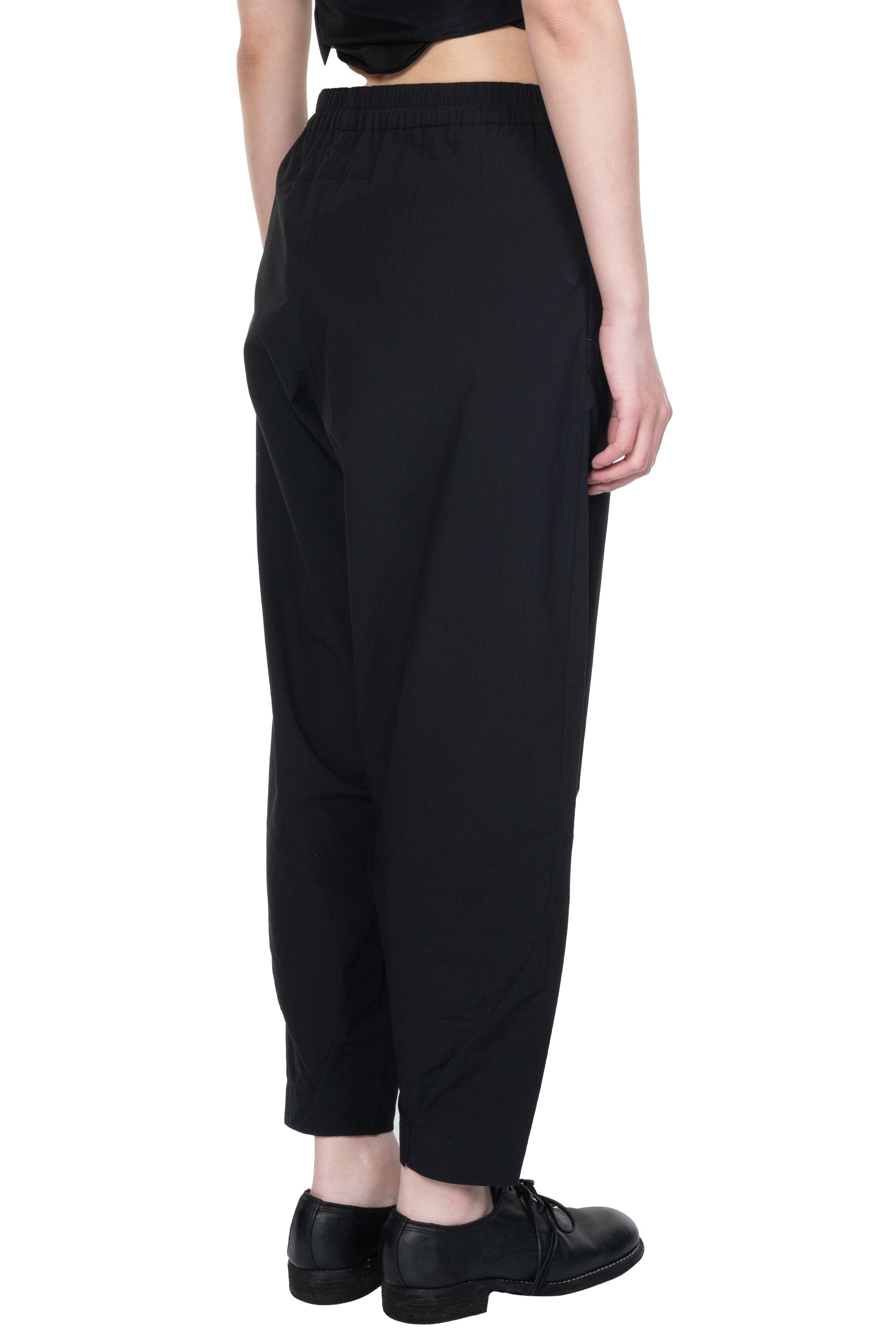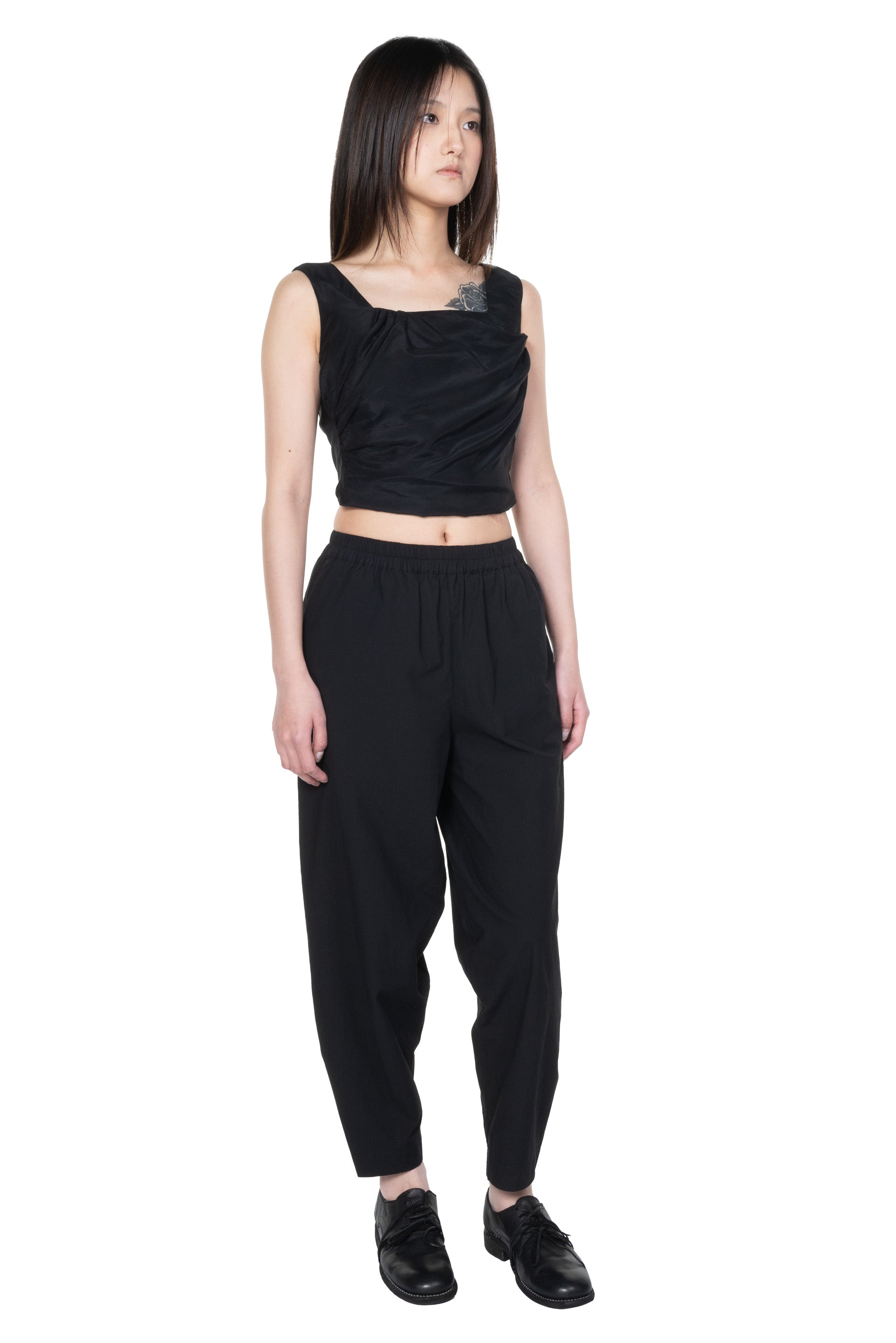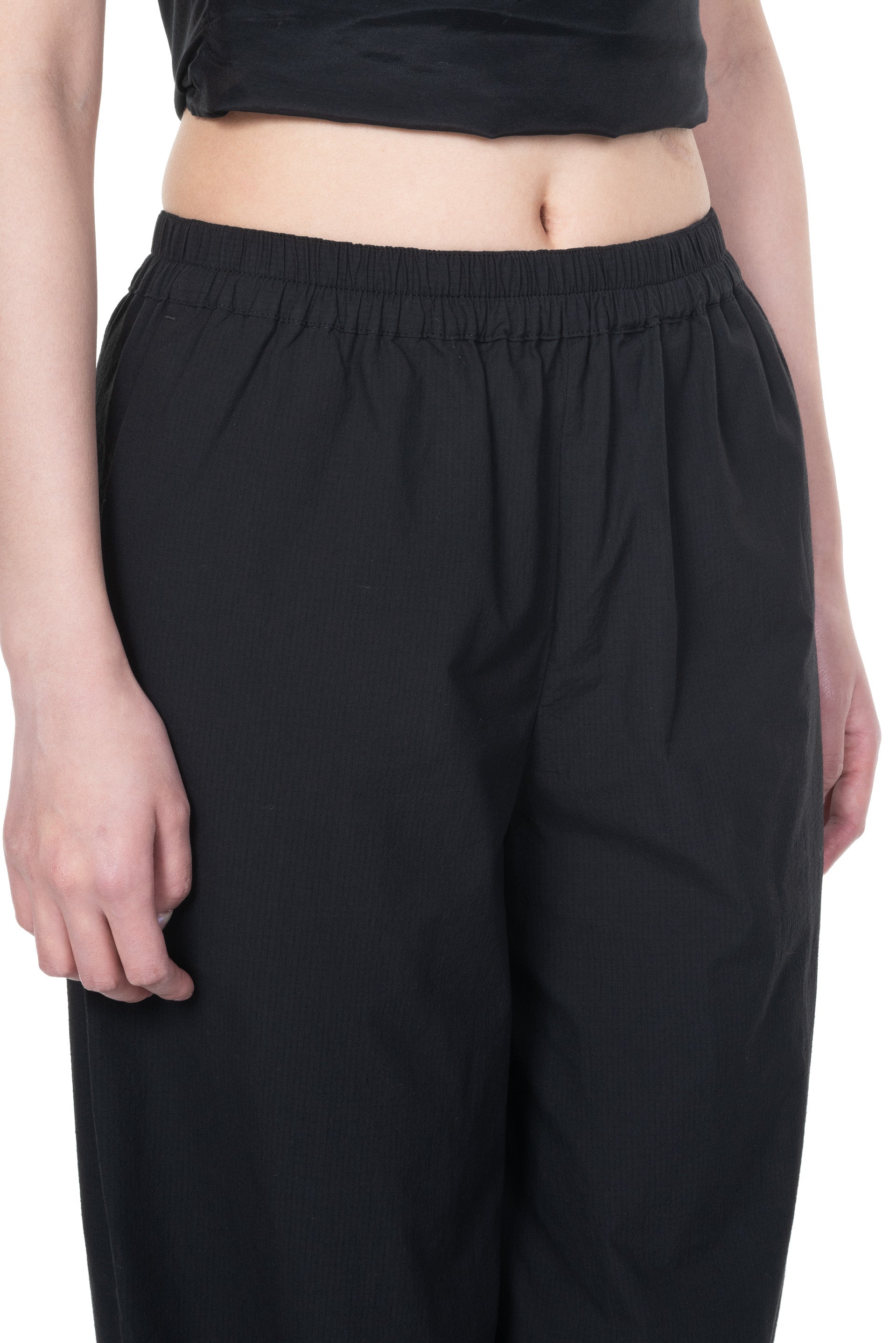 Elastic waist. Drawstring closure at waist. Two side pockets. Tapered cut.