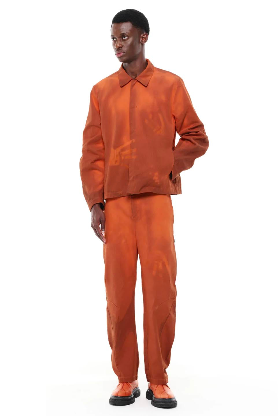 Andrade presents a Japanese avant-garde style combined with looks that are fit for rainforest excursions, tinged with tailoring cues and contrasted with technical touches as seen with the Thermo S Tech Jacket Orange.