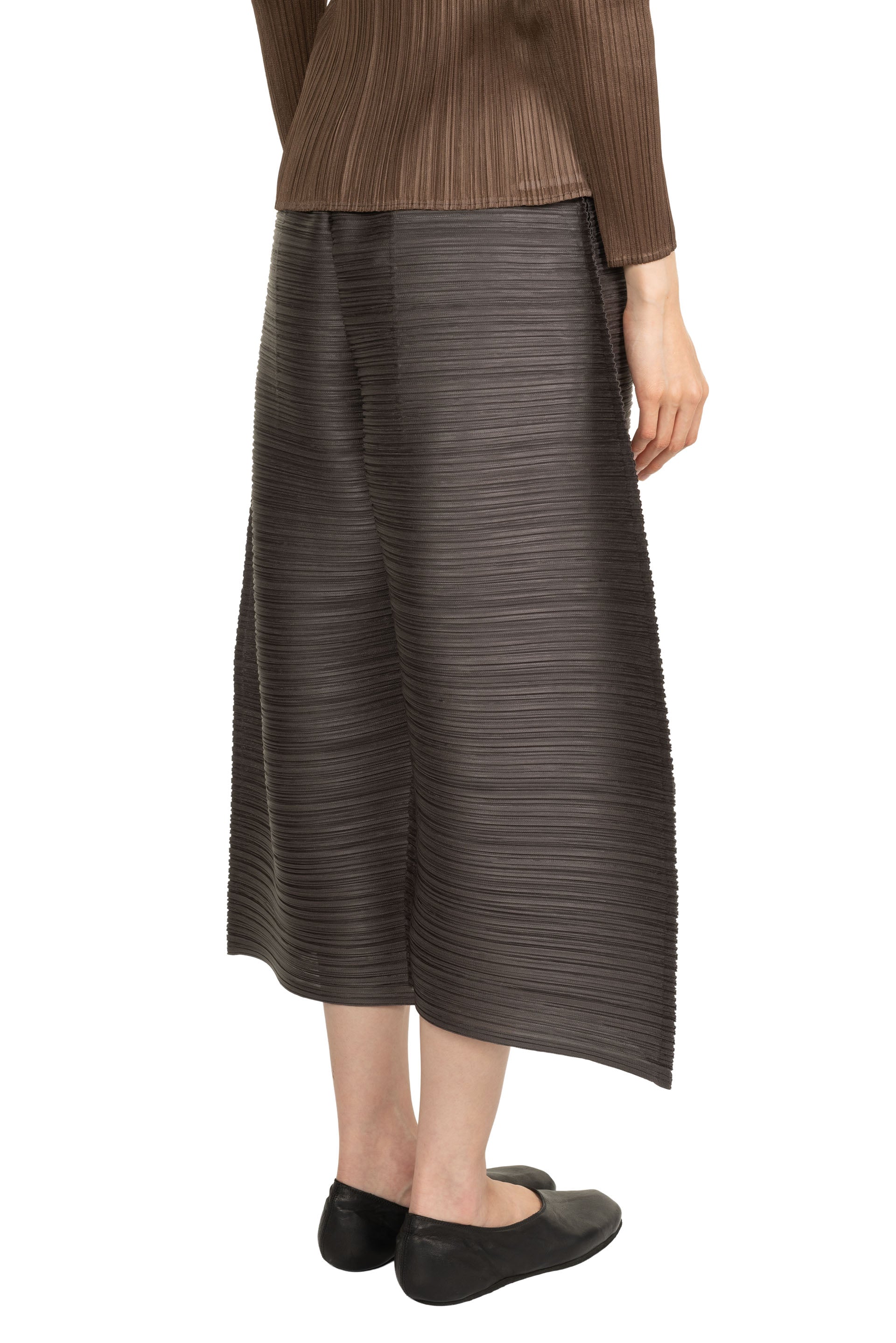 Pleats Please is crafted from a single thread, then creases are added after the clothes have been sewn into shape offering a combination of convenience, comfort and coolness. Pleats Please designs are simple with a strong silhouette as seen with the Thicker Bottoms 2 Steel Grey.