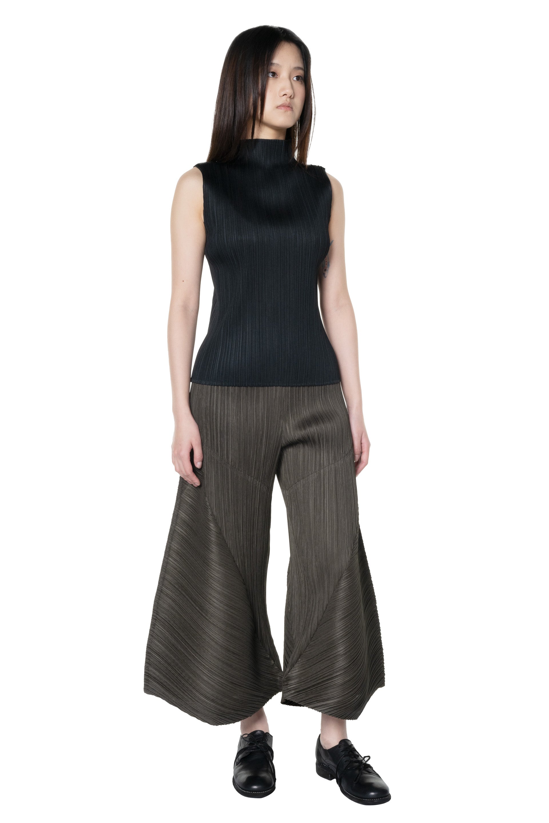 Pleats Please is crafted from a single thread, then creases are added after the clothes have been sewn into shape offering a combination of convenience, comfort and coolness. Pleats Please designs are simple with a strong silhouette as seen with the Thicker Bottoms 2 Trousers Green.