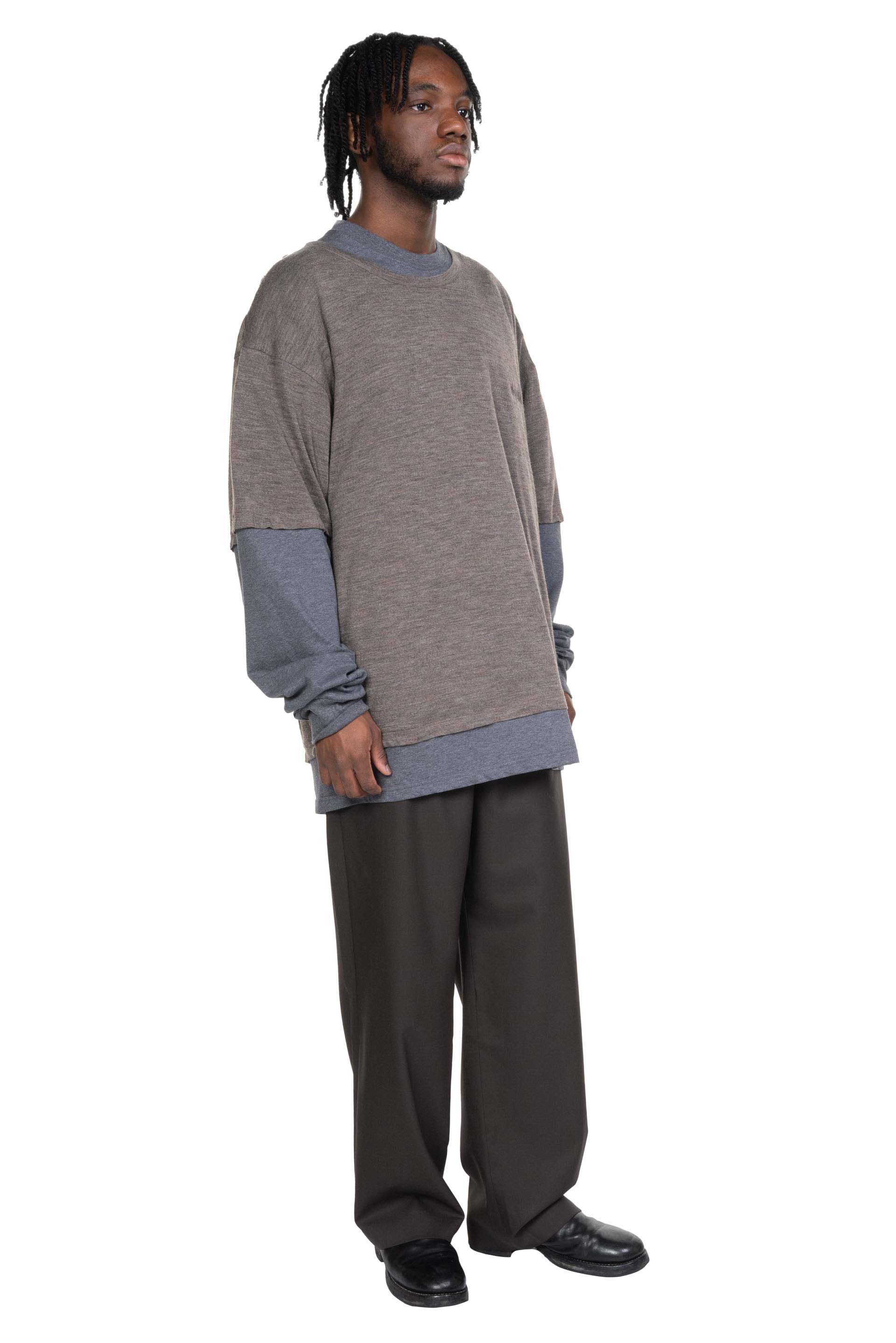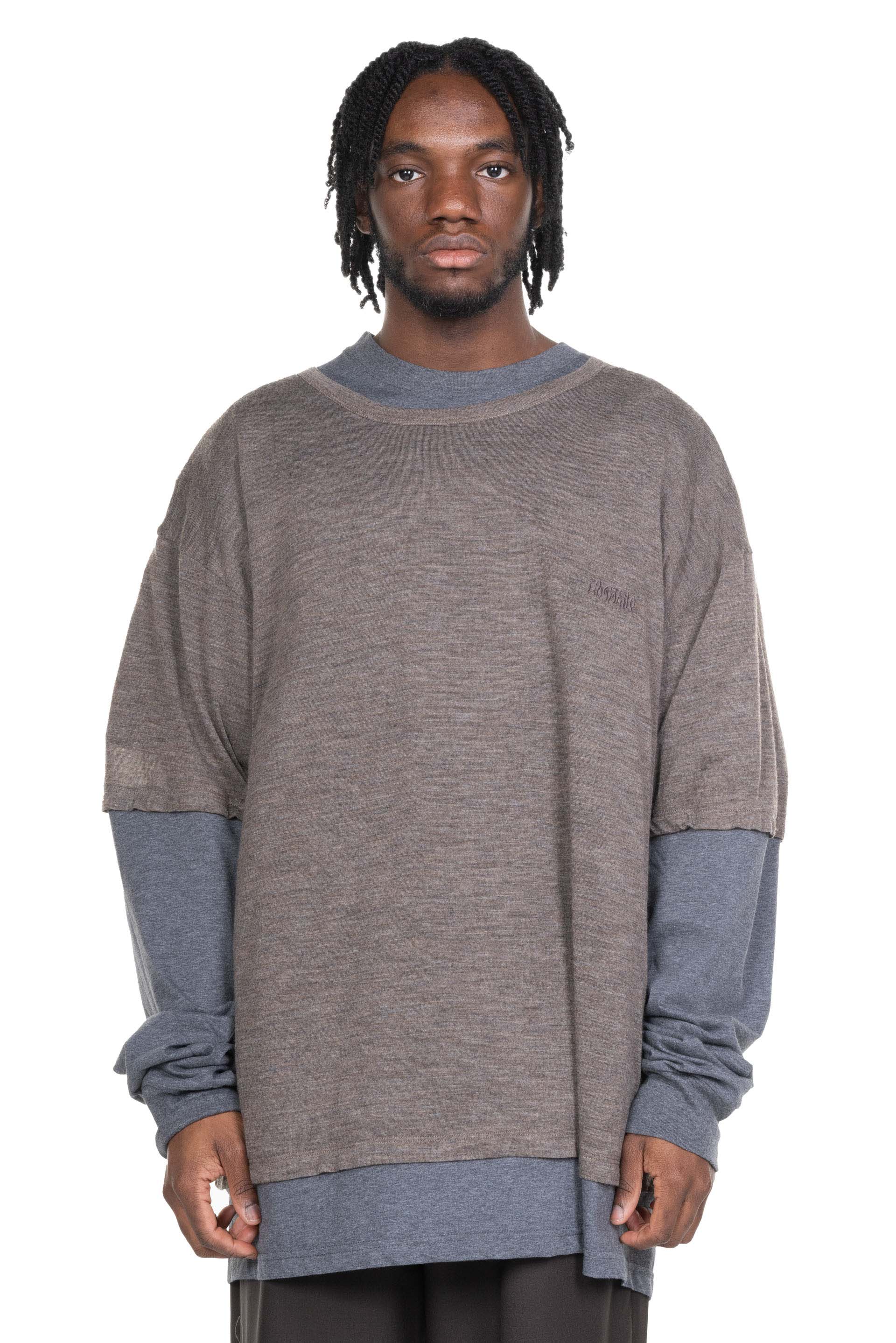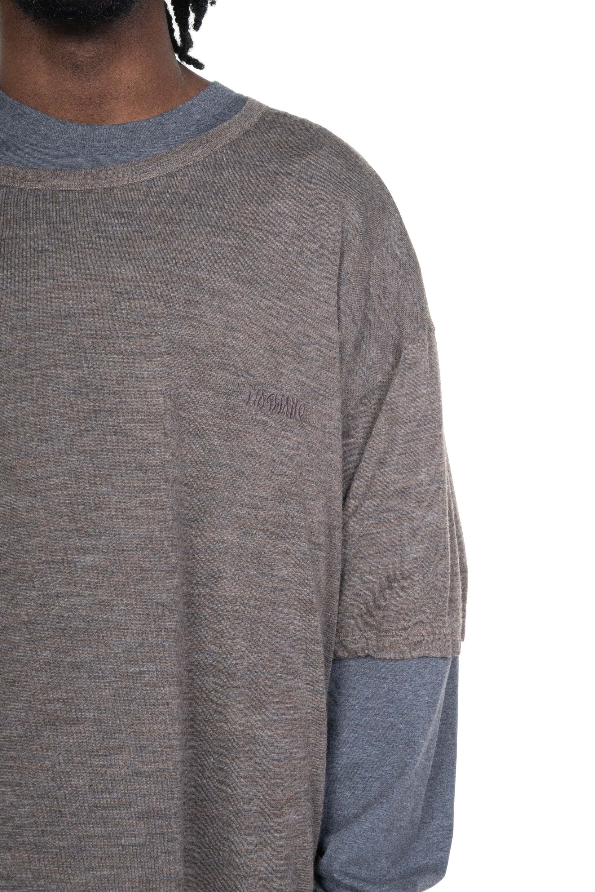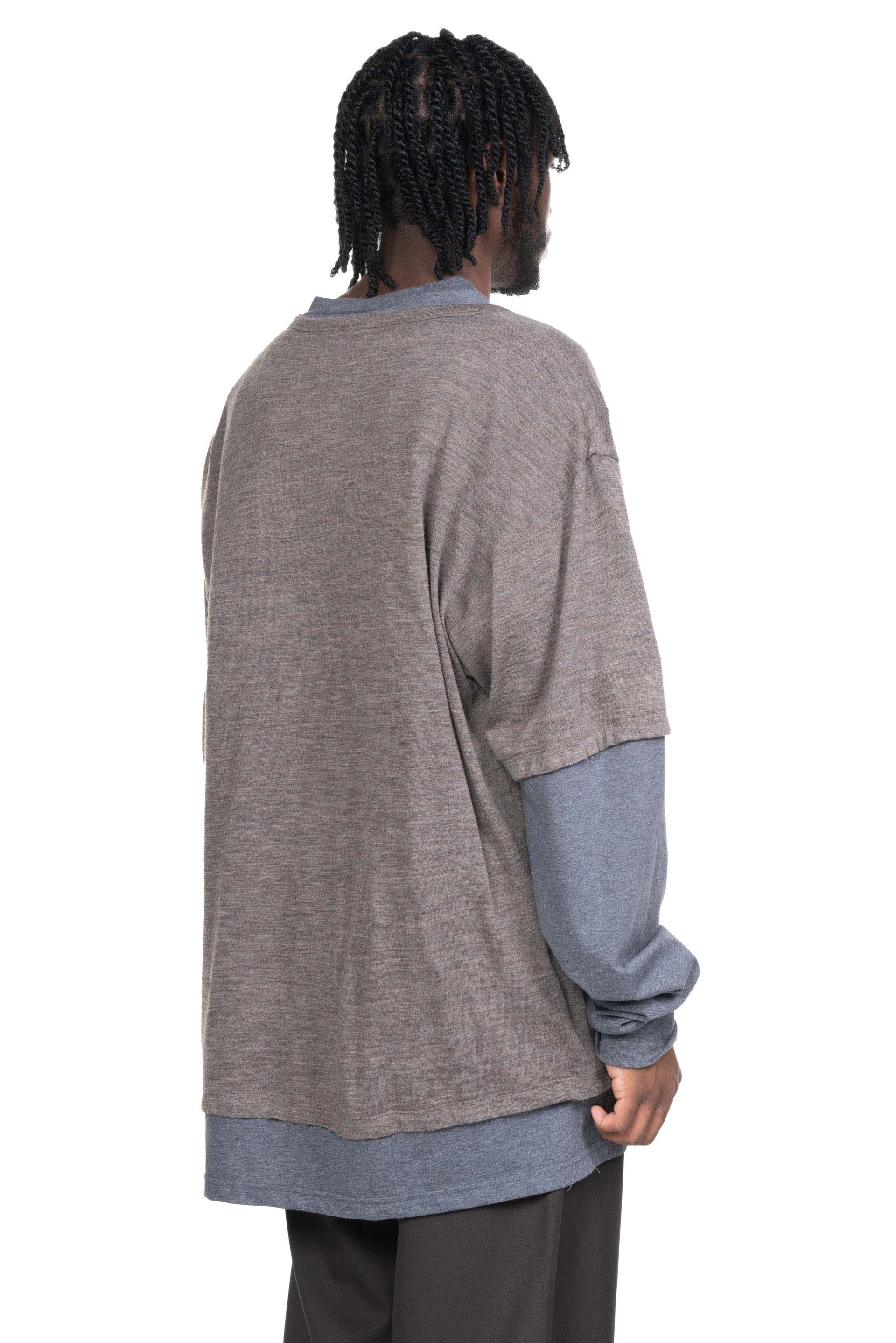 Cotton Jersey Trompe l'oeil effect Double T-shirt. Overlapping Long And Short Sleeve. Oversized Fit. Padded layer