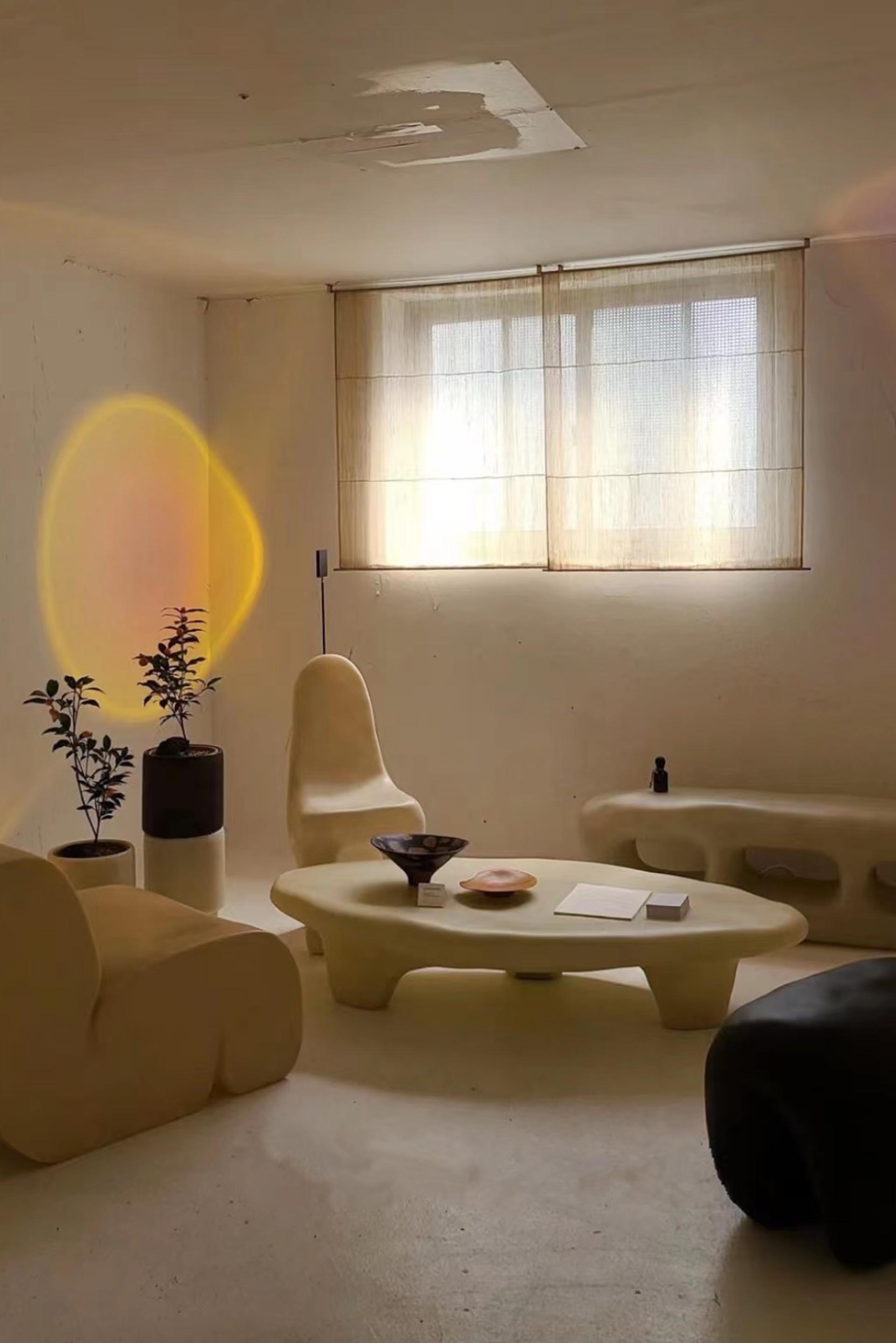 The kar-studio Tripod Coffee Table is inspired by three-leg utensils which were the first creation of human being in ancient times. Triangle structure and the irregular lines bring up a solemn atmosphere. Soft feel. The kar furniture comes to life when the light goes through it.