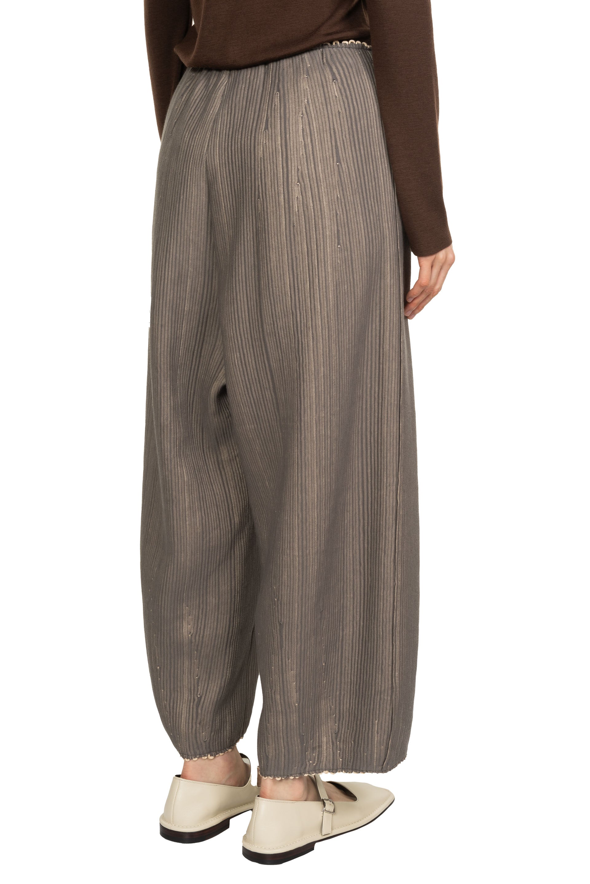 Boboutic knitted trousers. Elastic waist. Two side pocket. Soft textural pleated fabric. In house fabrics. Relaxed fit.