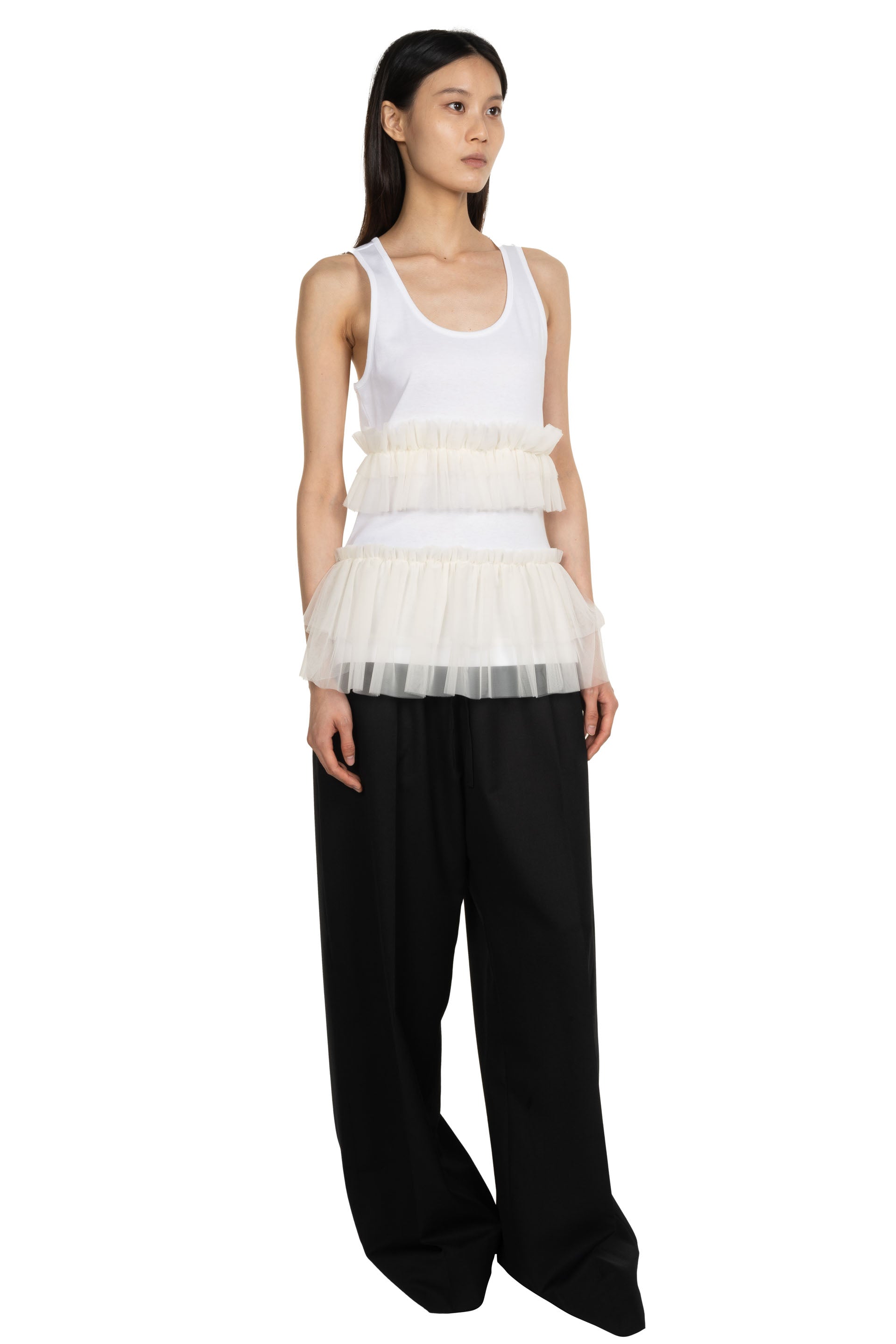 Simone Rocha Tutu Hem Tank Top White. Sleeveless. Cotton tank top with tutu detailing. Slit at sides.