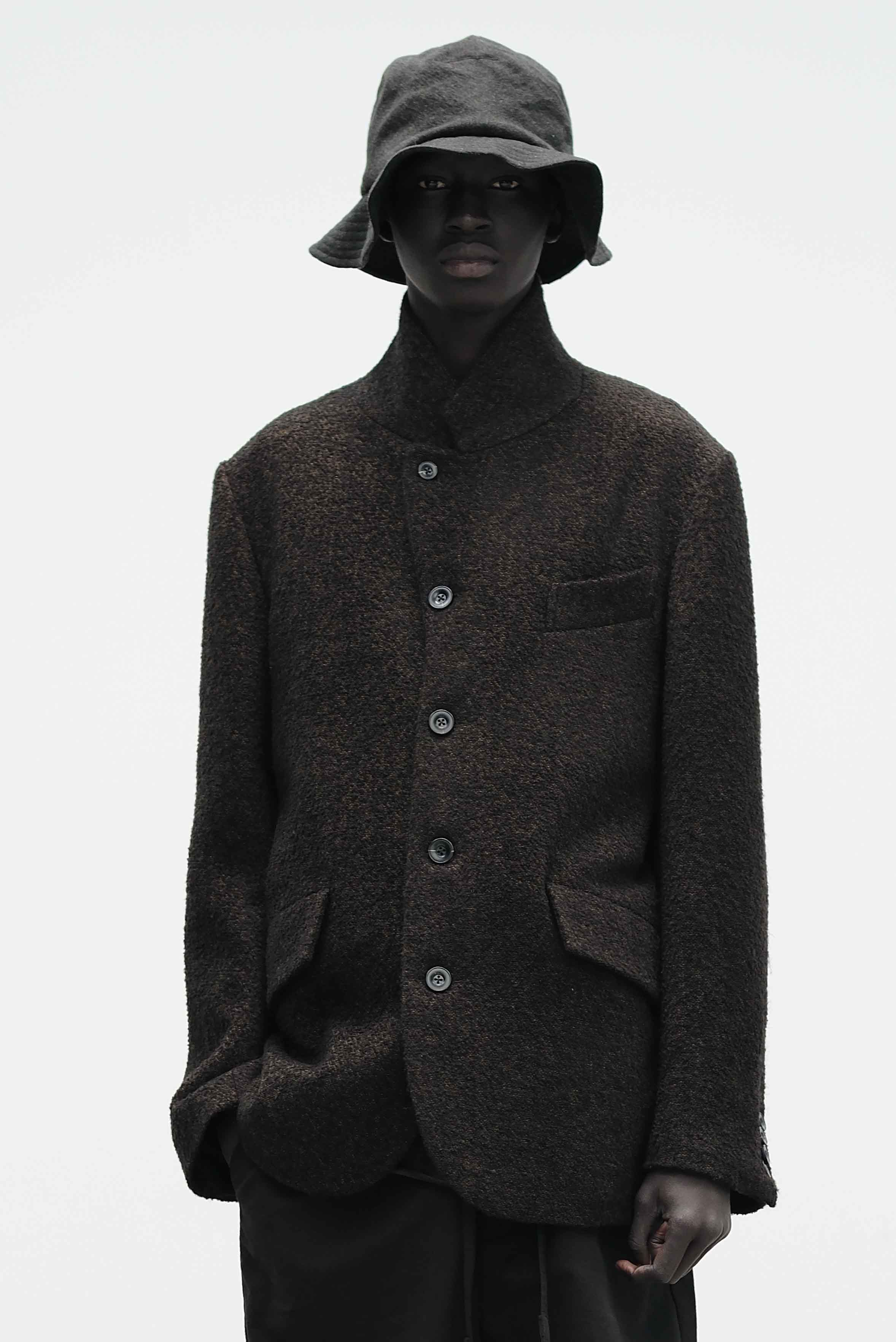 ATTEMPT reconstructs different styles and elements to create a new aesthetic system. By taking a more experimental approach to creation and production, which involves an understanding of the past and the current form of society, Attempt is creating an aesthetic form that is anchored in the present but different from it. It must ultimately be a product that cannot be defined as seen with the Two-Tone Jacket Dark Brown.