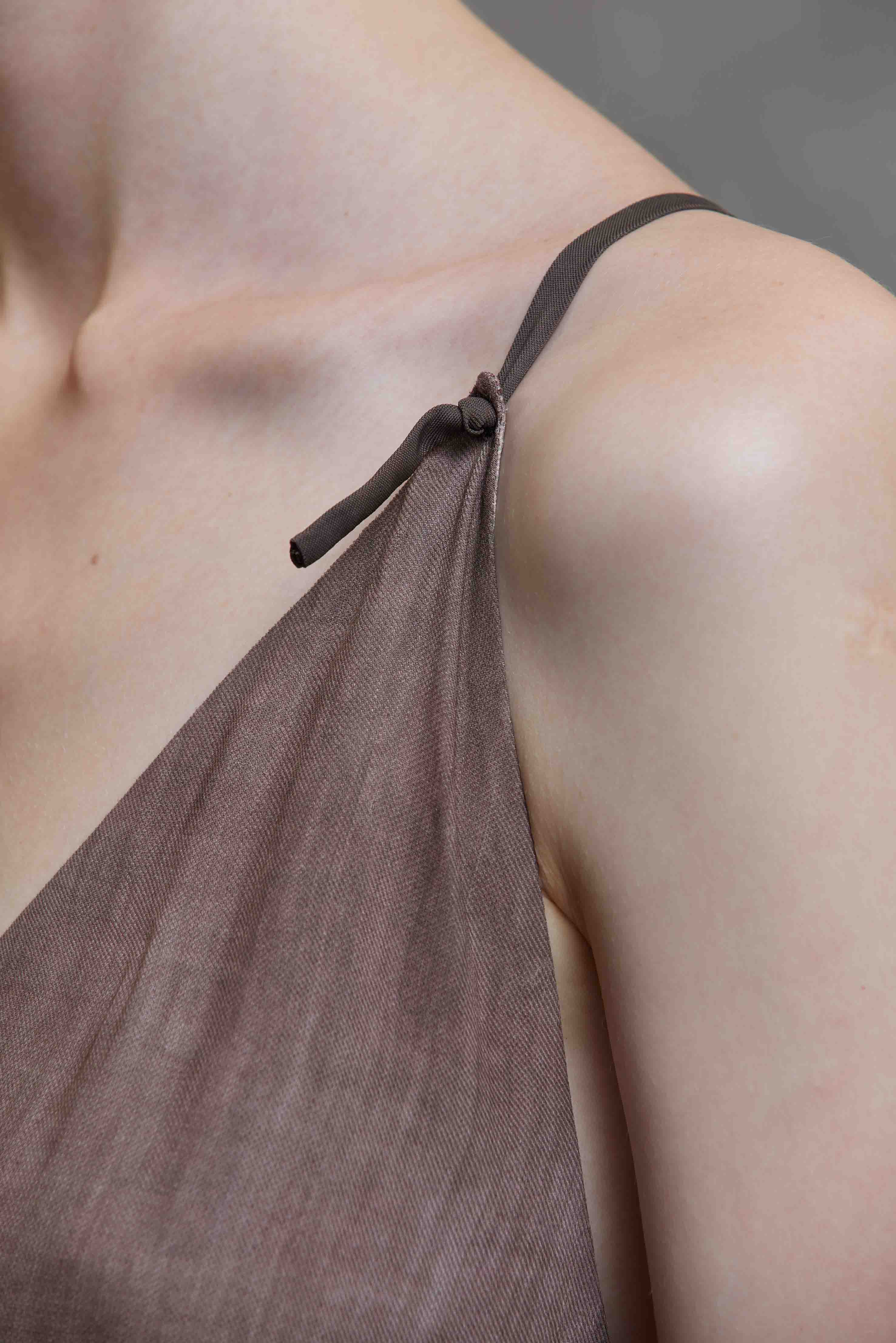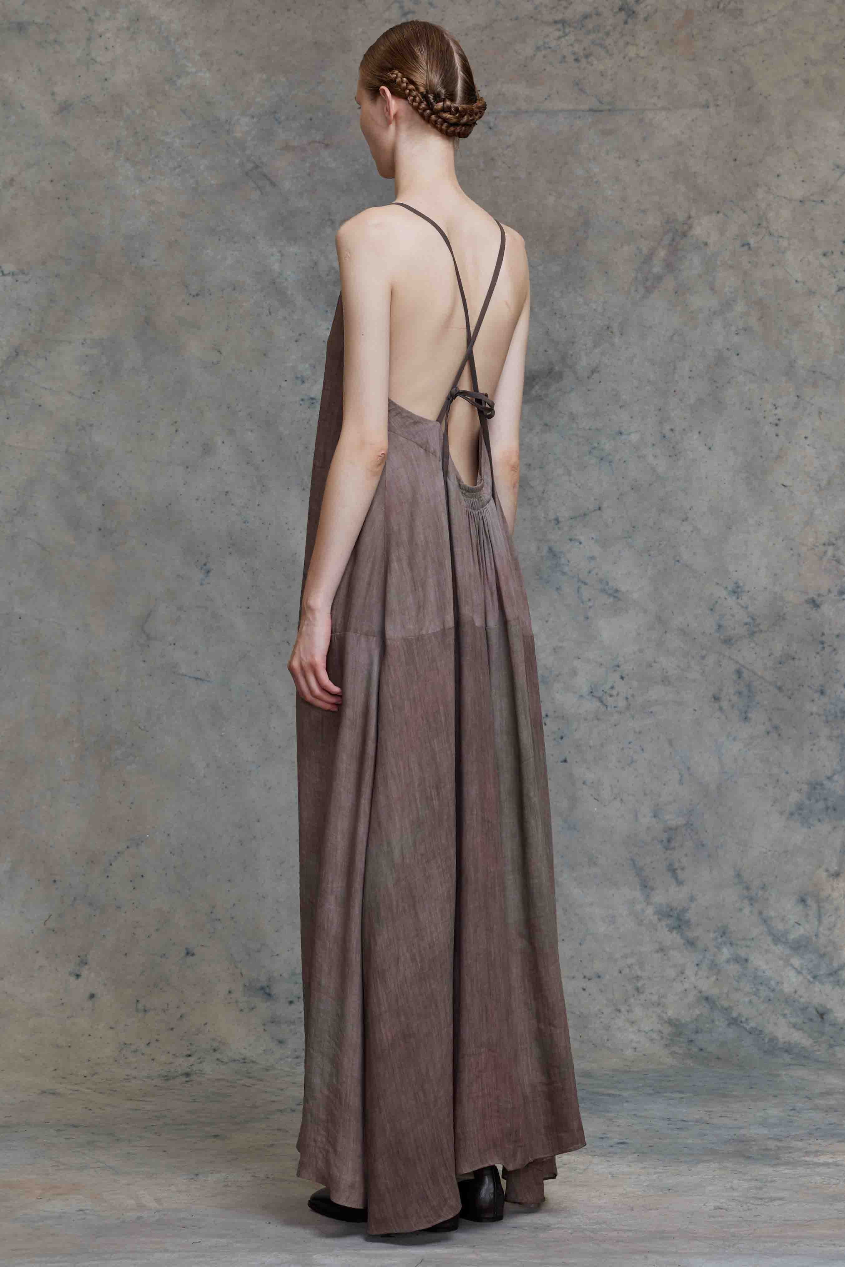 Ziggy Chen V-neck Halter Dress. Sleeveless. Adjustable on shoulders. Open Back. Soft Cupro Fabric. Ziggy Chen details throughout. Two side pockets.