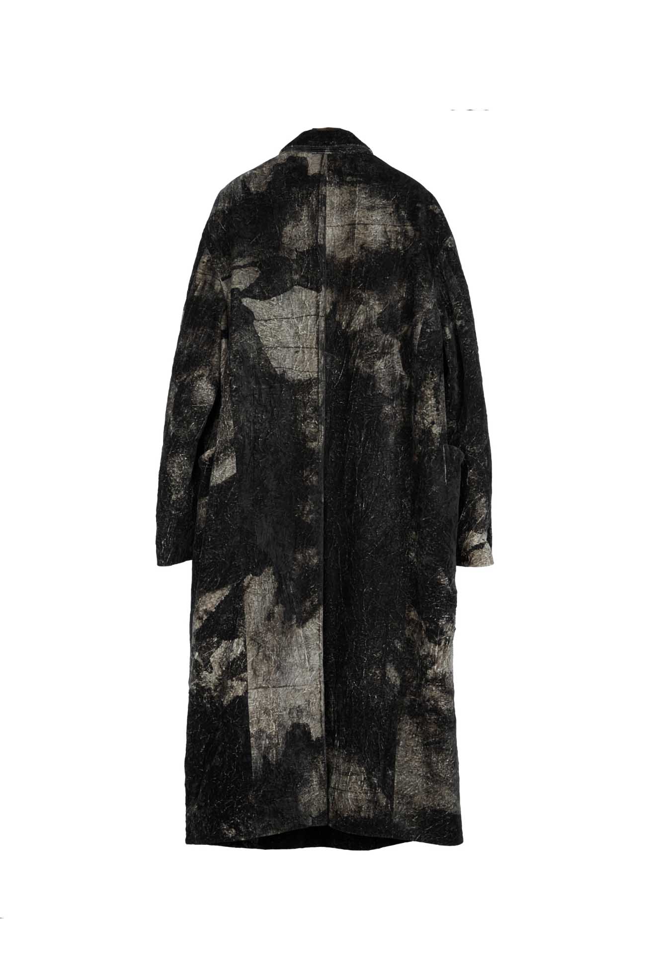 Ziggy Chen Velvet double-breasted long coat. Long sleeves. Two side pockets. Double breasted closure. Oversized pockets. Seasonal print throughout. Soft velvet fabric. Loose fit. Ankle-length. Notch collar.  Fully-lined.
