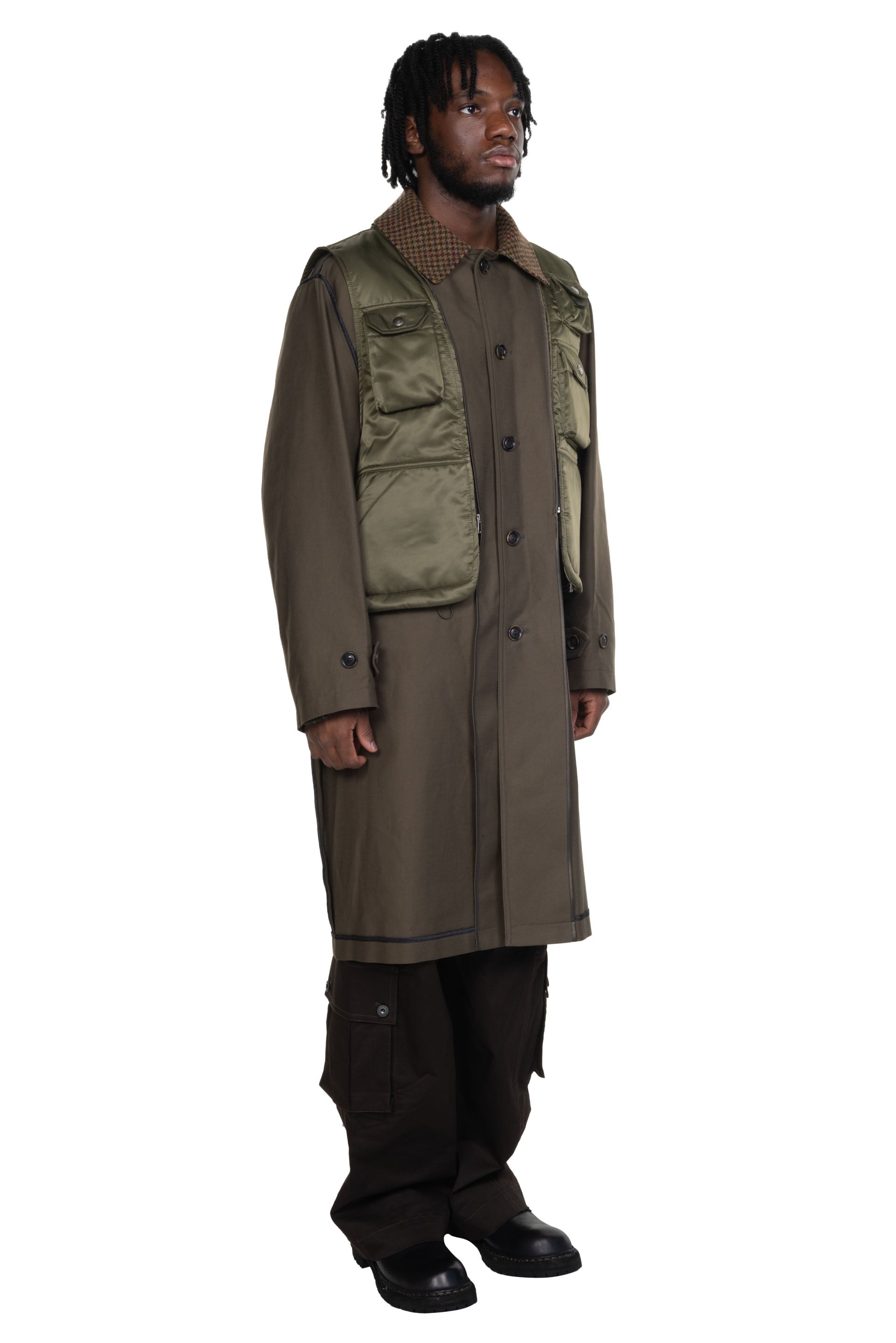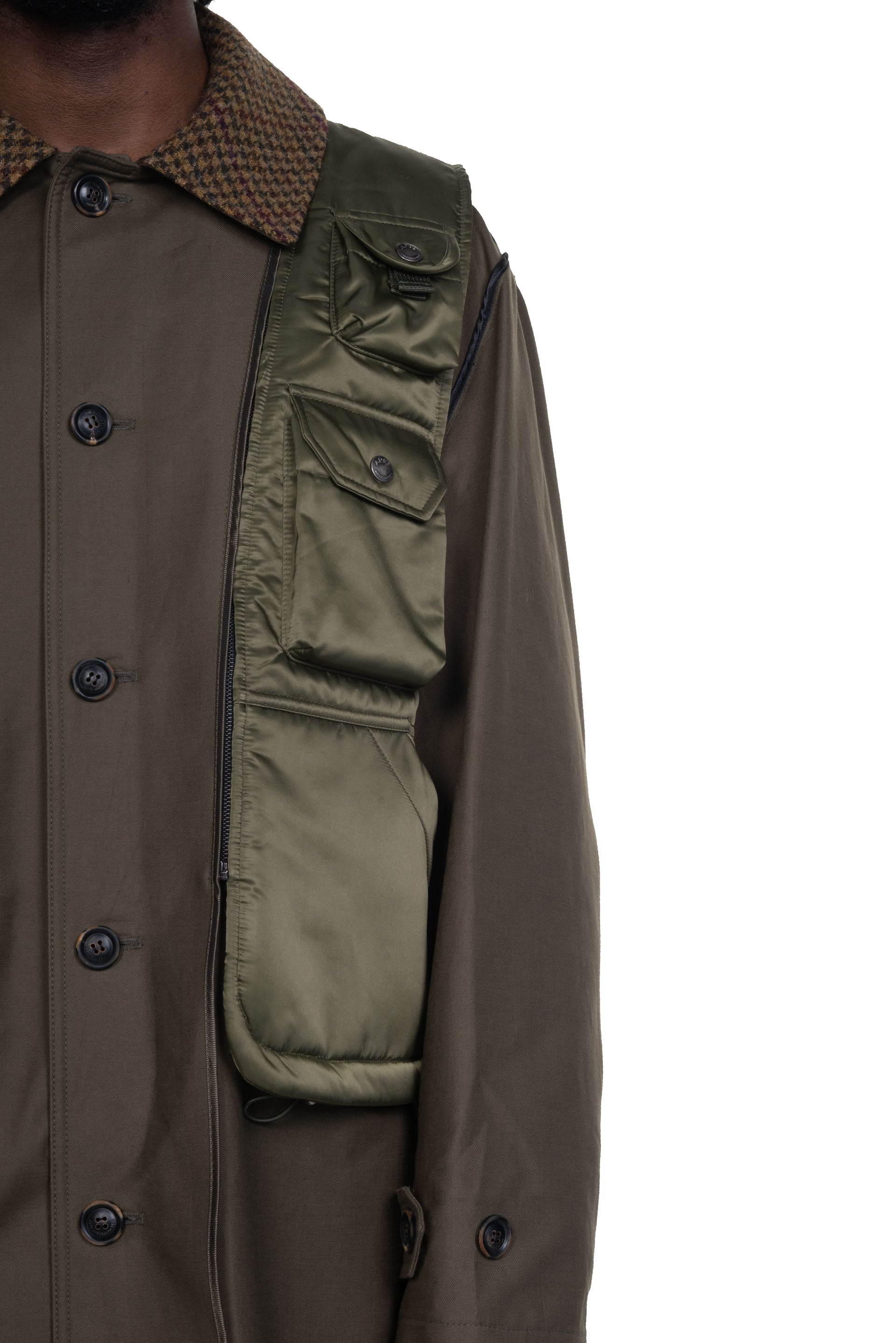Long sleeves. Button closure at front. Two side pockets. Inside pocket. Button at cuffs. Detachable multi pocket vest. Multi fabric design throughout. Slightly padded shoulders. inside out design. Signature details throughout. Regular fit. Lightweight.
