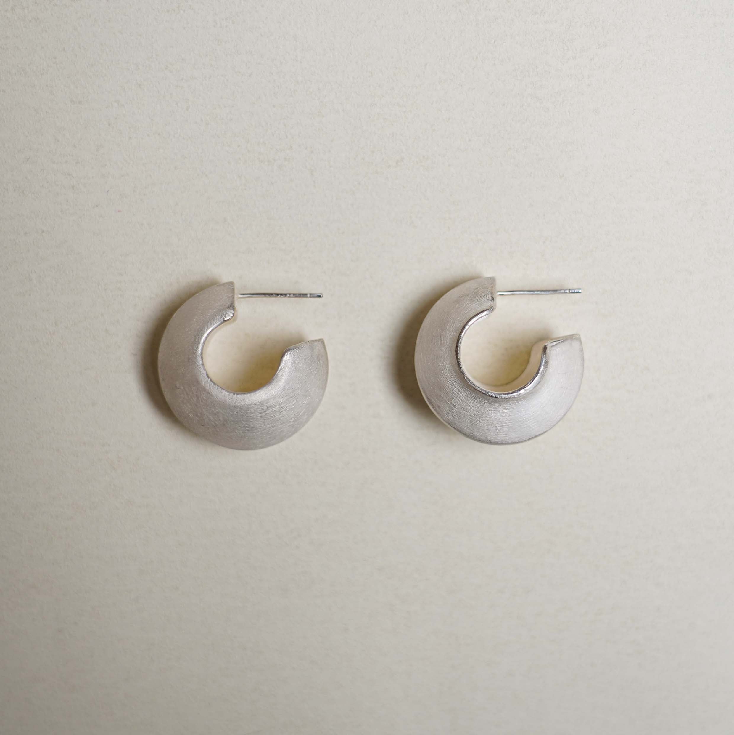 Void Earrings. Matte white finish. Made of recyclable raw silver. Code: OA03E22